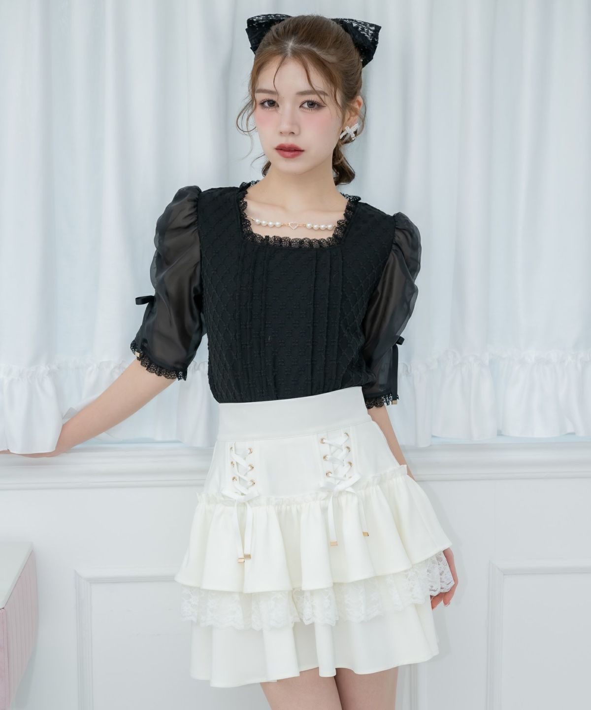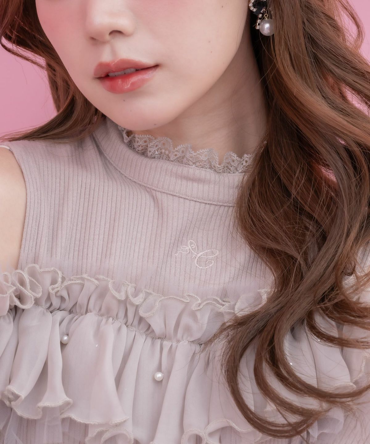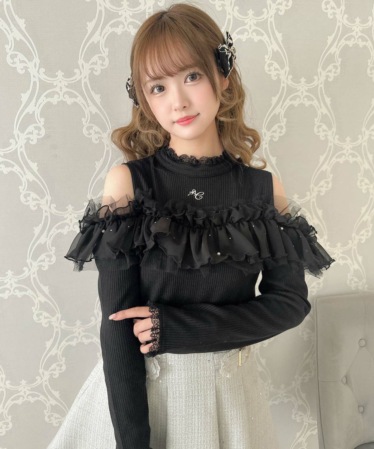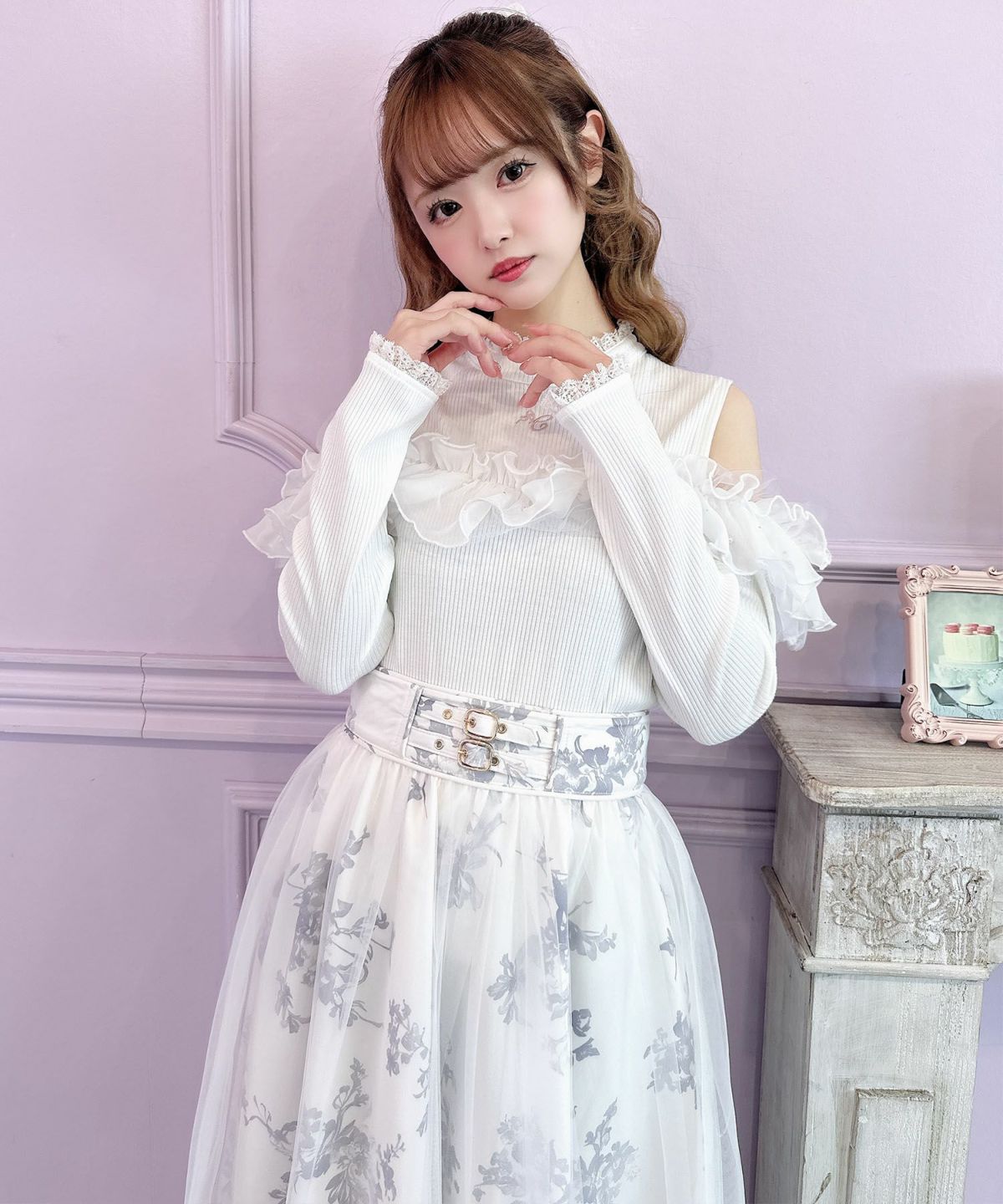 【30%off】 チュールリボンビスチェ×デコルテ開きトップスセット