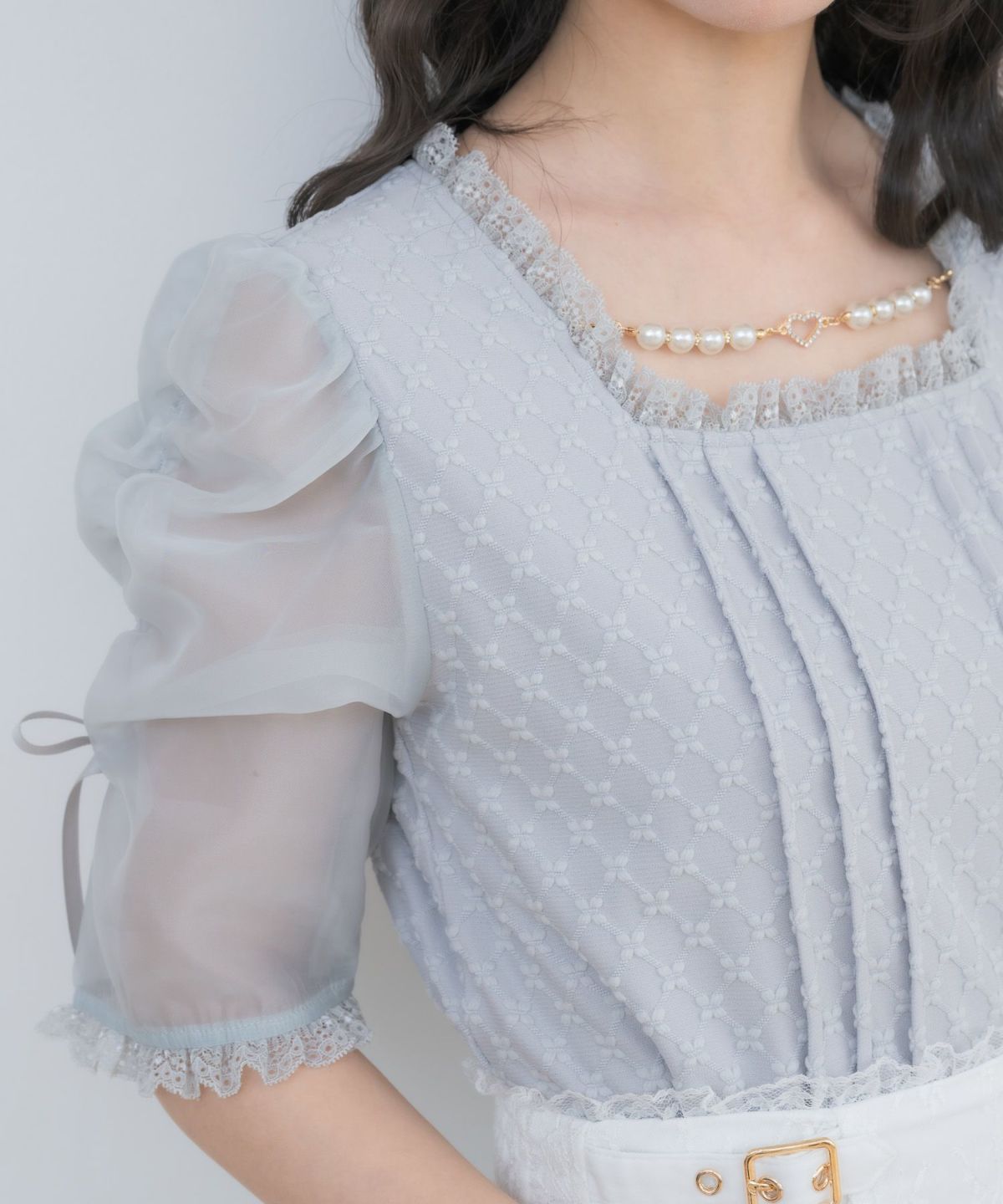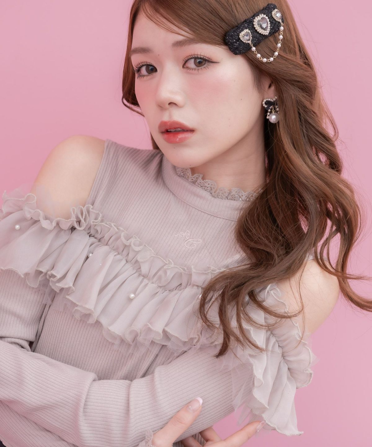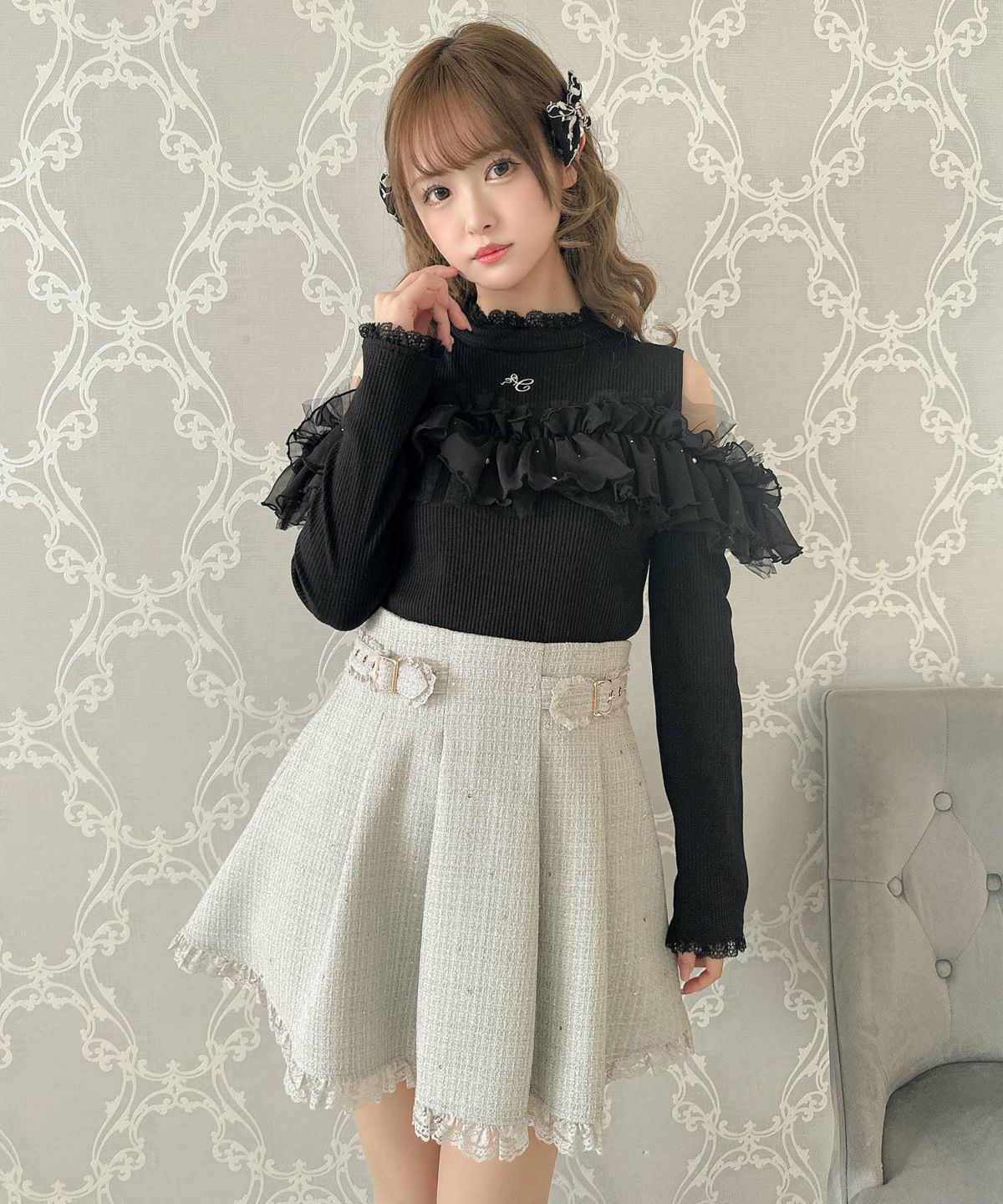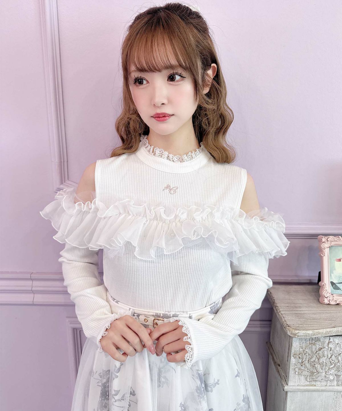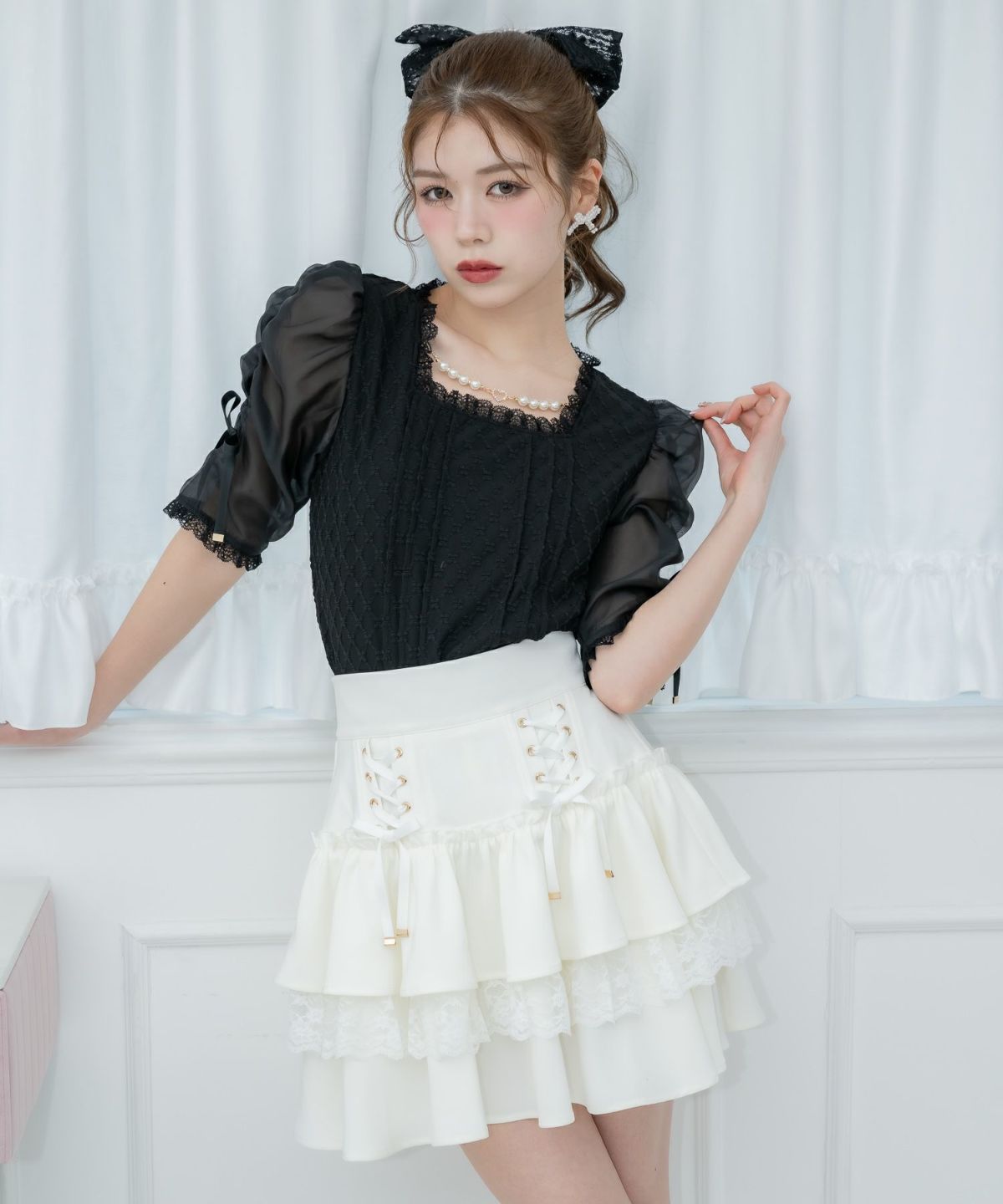 【30%off】 チュールリボンビスチェ×デコルテ開きトップスセット