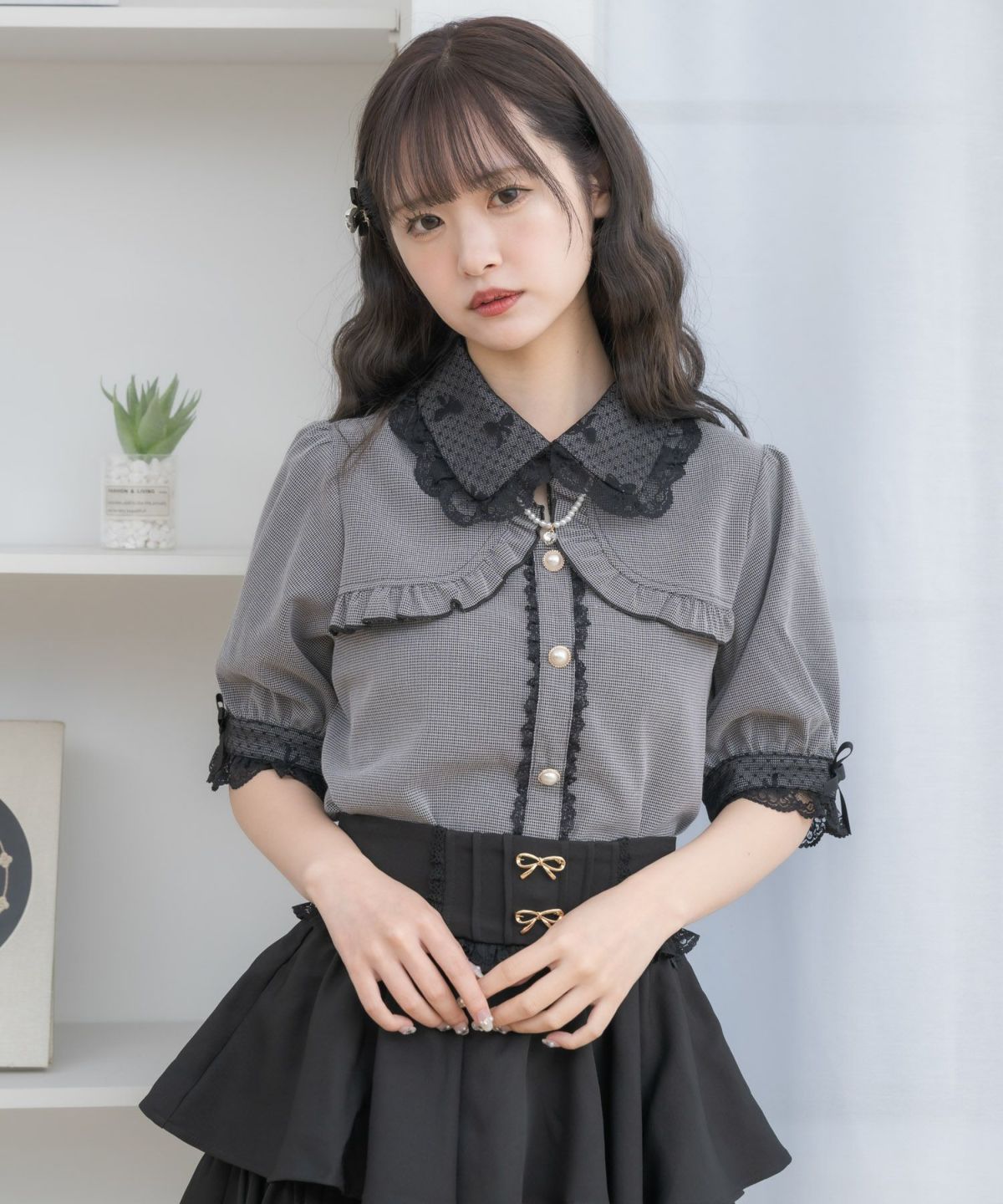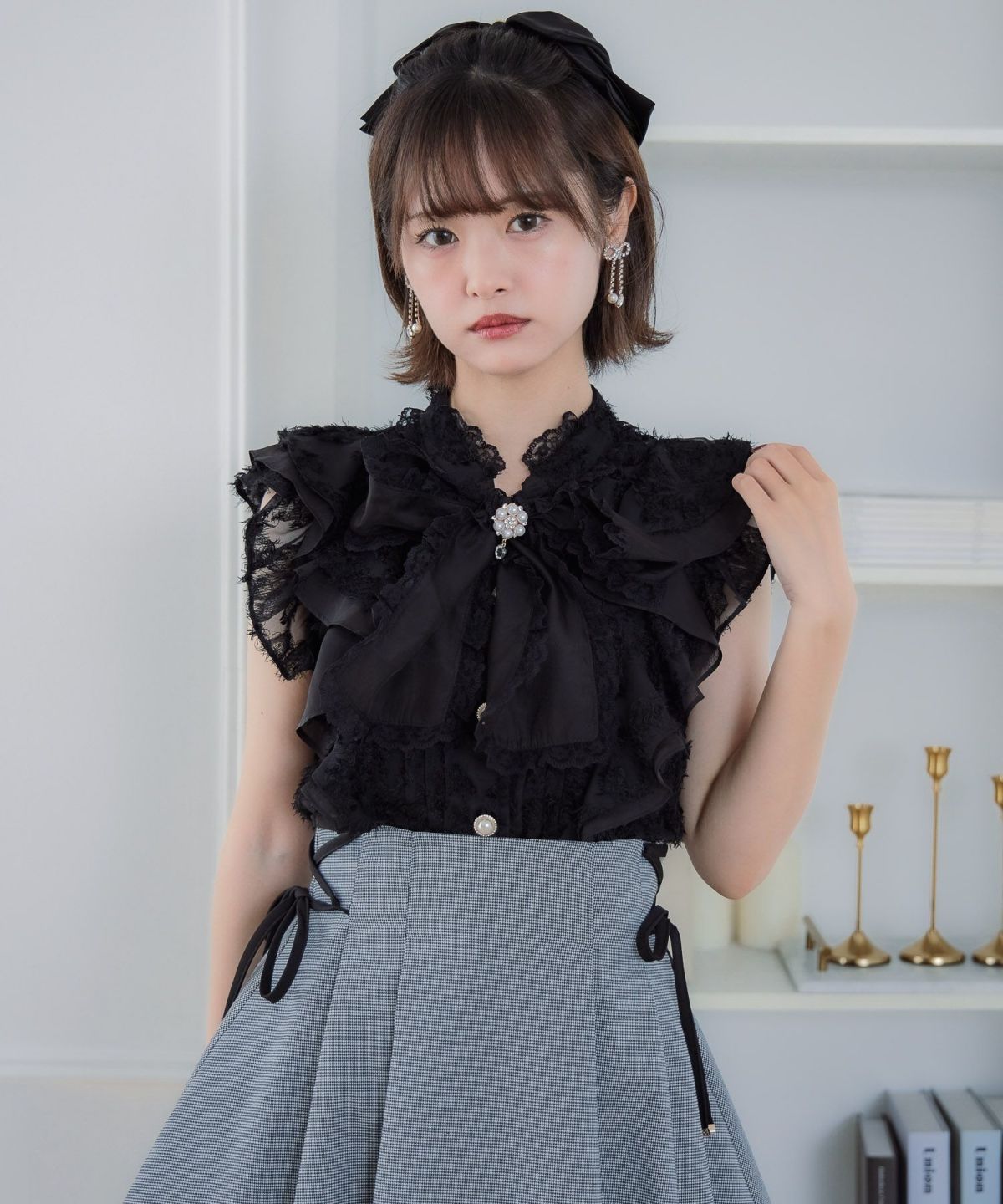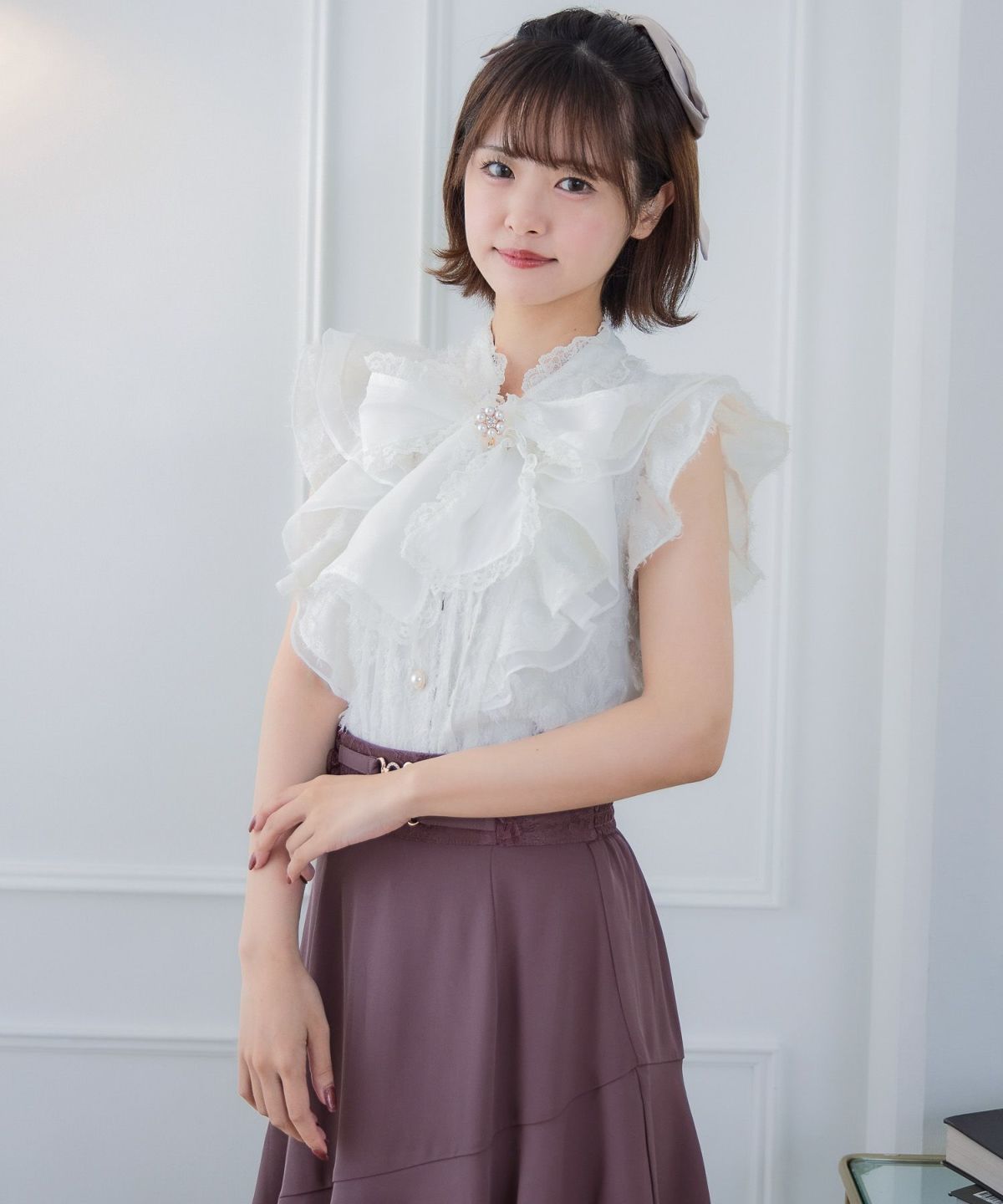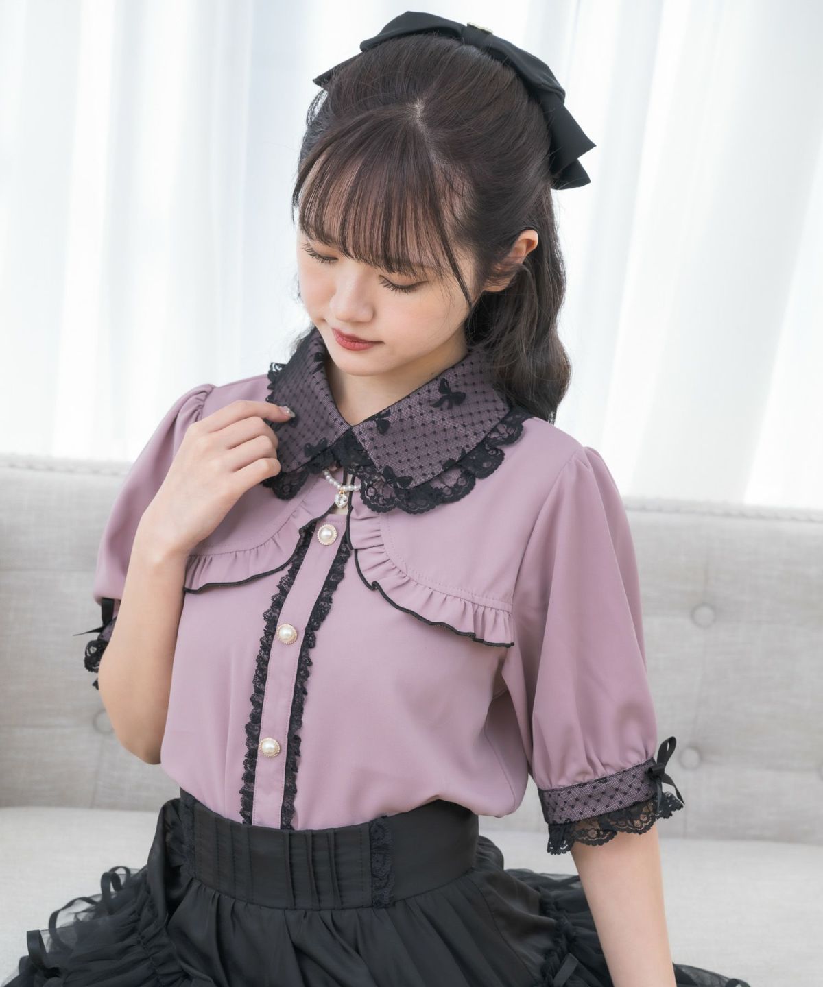 ボウタイフリルブラウス