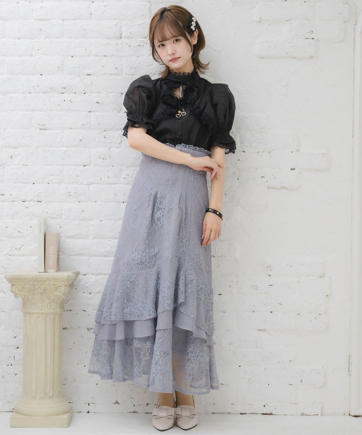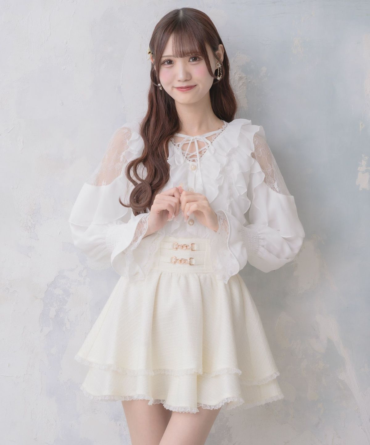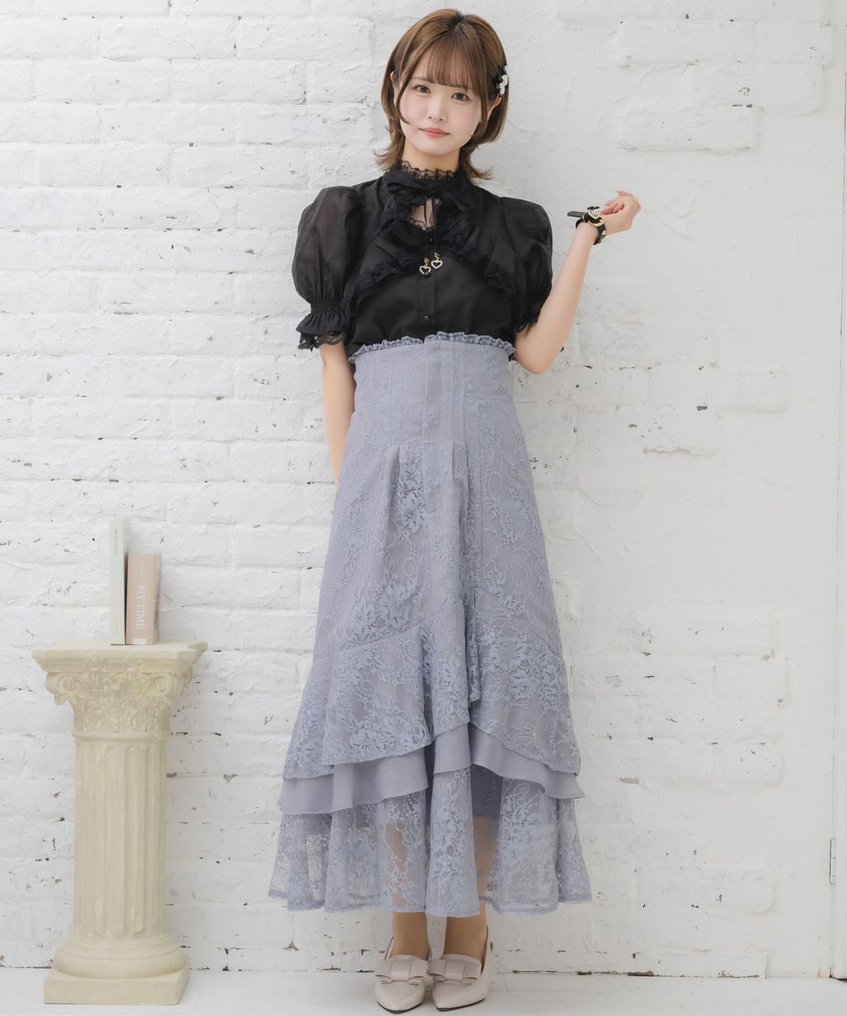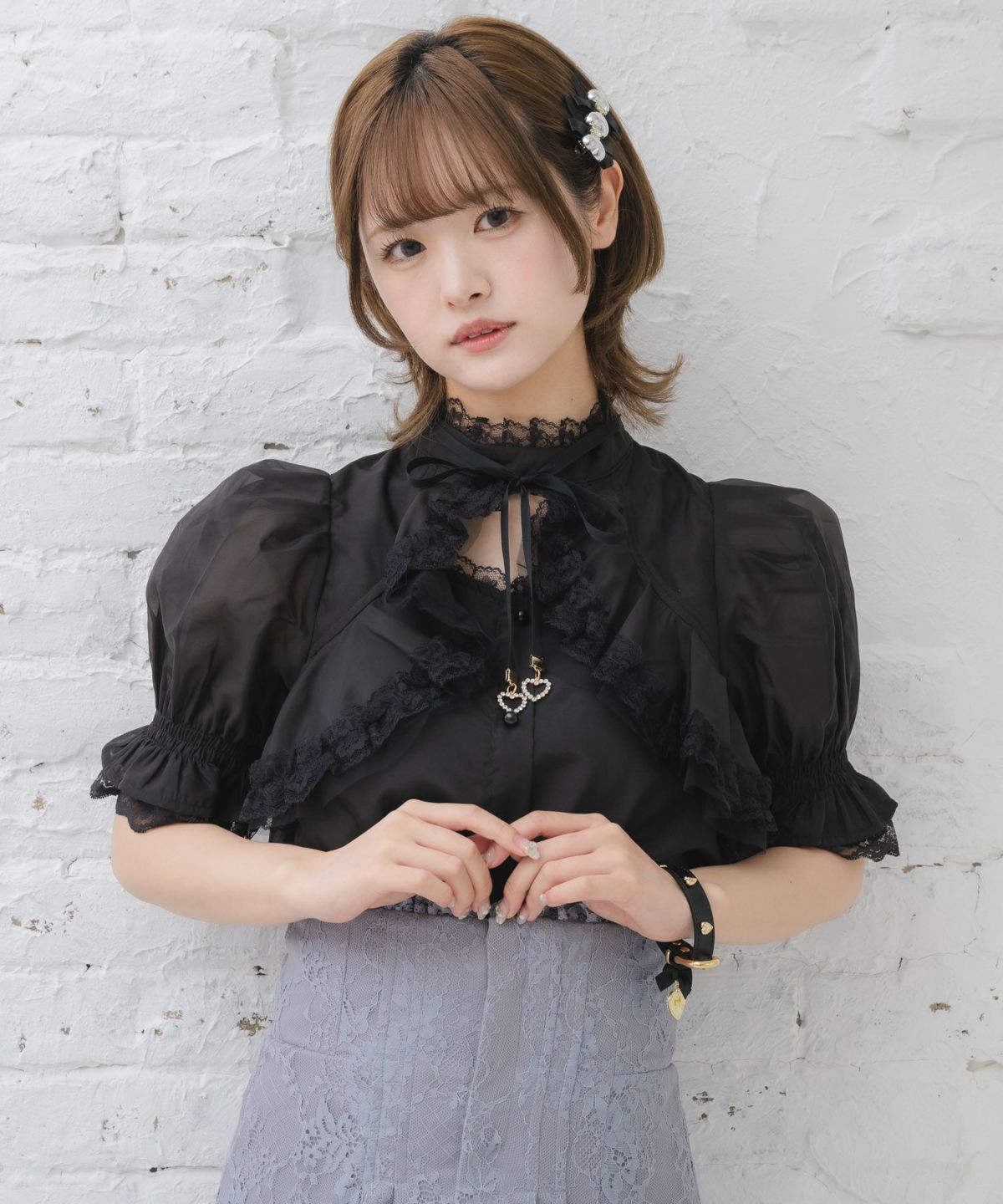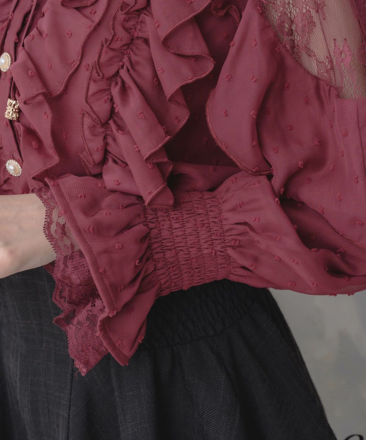 肩レーシーフリルブラウス