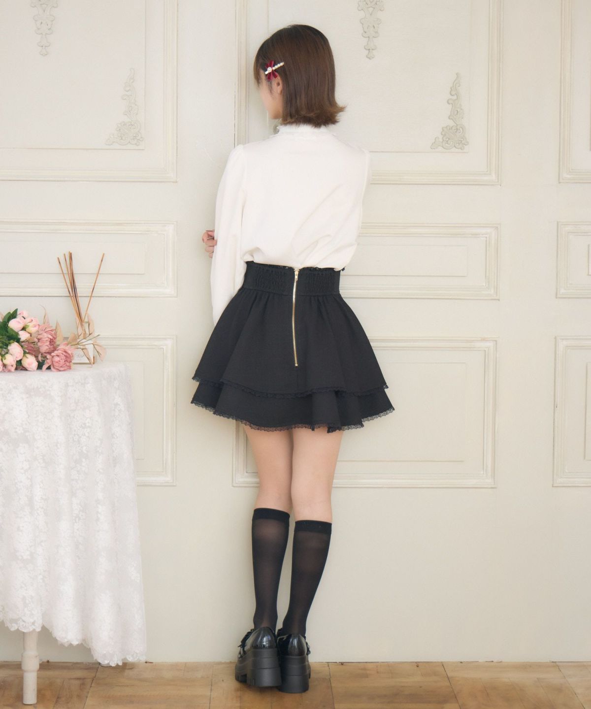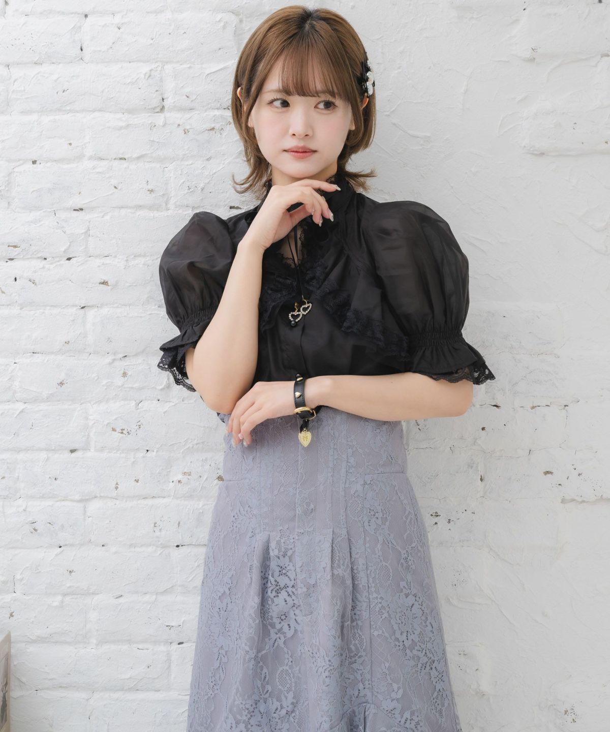 肩レーシーフリル切替ブラウス