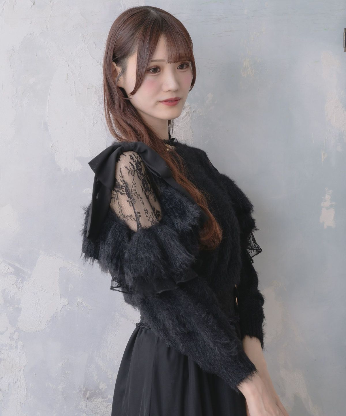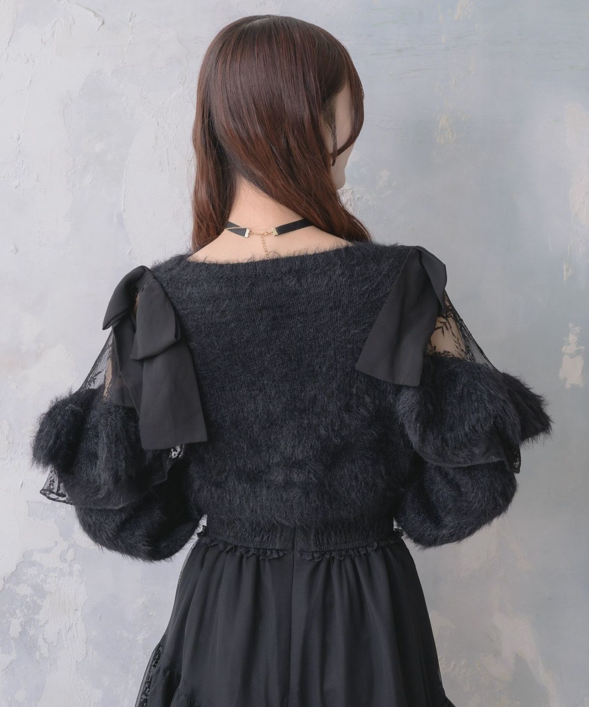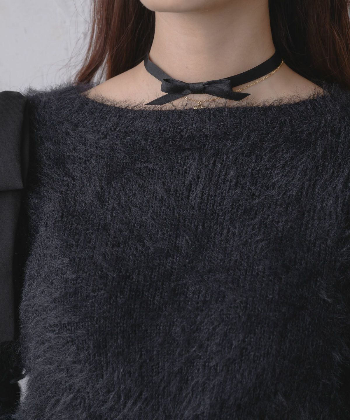 肩開リボンシャギーニット