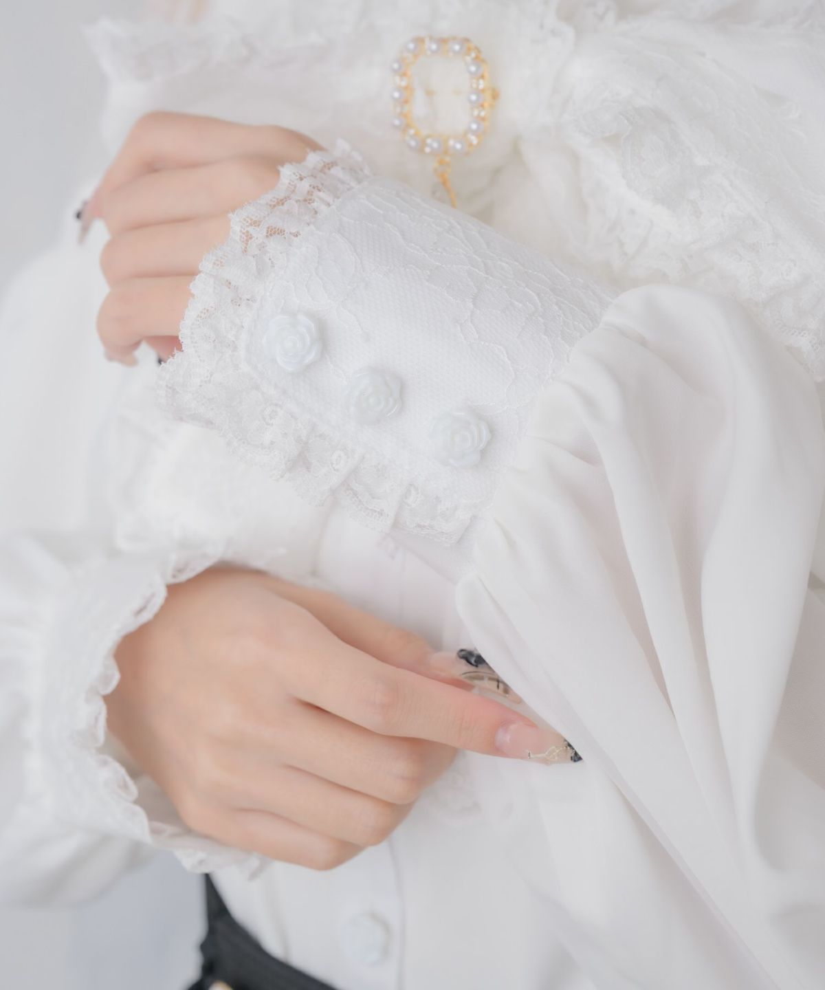 モノグラムブローチレースブラウス