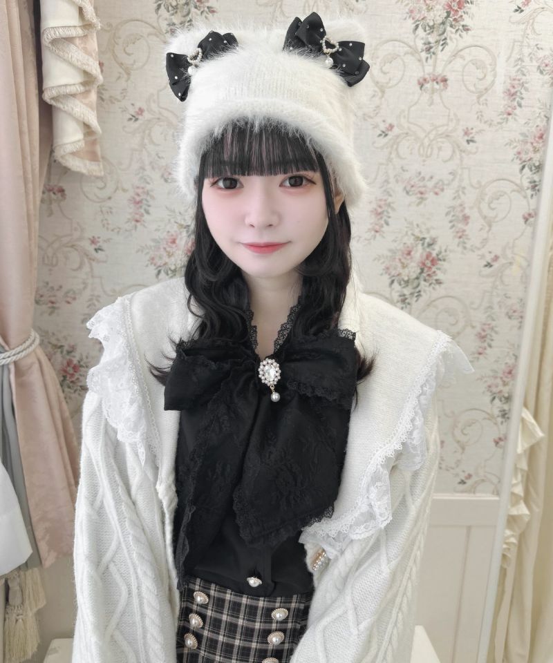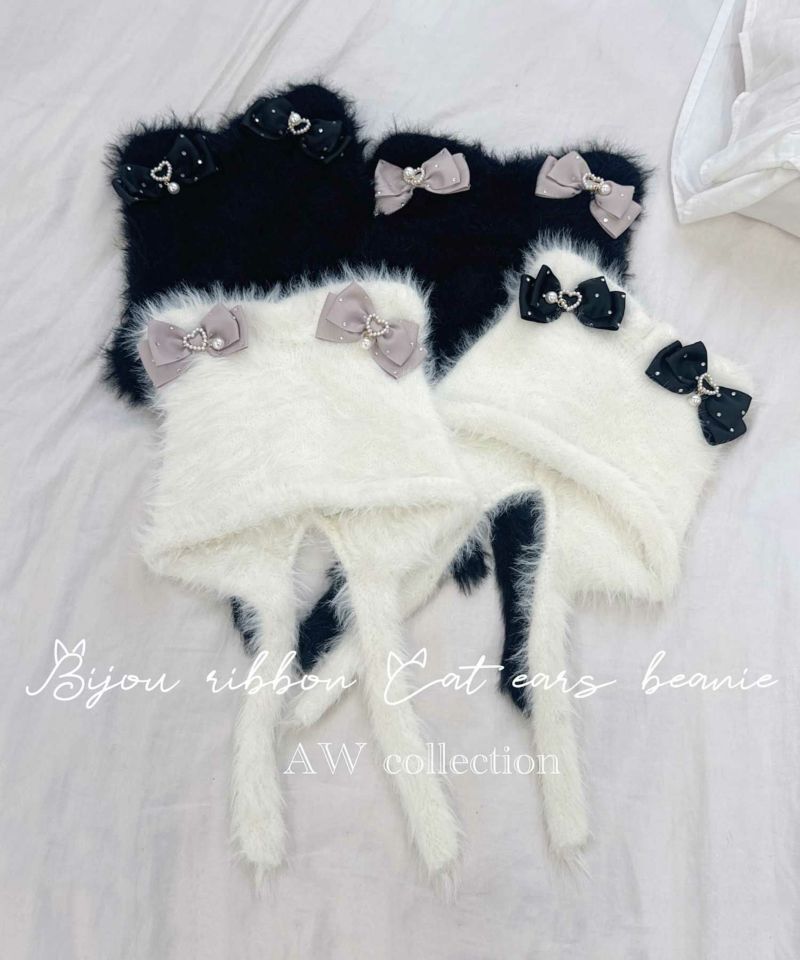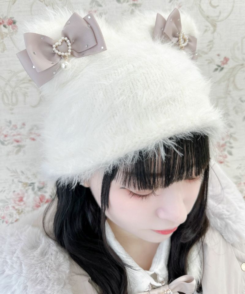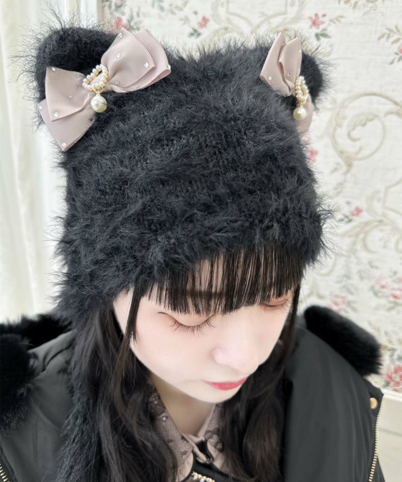 猫耳デザインにリボンがかわいいニットキャップ。ラフな雰囲気のニットがビジュリボンで格上げし、コーデにアクセントを加えます♪ストラップ付きですっぽり顔周りを覆うニットは防寒はもちろん、小顔効果期待できます。 ※照明の関係で実際のお色味と若干異なる場合がございます。 ※表示のサイズ感と実物は若干異なる場合がございますので、予めご了承ください。