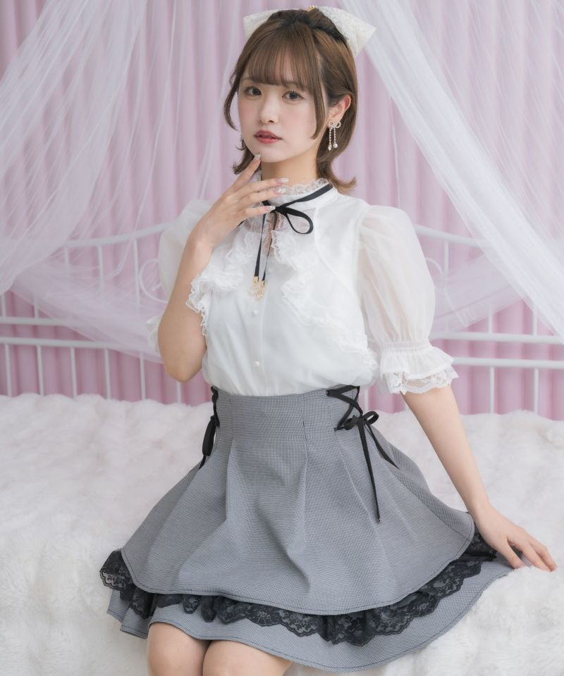 シアーが品良く着映えるラッフルフリルブラウス♡ふわっとしたパフスリーブが可愛いボリュームのあるシルエットを作ります♪微配色で作るチェック柄が着こなしに奥行きをあたえ、ブラックとホワイトは万能なワンカラーでトレンドレスに着回し可能◎