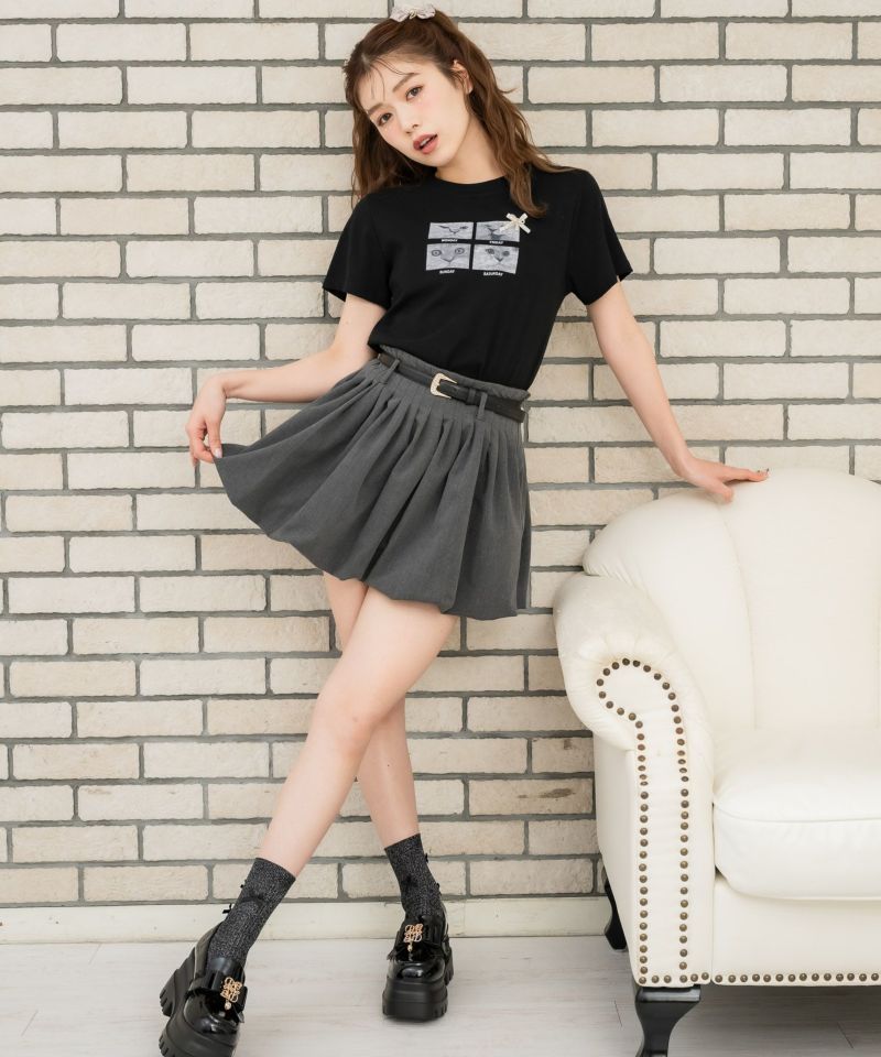 旬なバルーンスカパン!バレエコアな雰囲気でガーリームードを盛り上げます。バルーンの膨らみが太もも周りを華奢にアップデートしてくれ、ミニ丈ながらスカパン仕様で活躍のシーンも広がる一枚♪ベルト付きでウエストマークもバッチリ♡