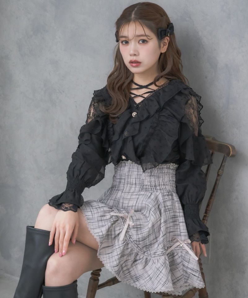 クロスネック×フリルで魅せる万能ガーリーブラウス。ドビードットが視線を惹きつけるさりげないアクセントに♪ホワイトのみ無地もラインナップ、合わせるアイテムを選ばずきちんと感もあるので、デイリー使いからオフィスカジュアルまで幅広く活躍します。クロスネックのリボンは前後自由に結べて、表情の変化も◎