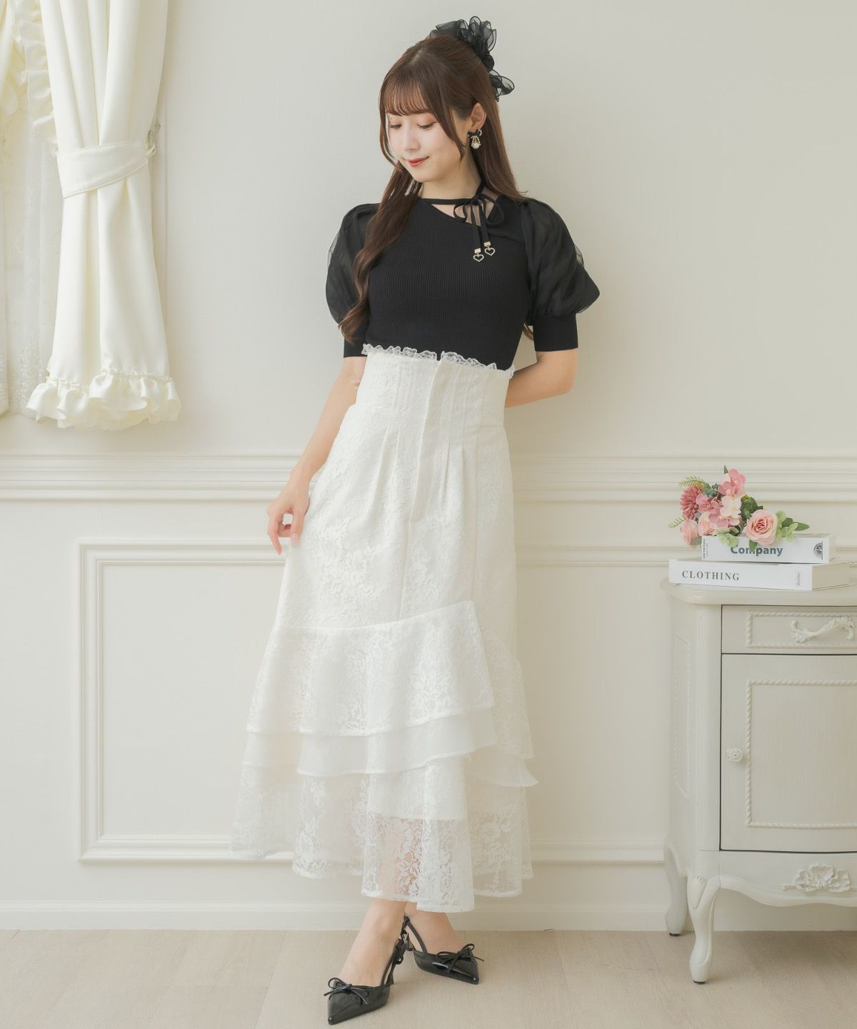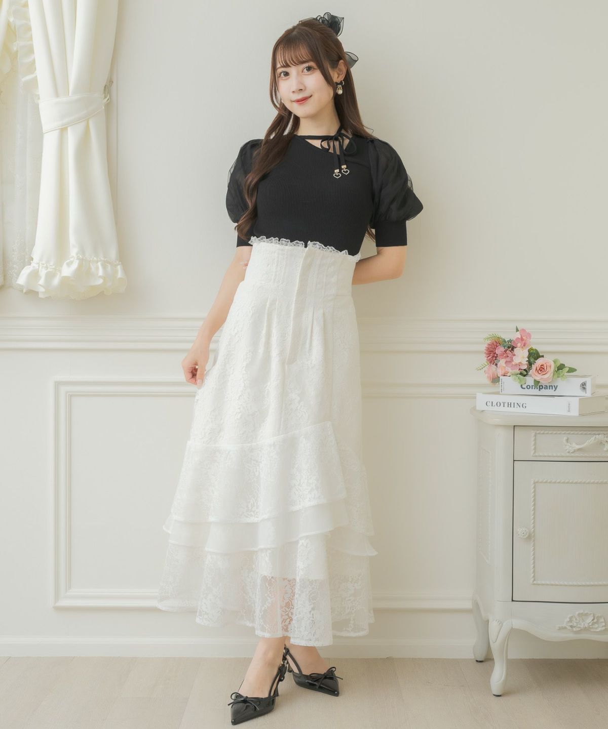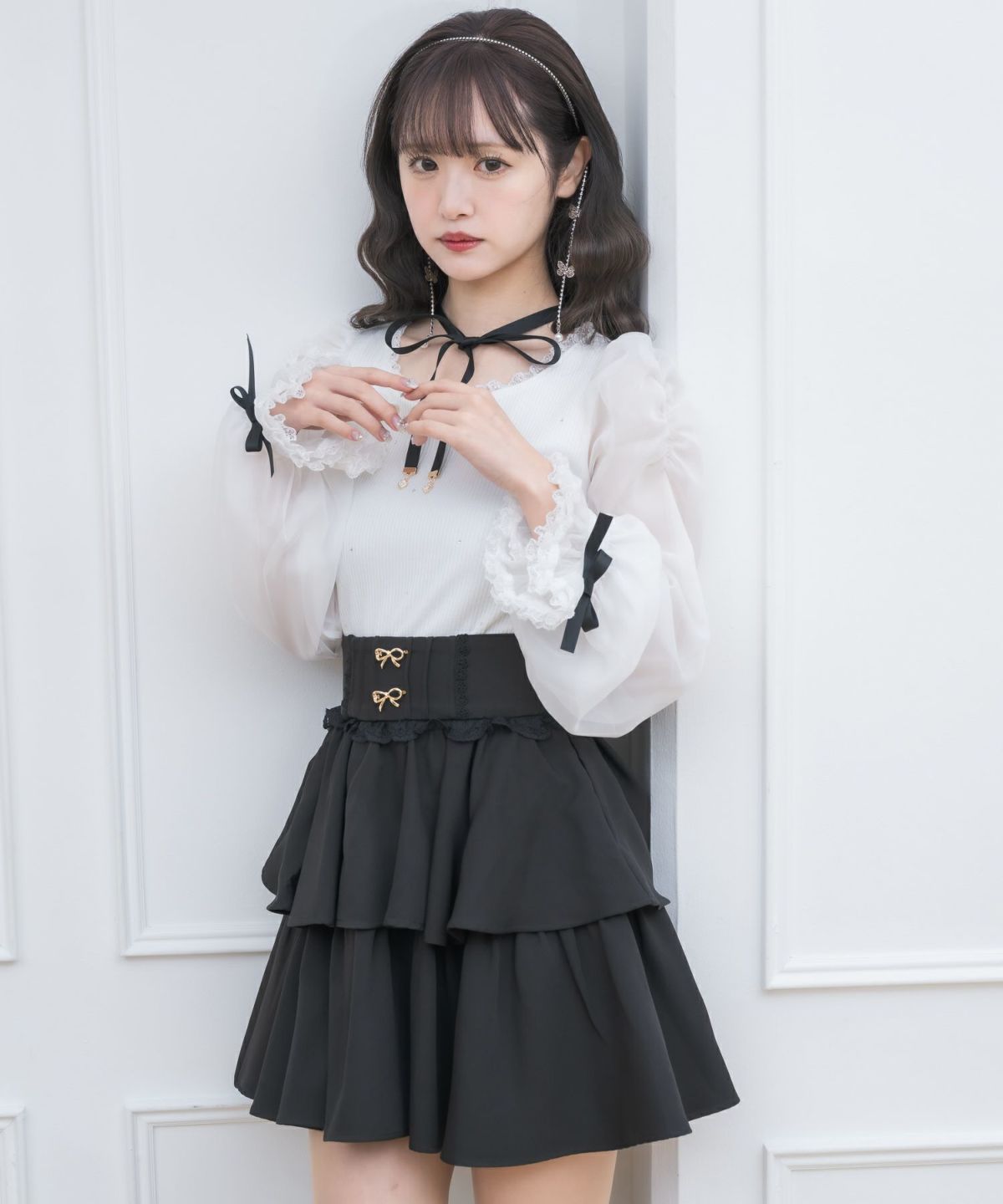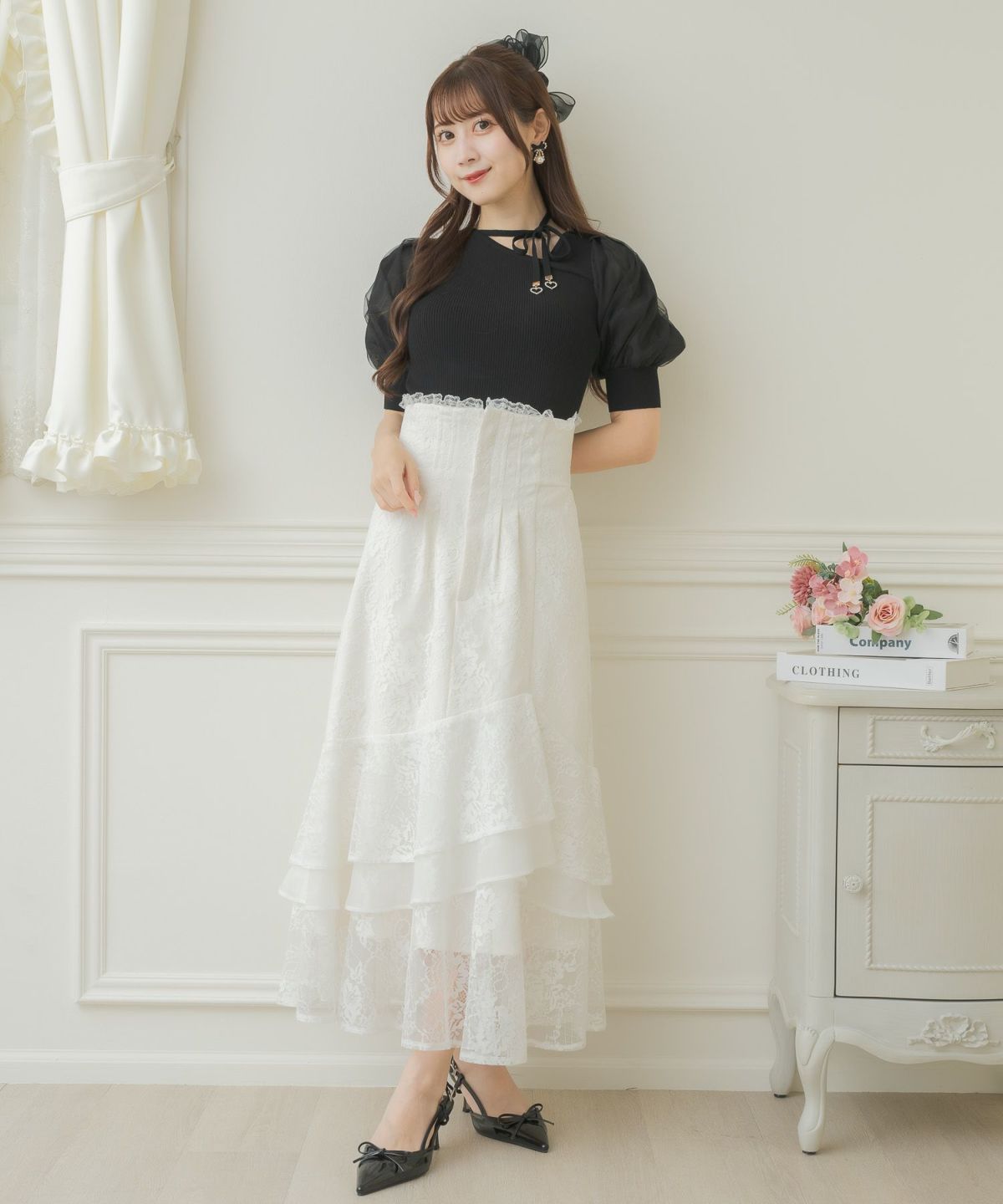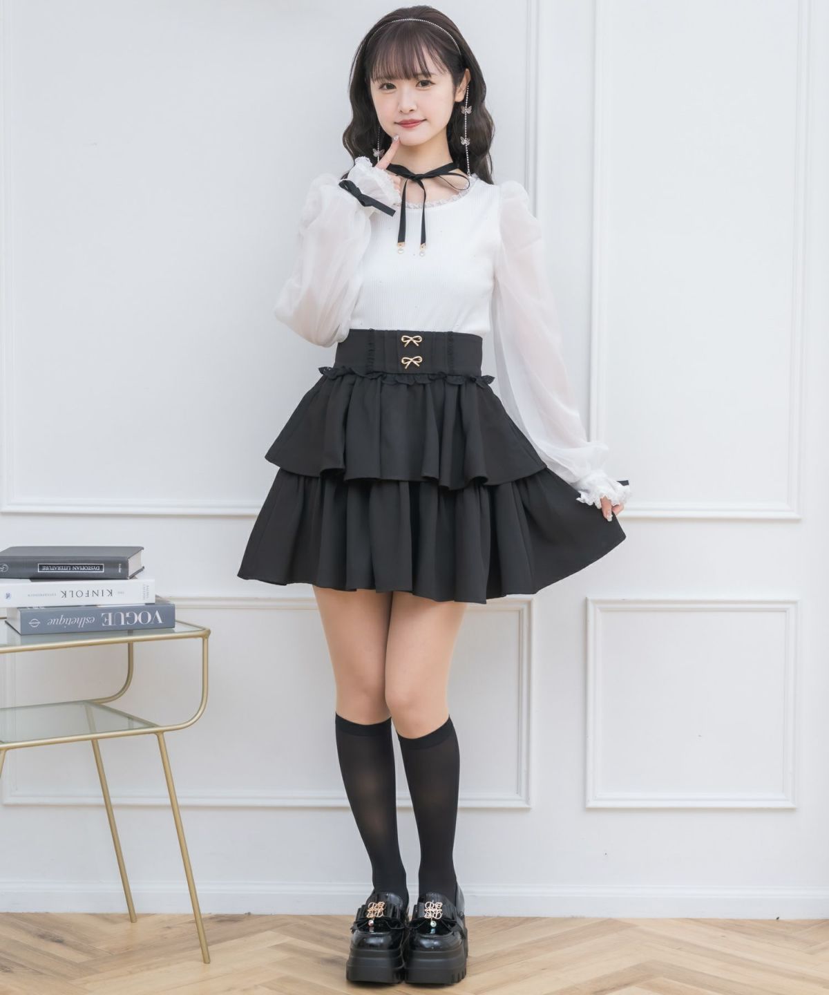 【20%off】 ゴールドリボン飾り付き2段フレアスカート