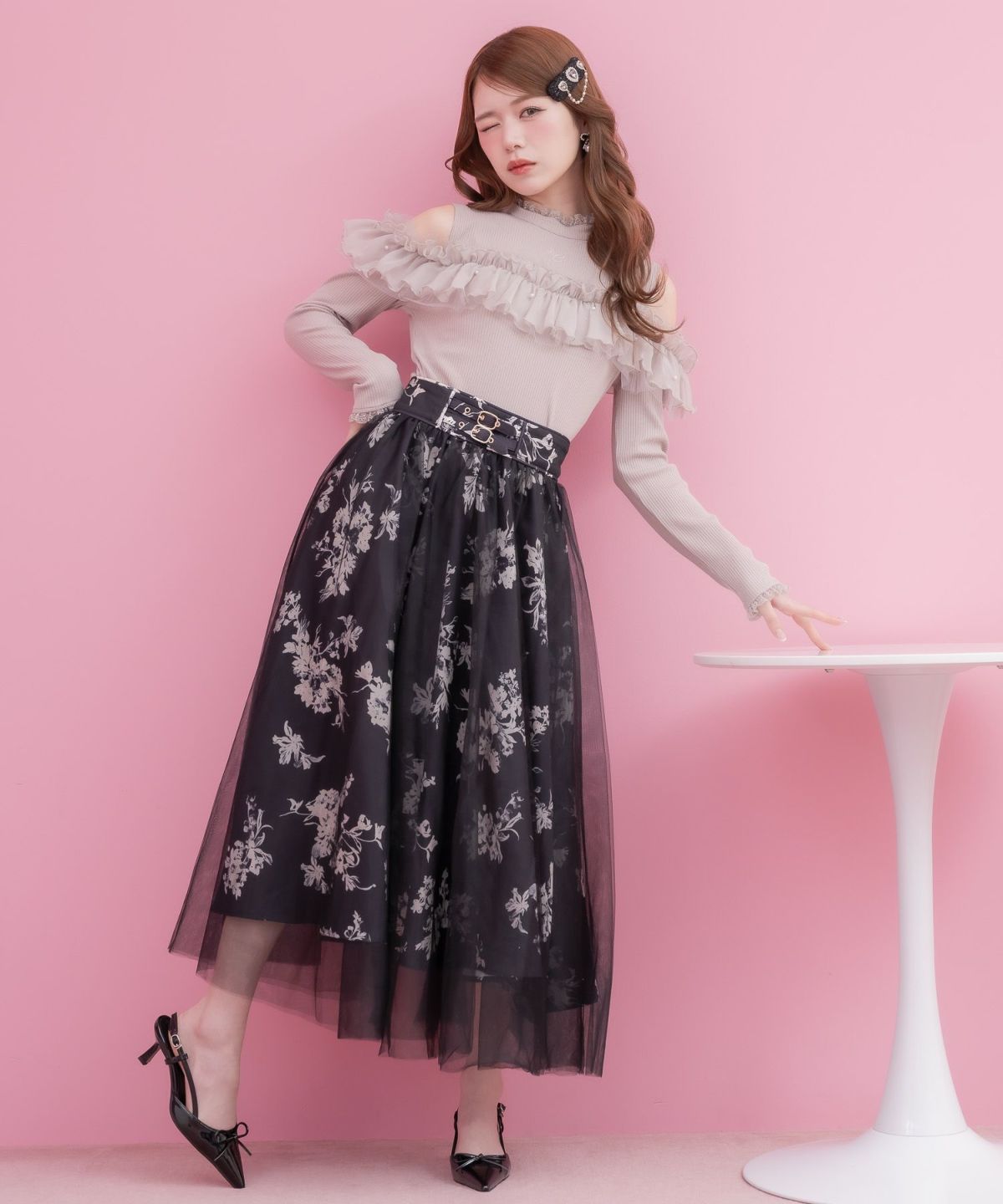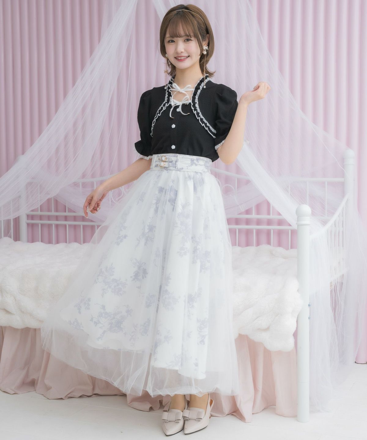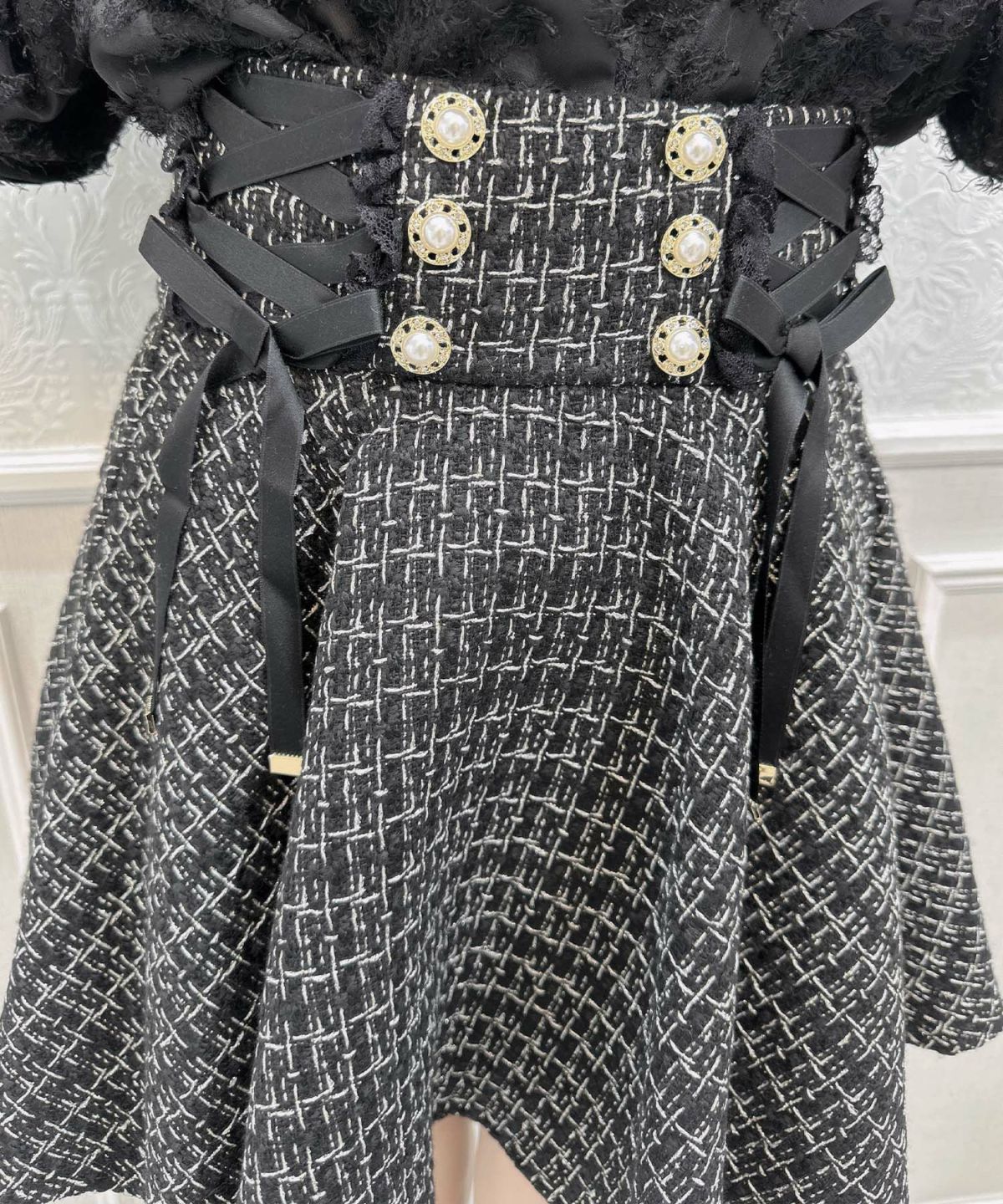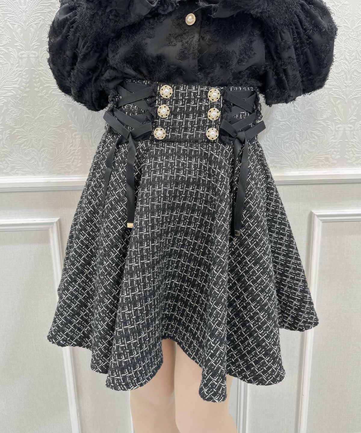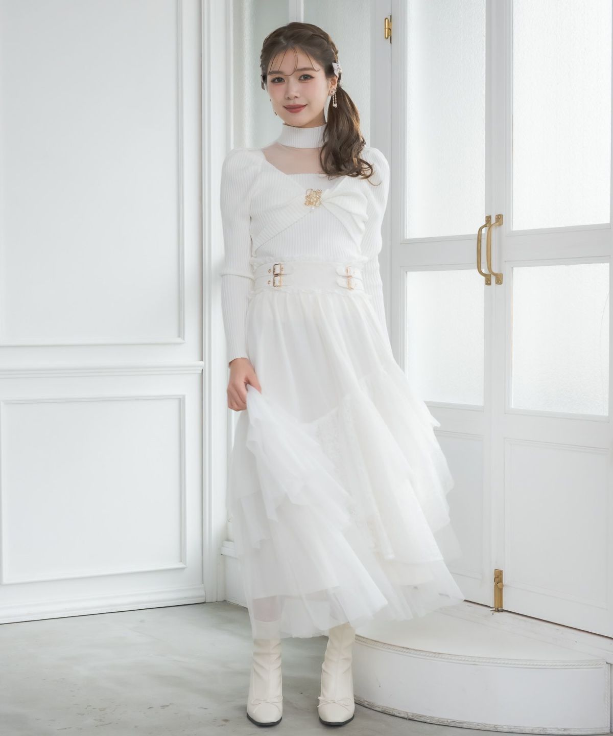 【20%off】 ゴールドリボン飾り付き2段フレアスカート