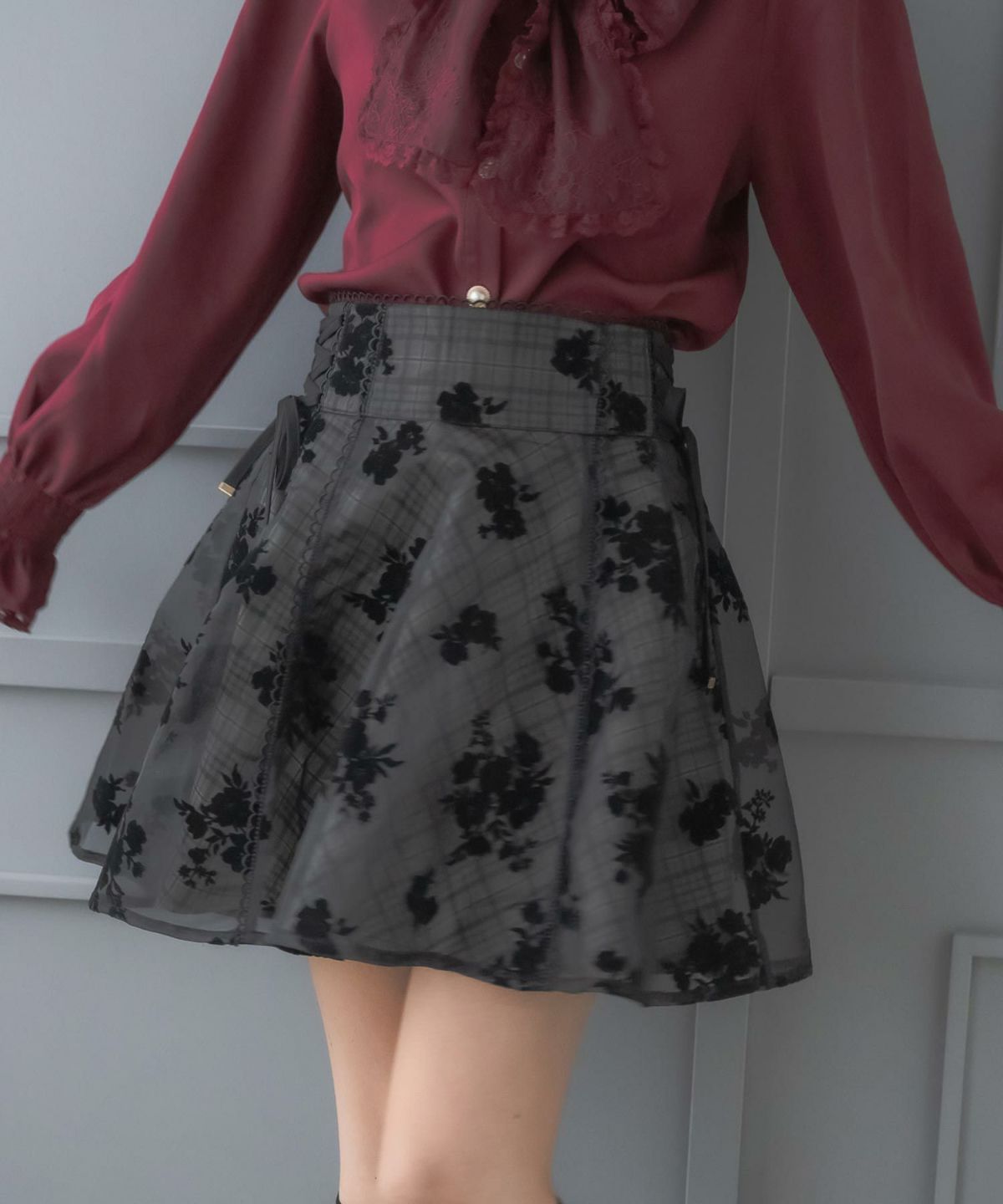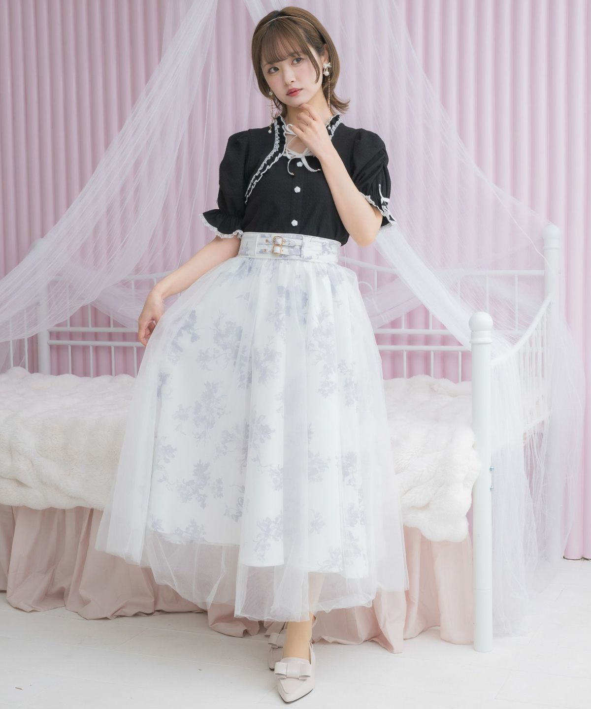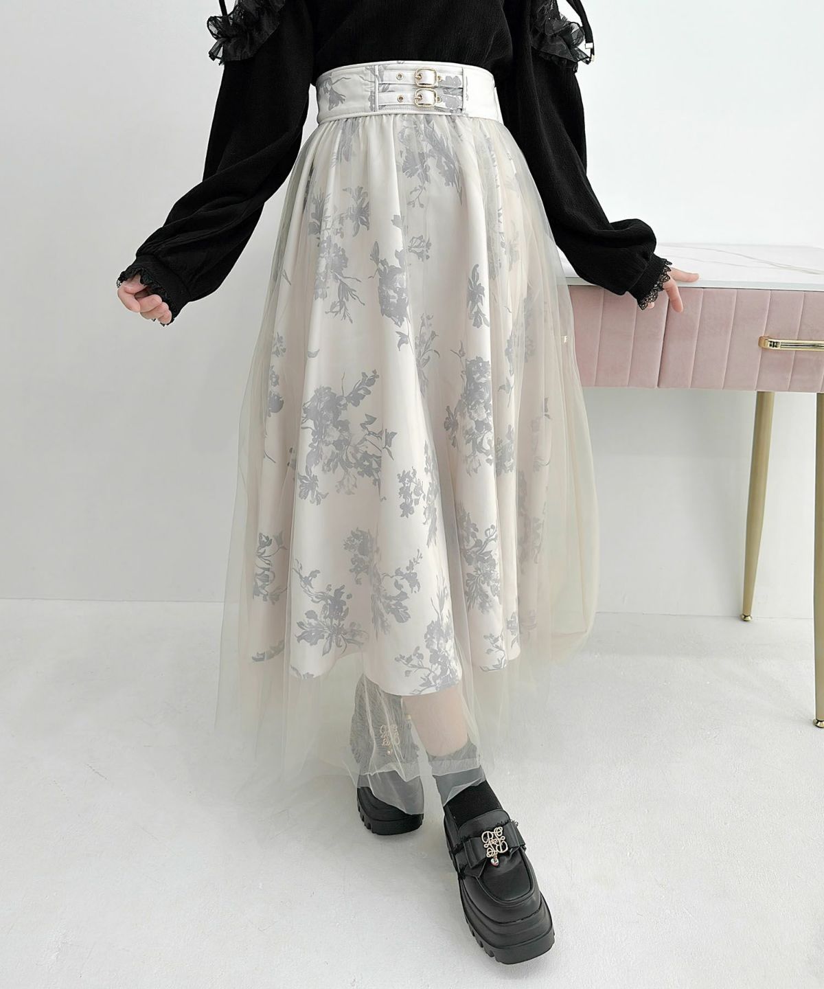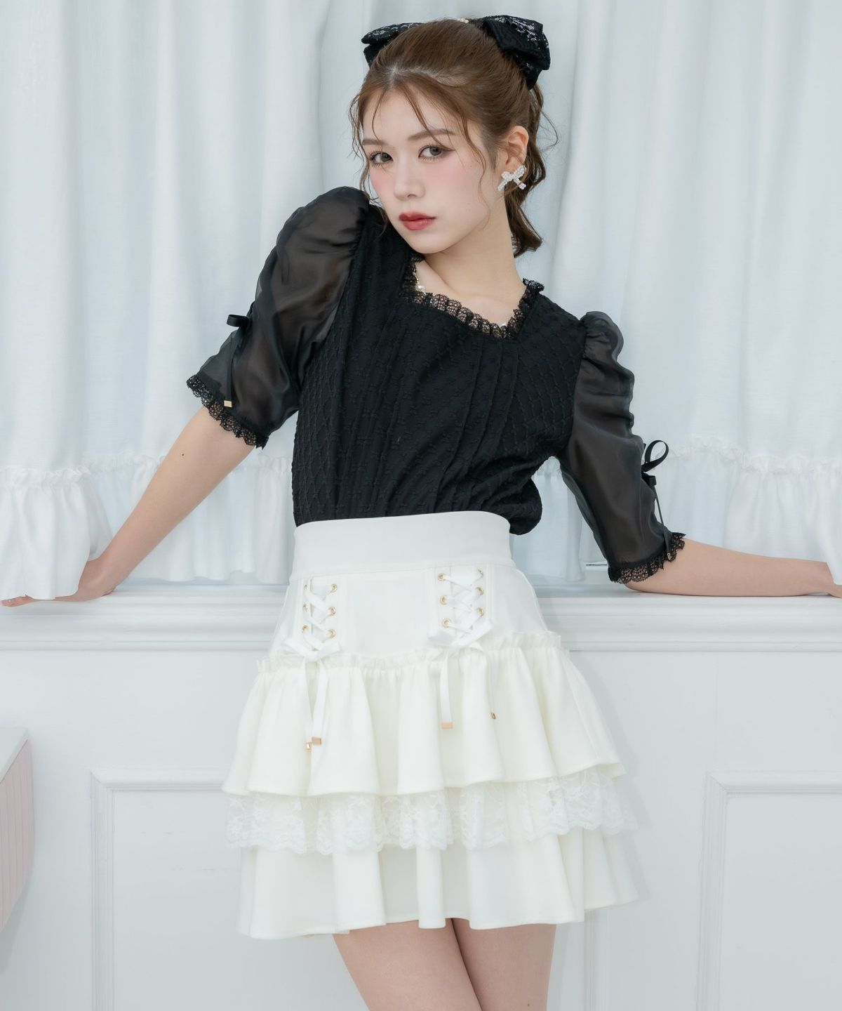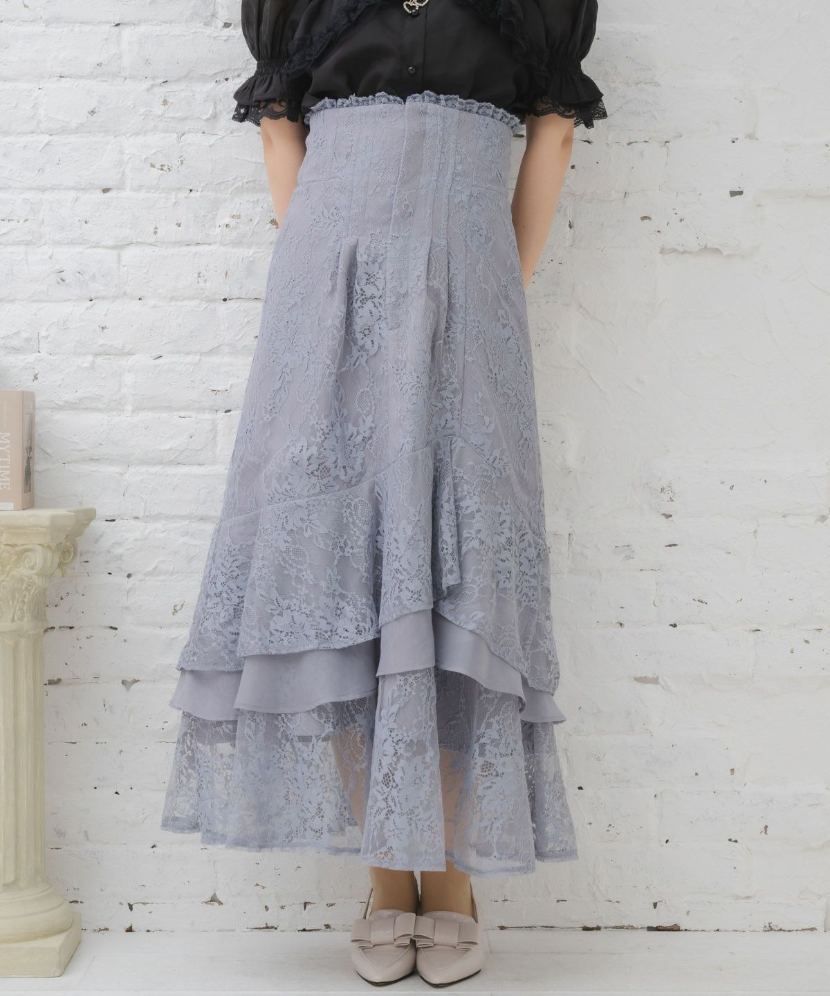 【20%off】 ゴールドリボン飾り付き2段フレアスカート