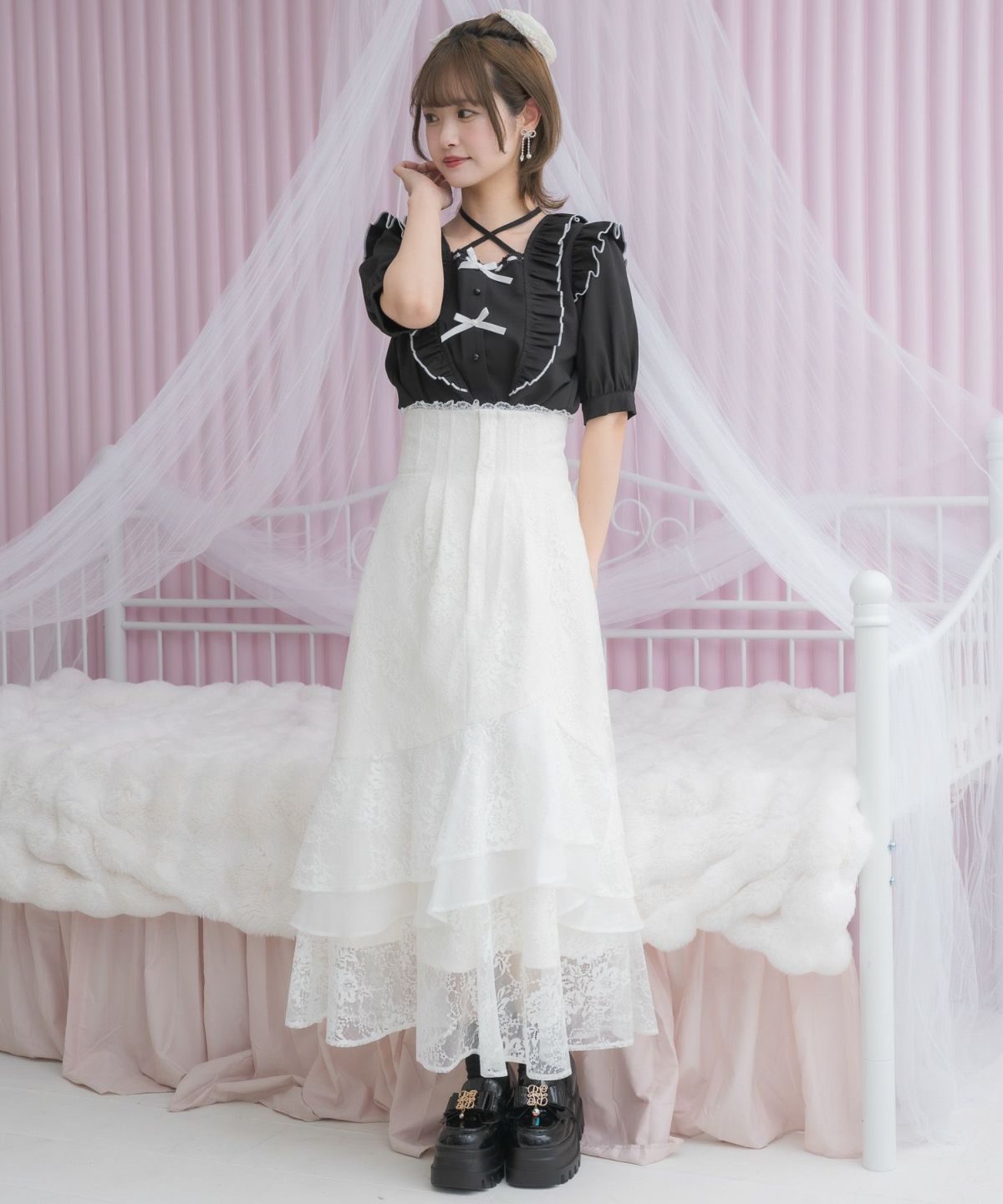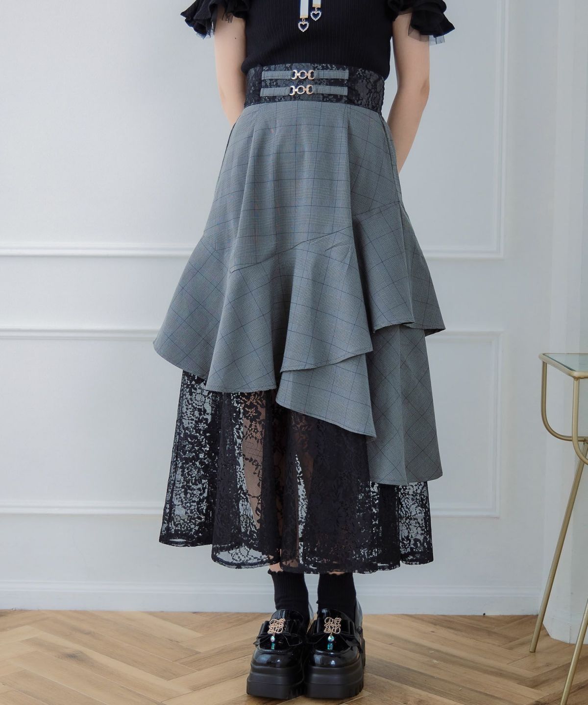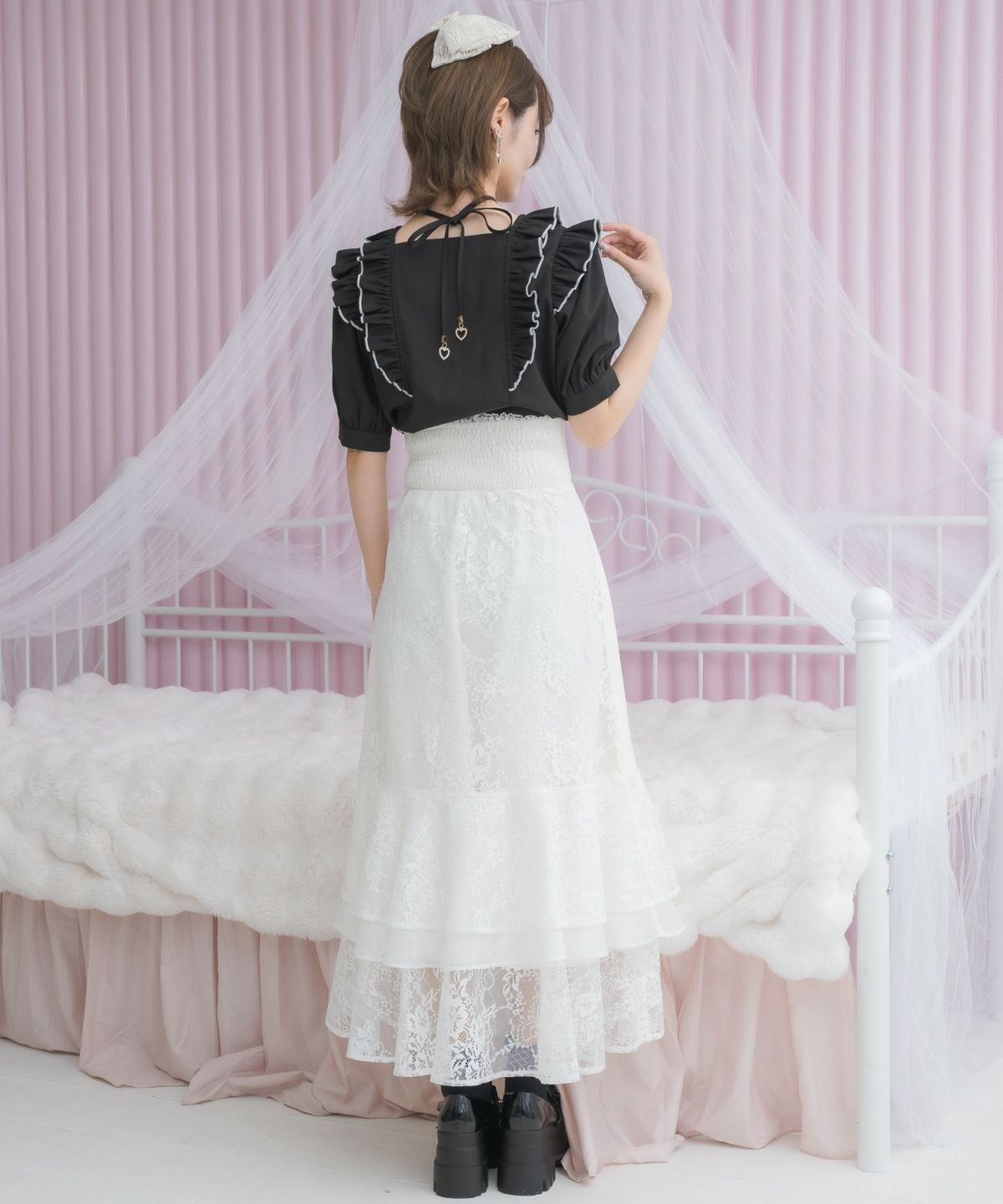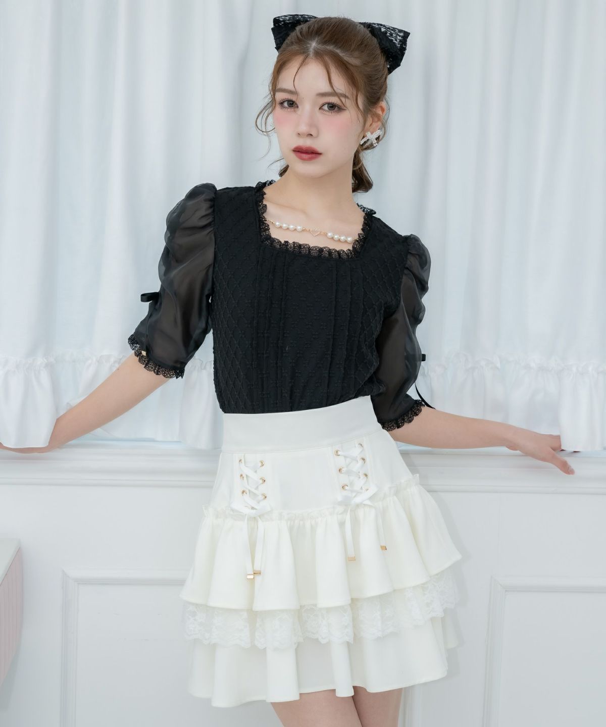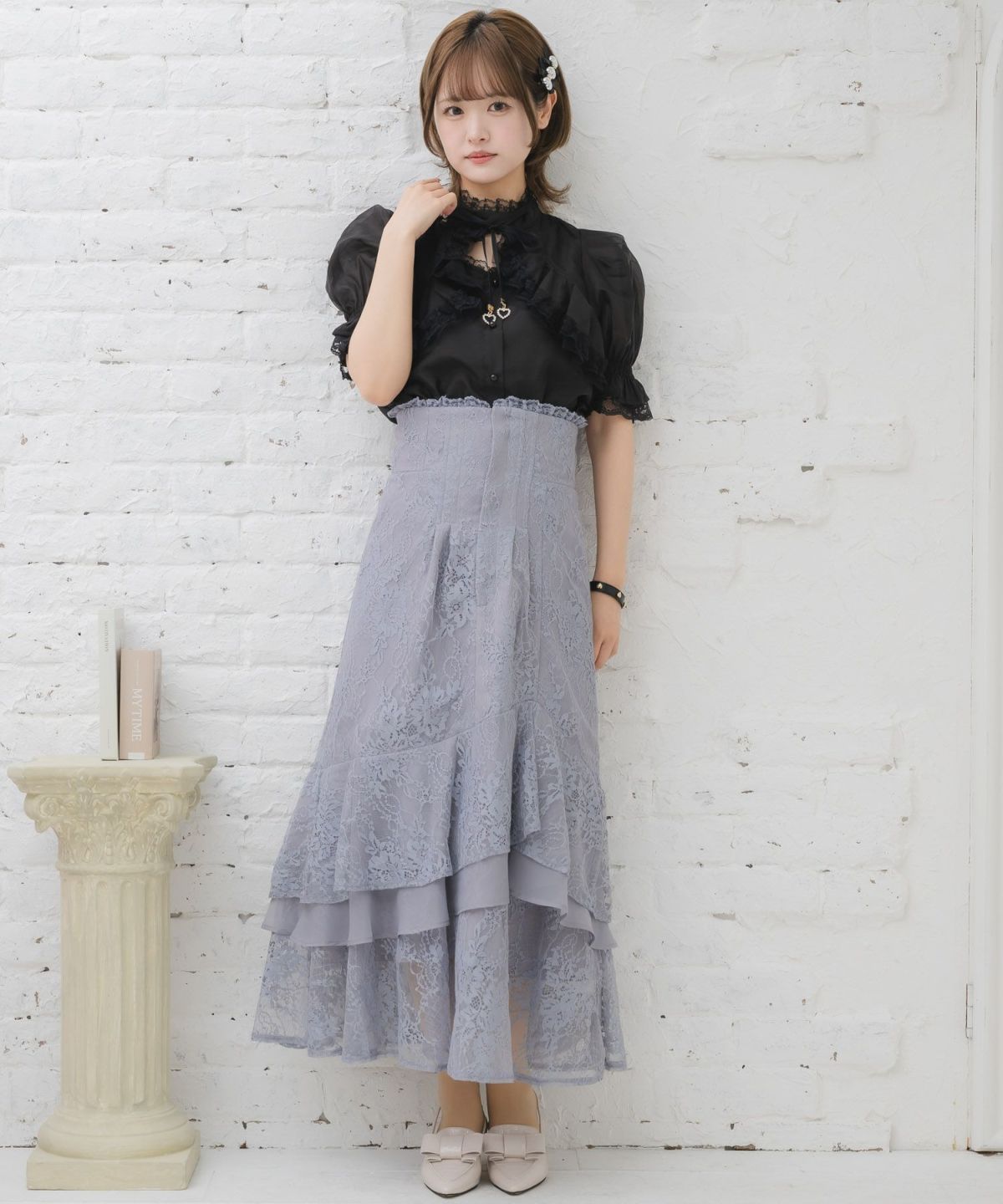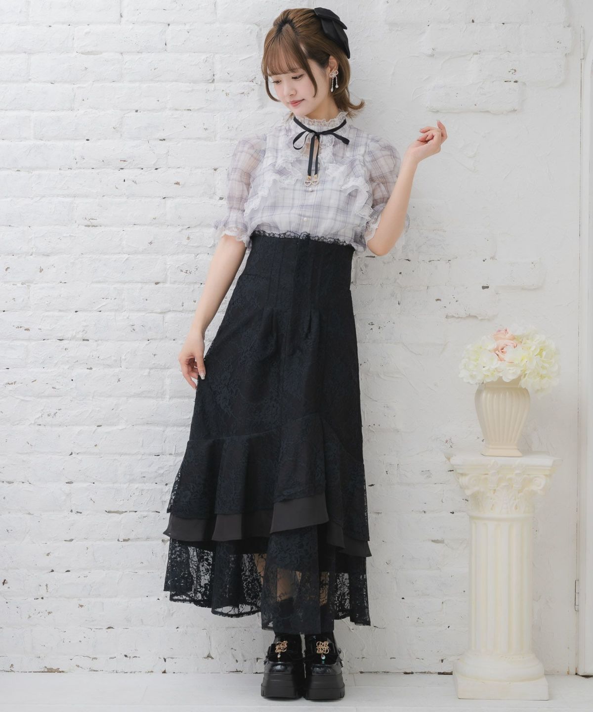 【20%off】 ゴールドリボン飾り付き2段フレアスカート