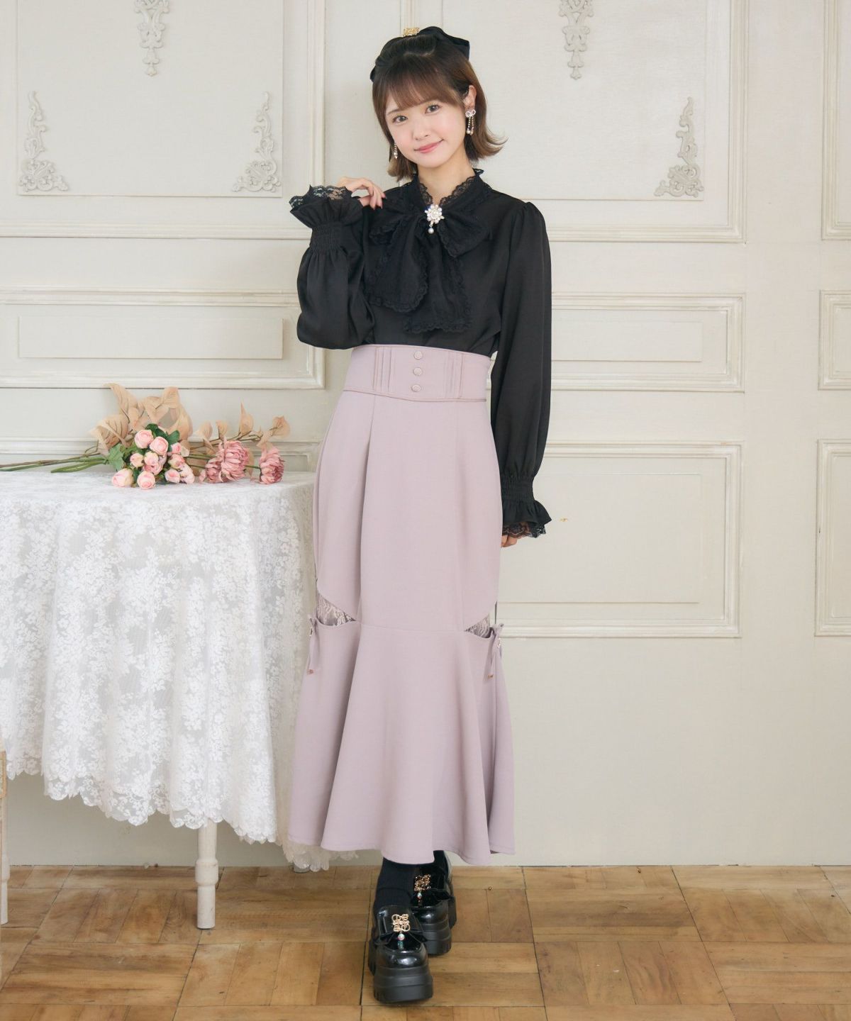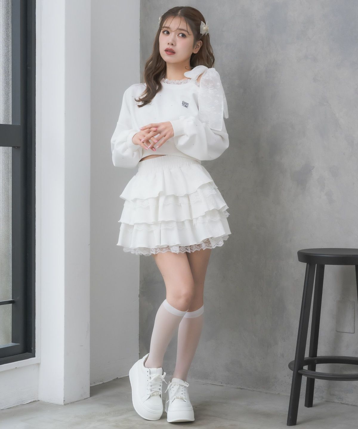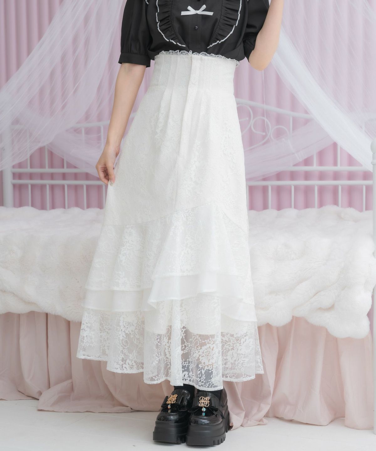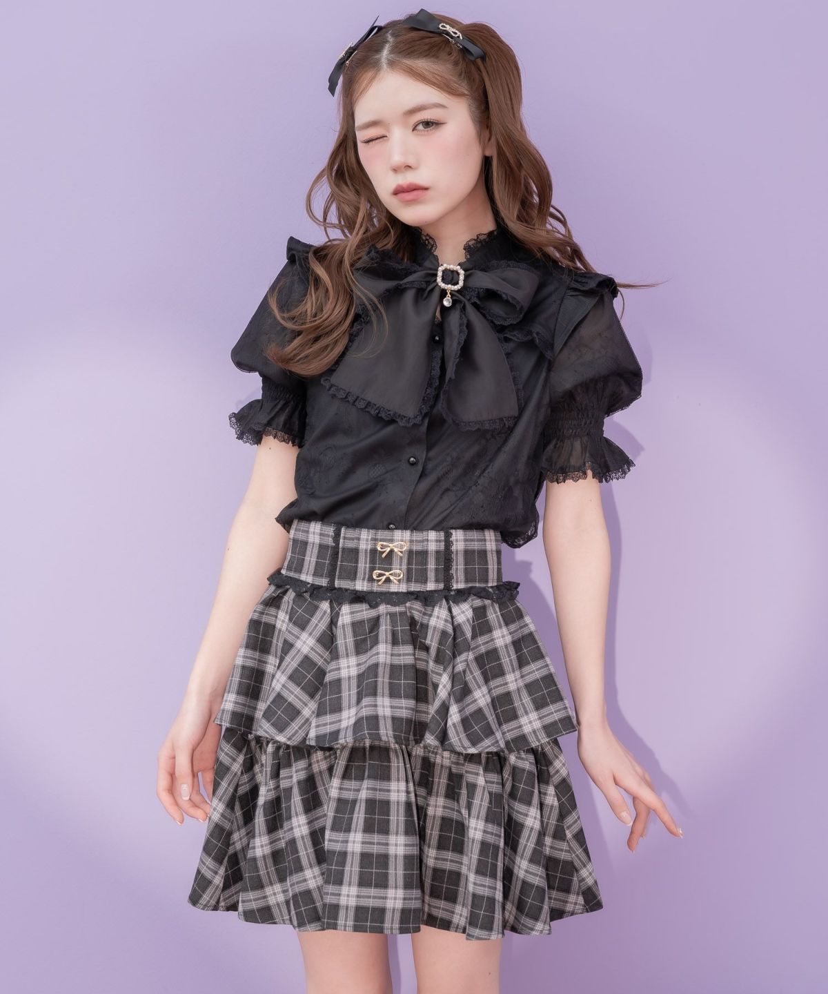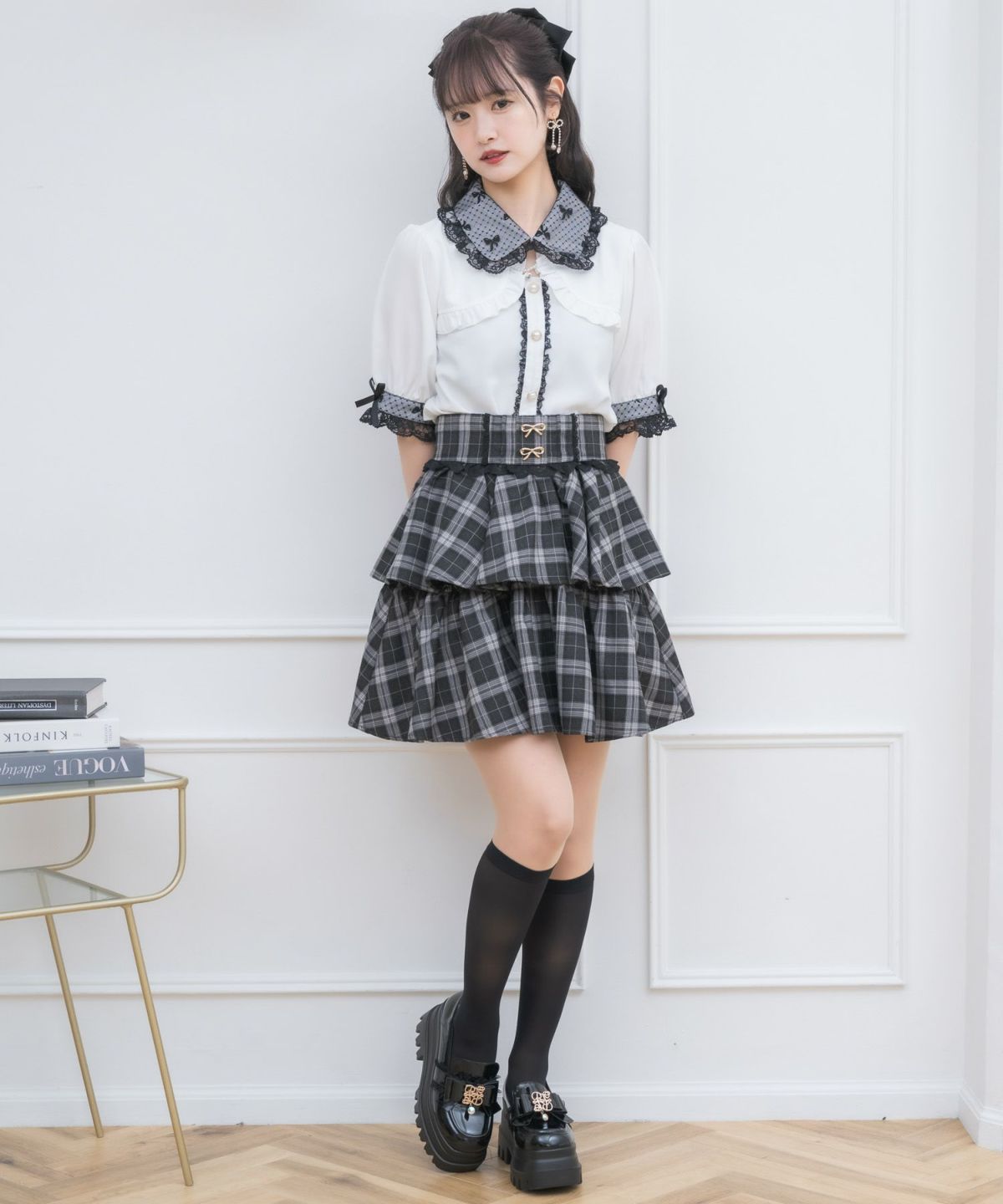 【20%off】 ゴールドリボン飾り付き2段フレアスカート