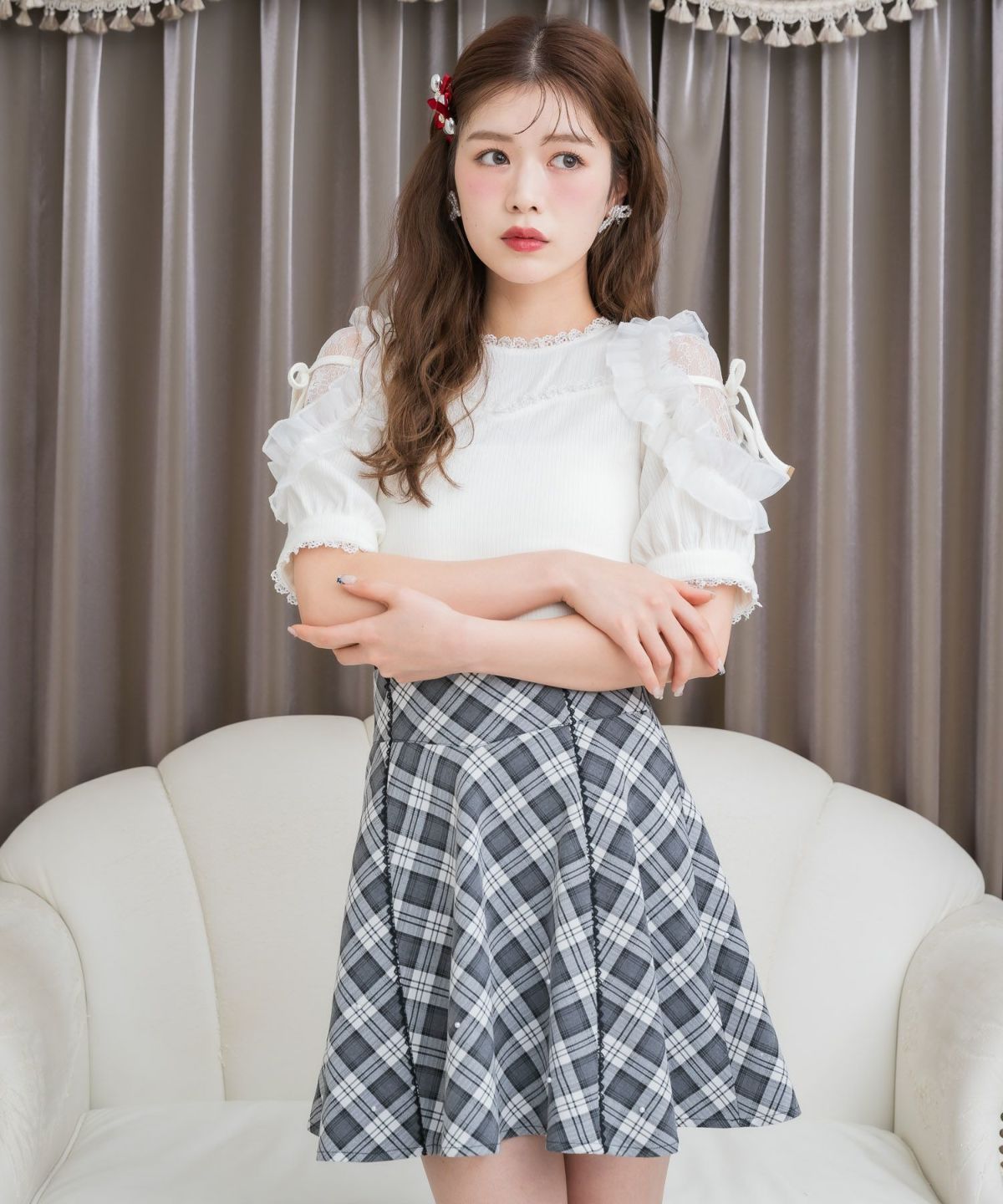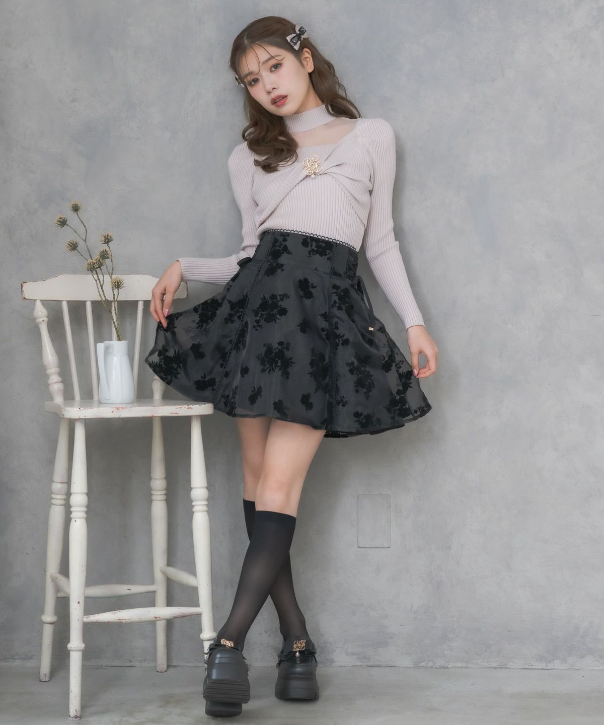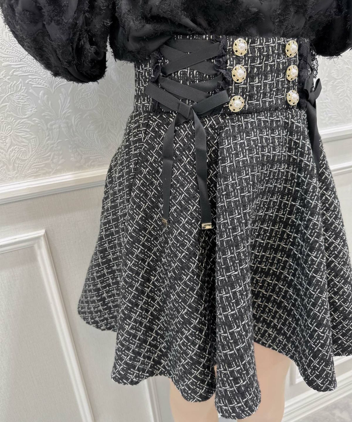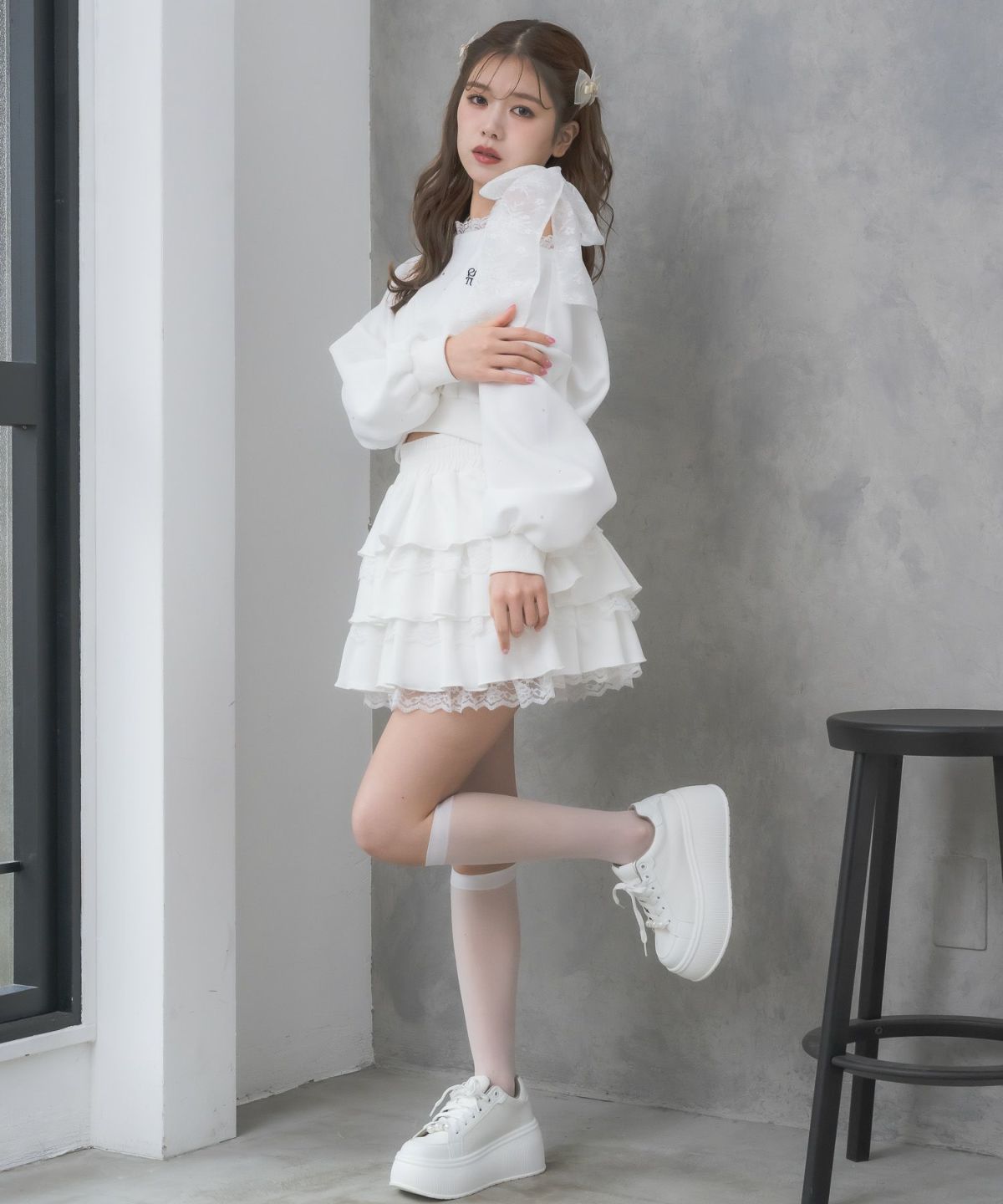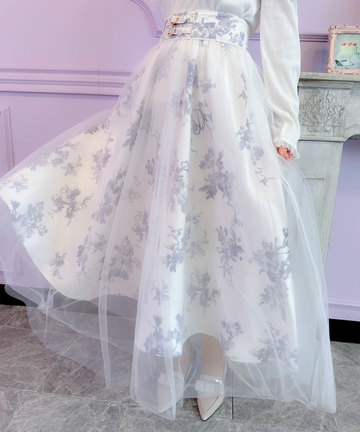 【20%off】 ゴールドリボン飾り付き2段フレアスカート