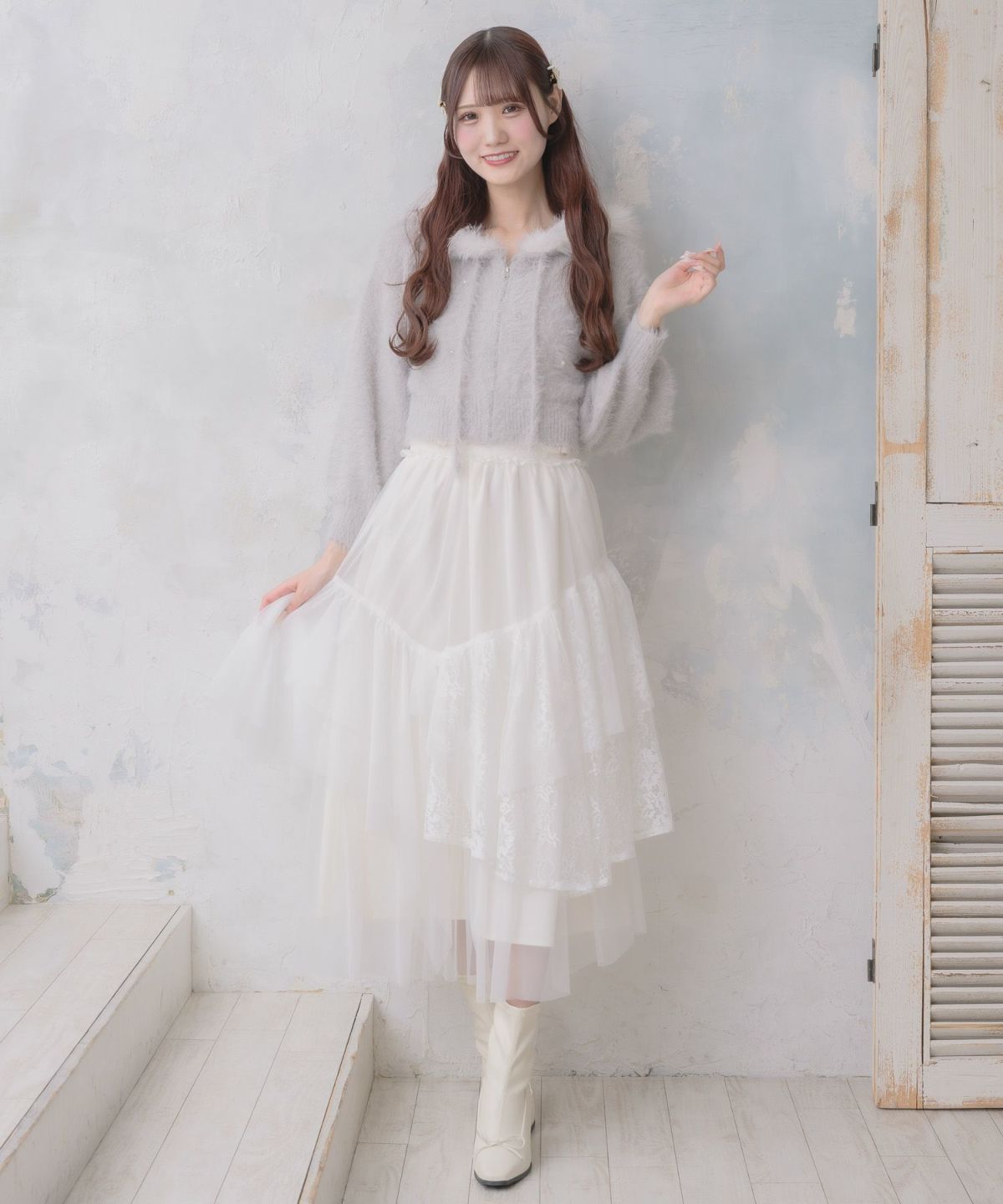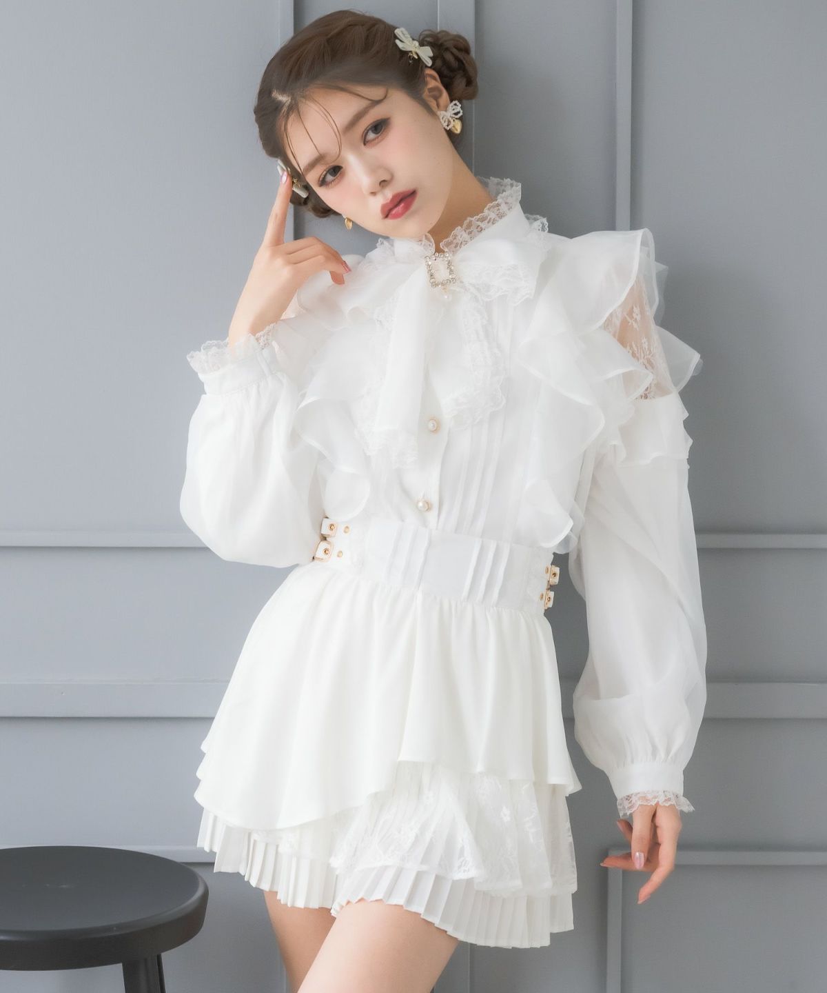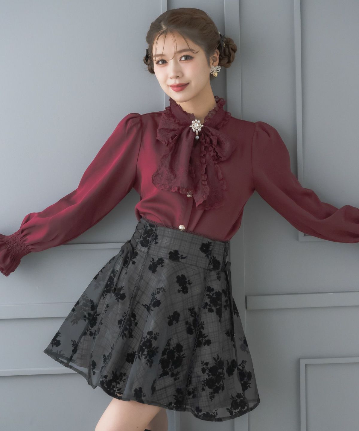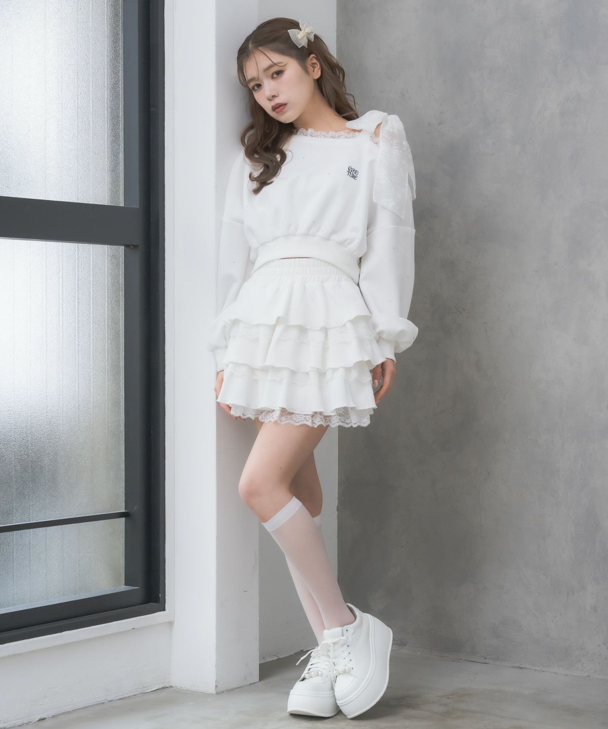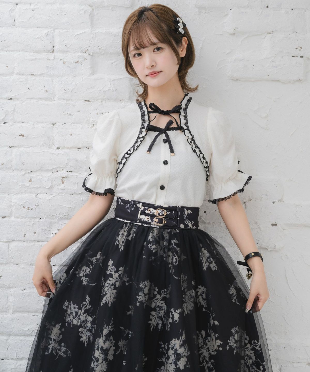 【20%off】 ゴールドリボン飾り付き2段フレアスカート