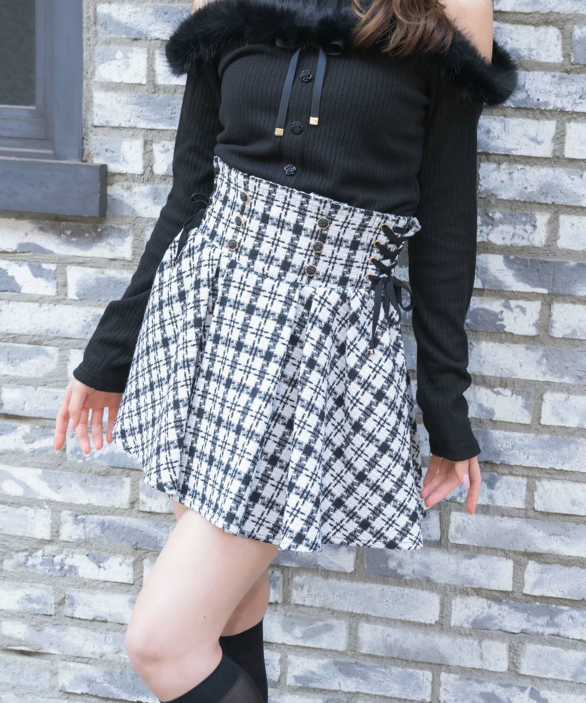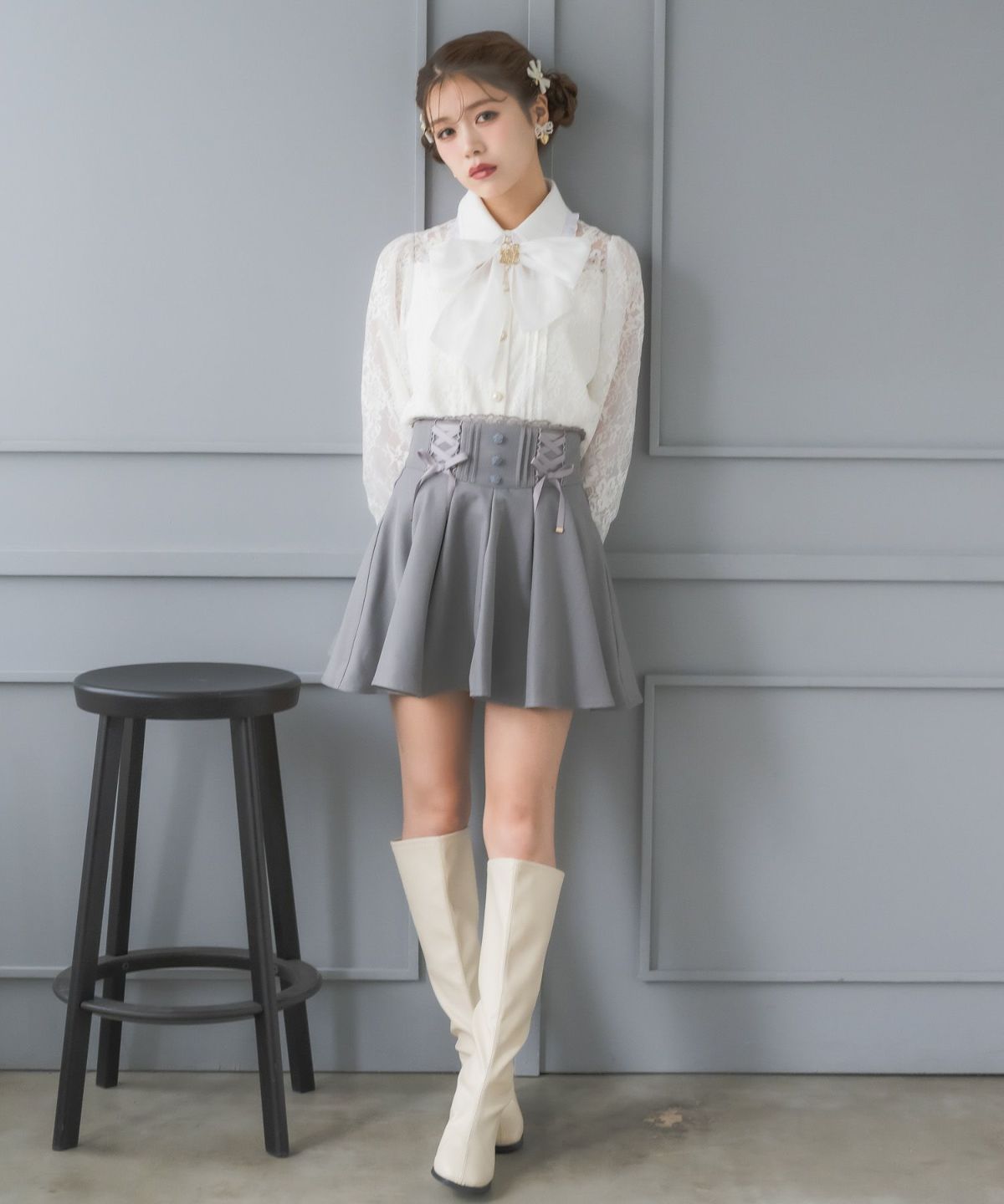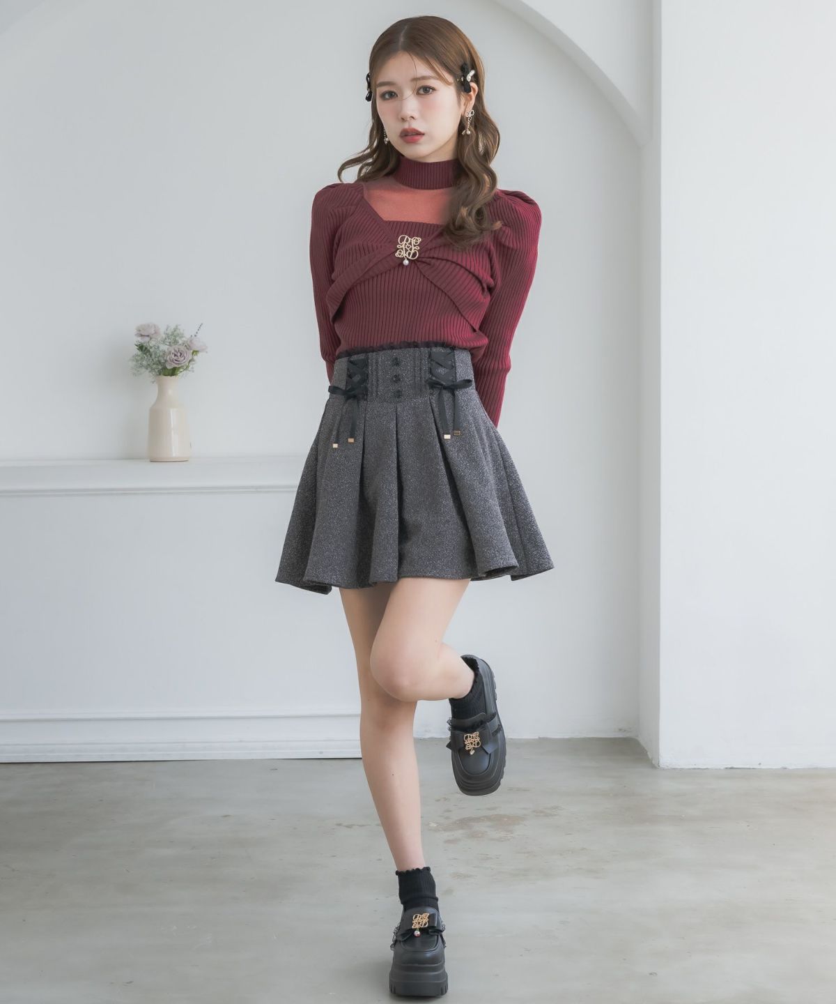 【50%off】 バックレースアップ ランダムビジュースカパン