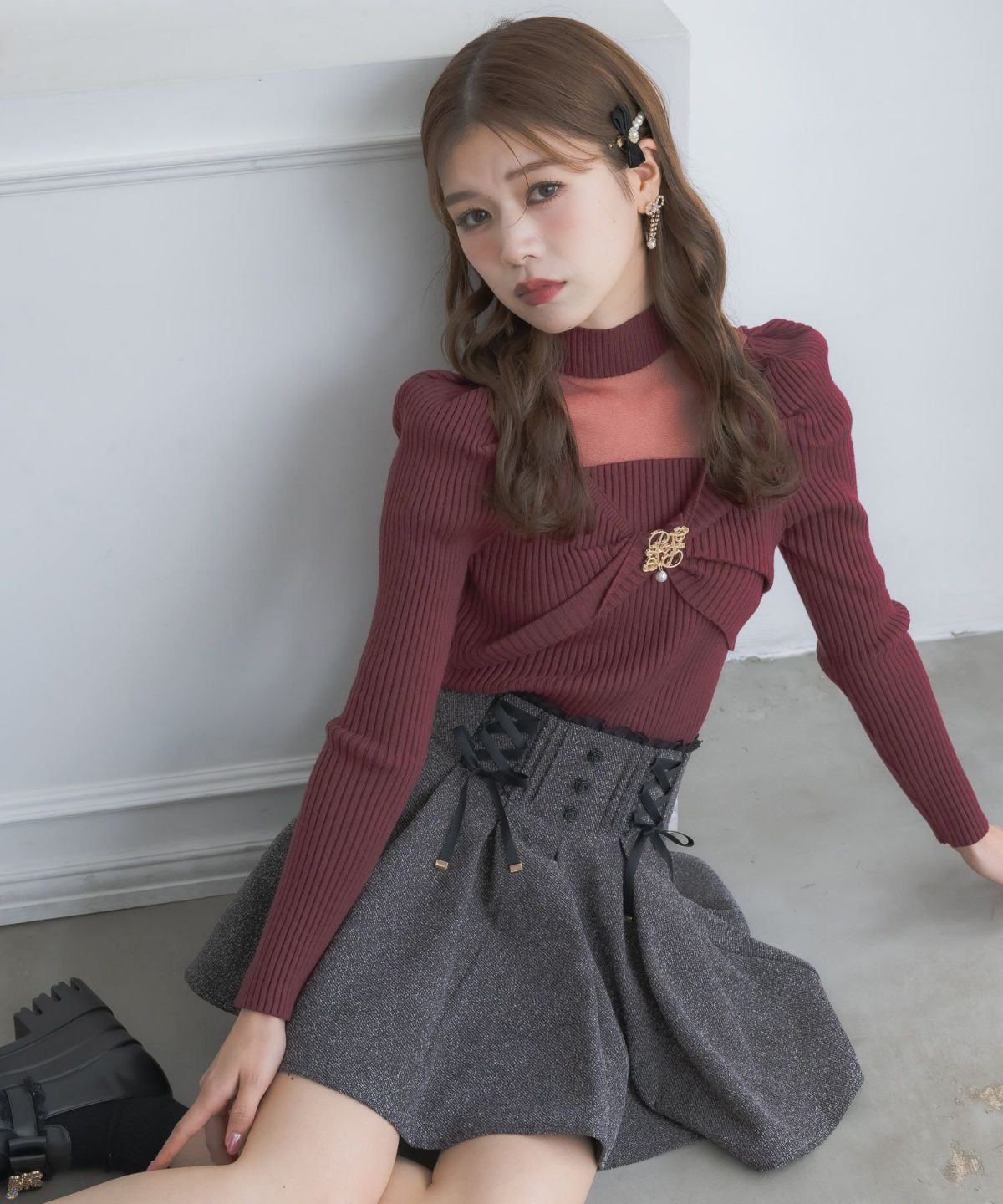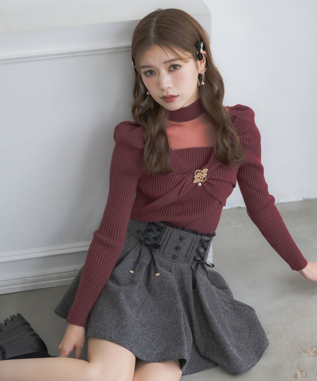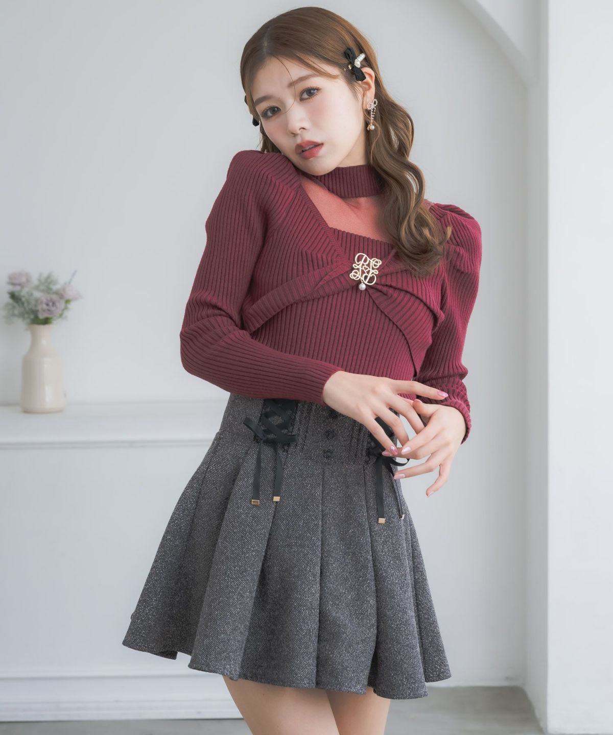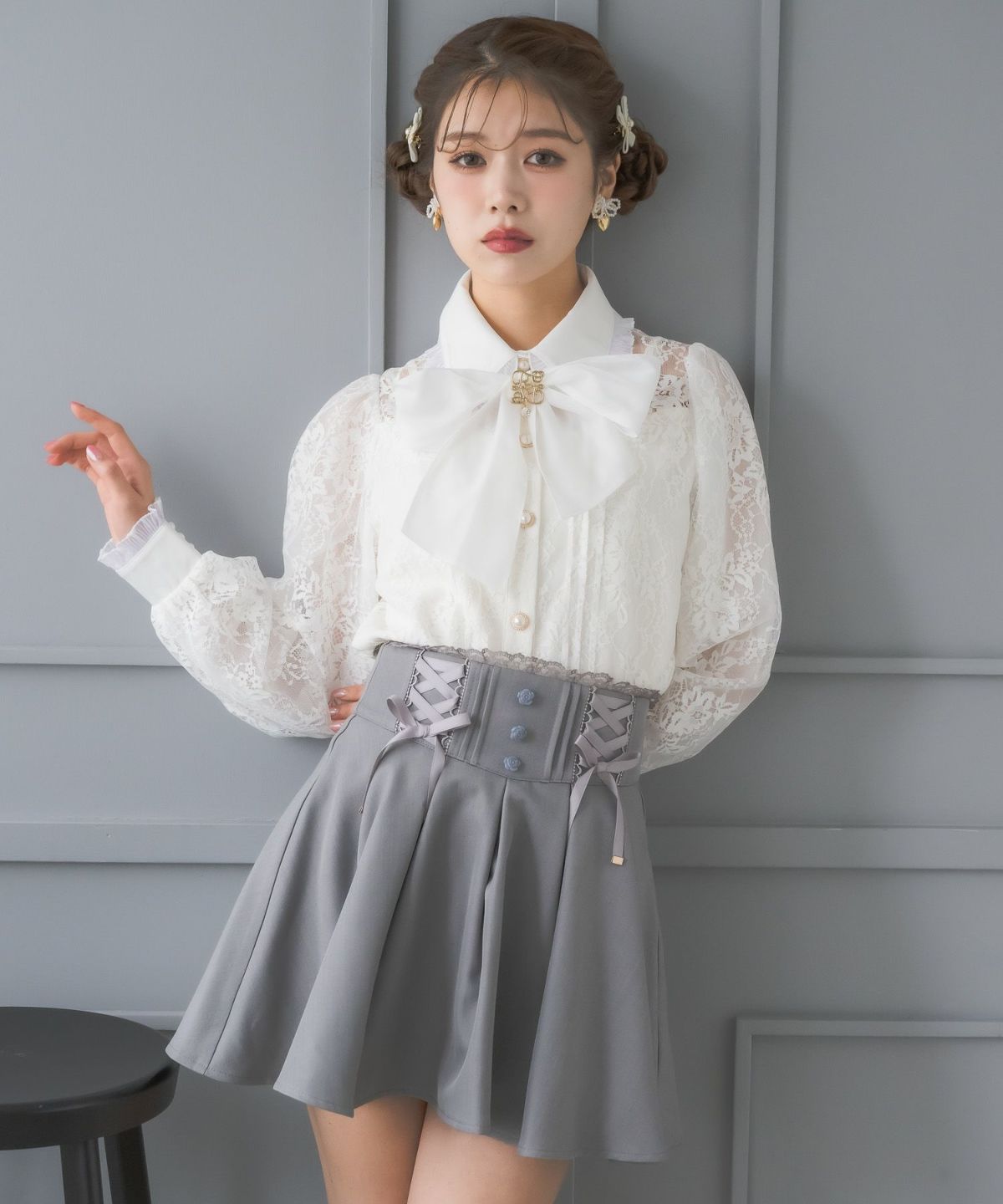 【50%off】 バックレースアップ ランダムビジュースカパン