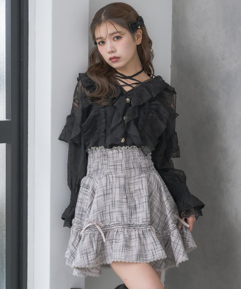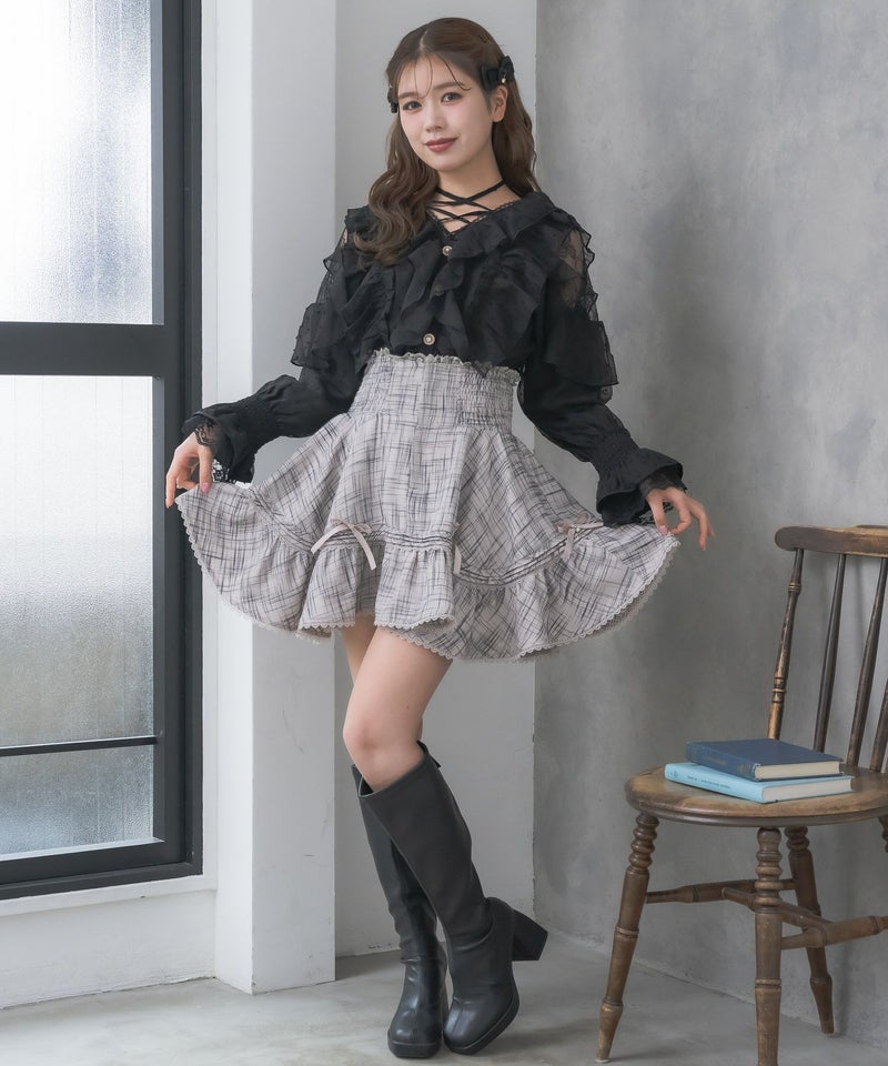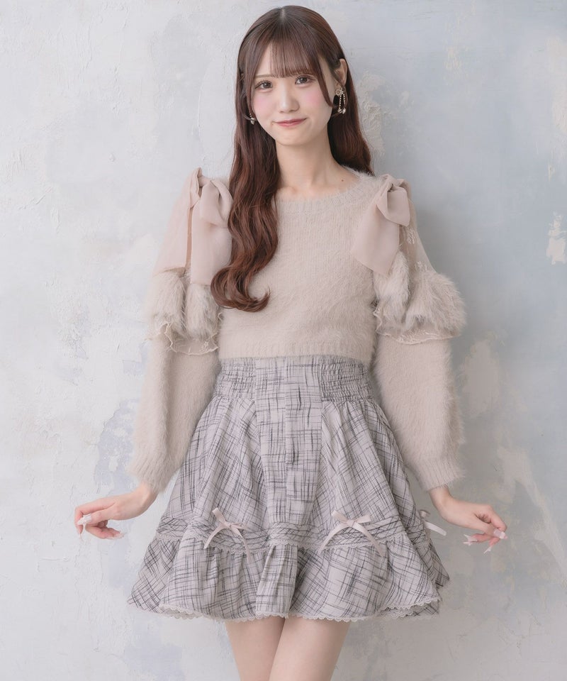 ウエストにたっぷりと施された太めのシャーリングが、しっかりフィットしてくれる安心感と細見え効果を両立。フロントのリボンは、ちょこんと甘く、視線を惹きつけるアクセントに◎裾にかけてふんわり広がるフレアラインが、動くたびに揺れて女の子らしさを最大限に引き立てます。 ※照明の関係で実際のお色味と若干異なる場合がございます。 ※表示のサイズ感と実物は若干異なる場合がございますので、予めご了承ください。 モデル身長ベージュ161cm/ブラック・チェック165cm