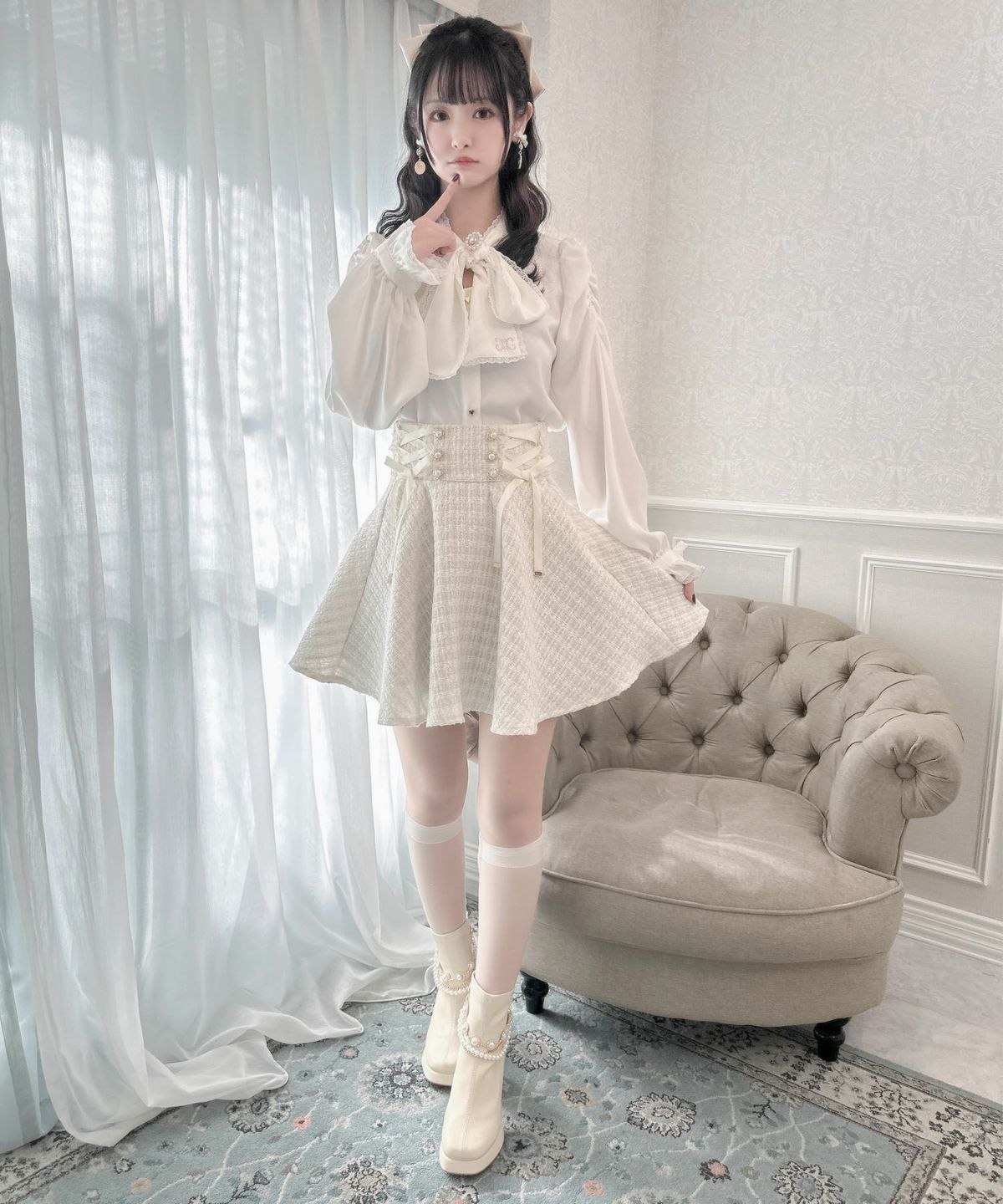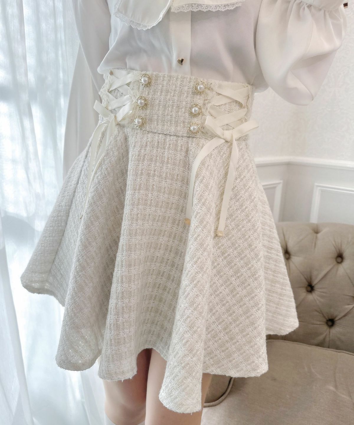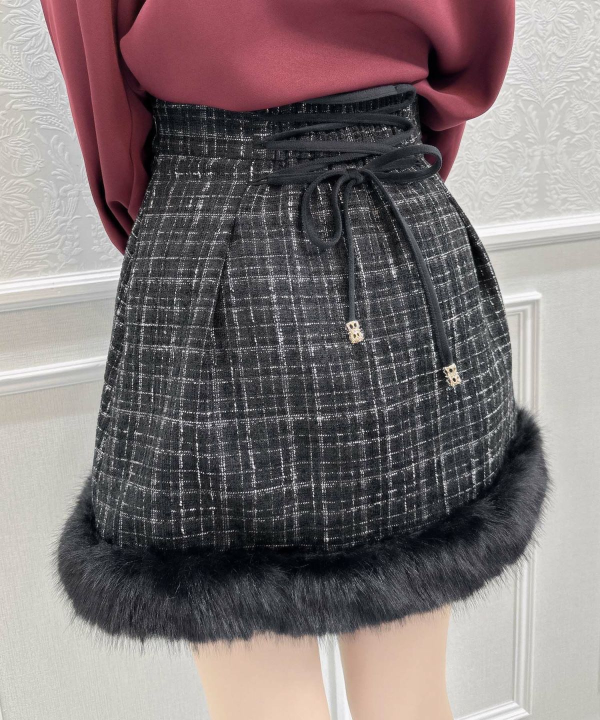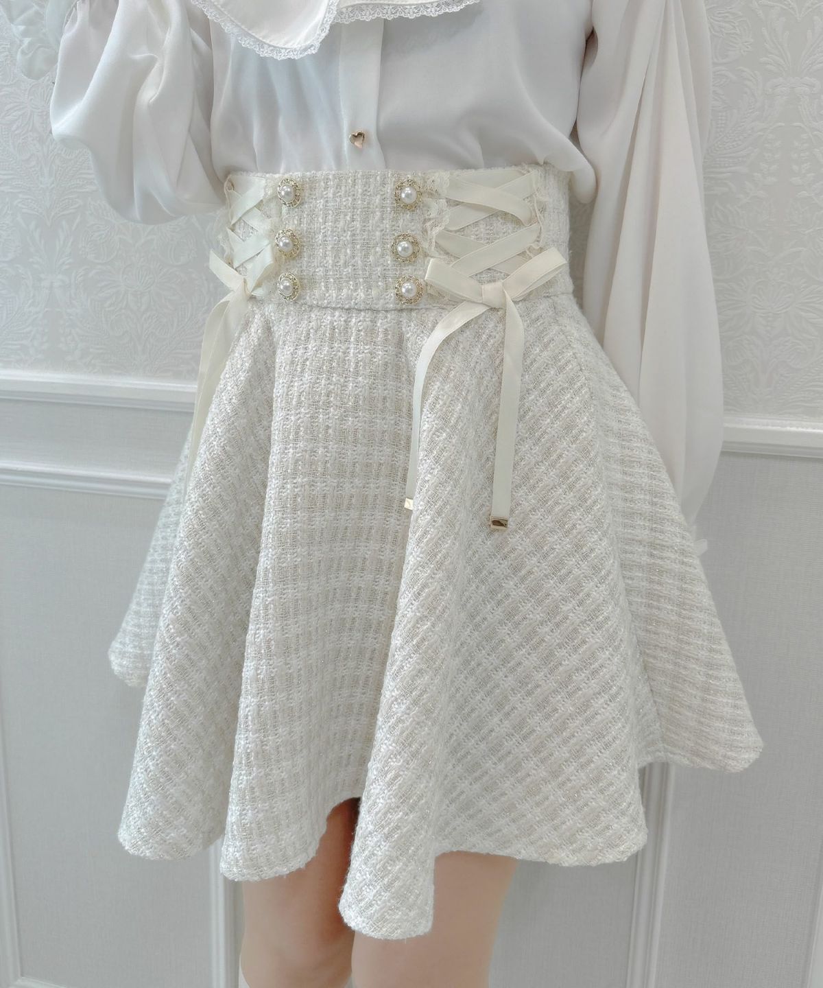 【50%off】 サイドリボン付きツイードマーメイドスカート