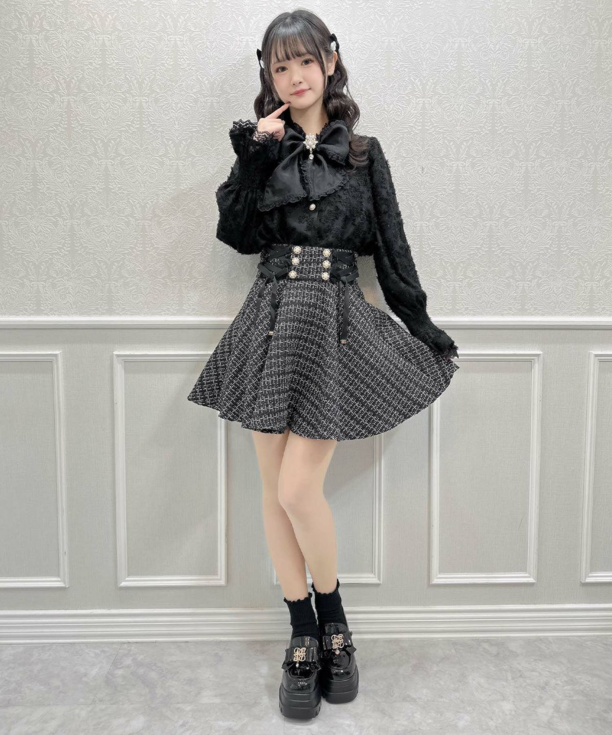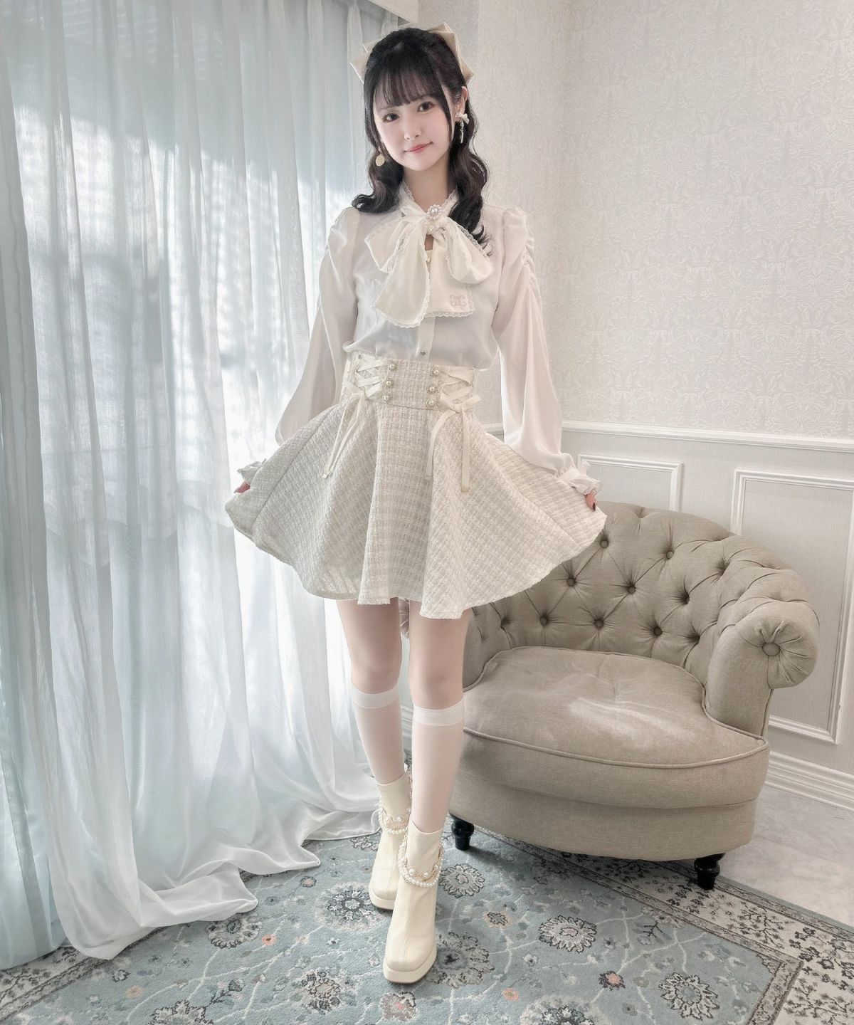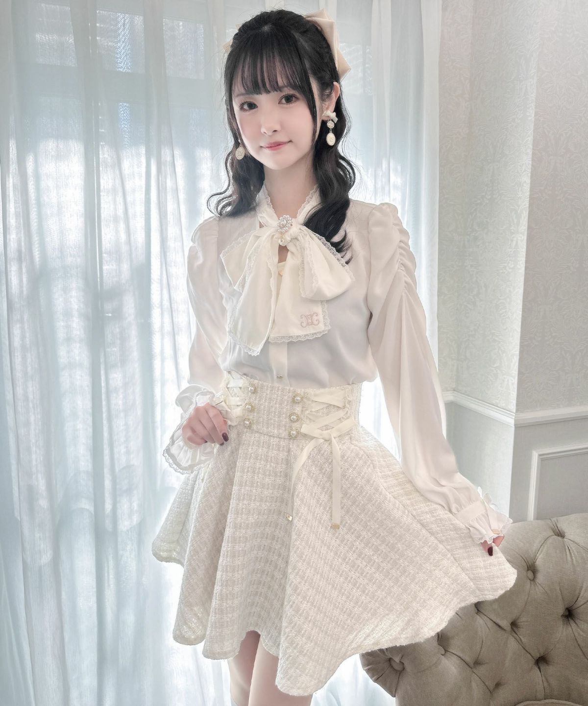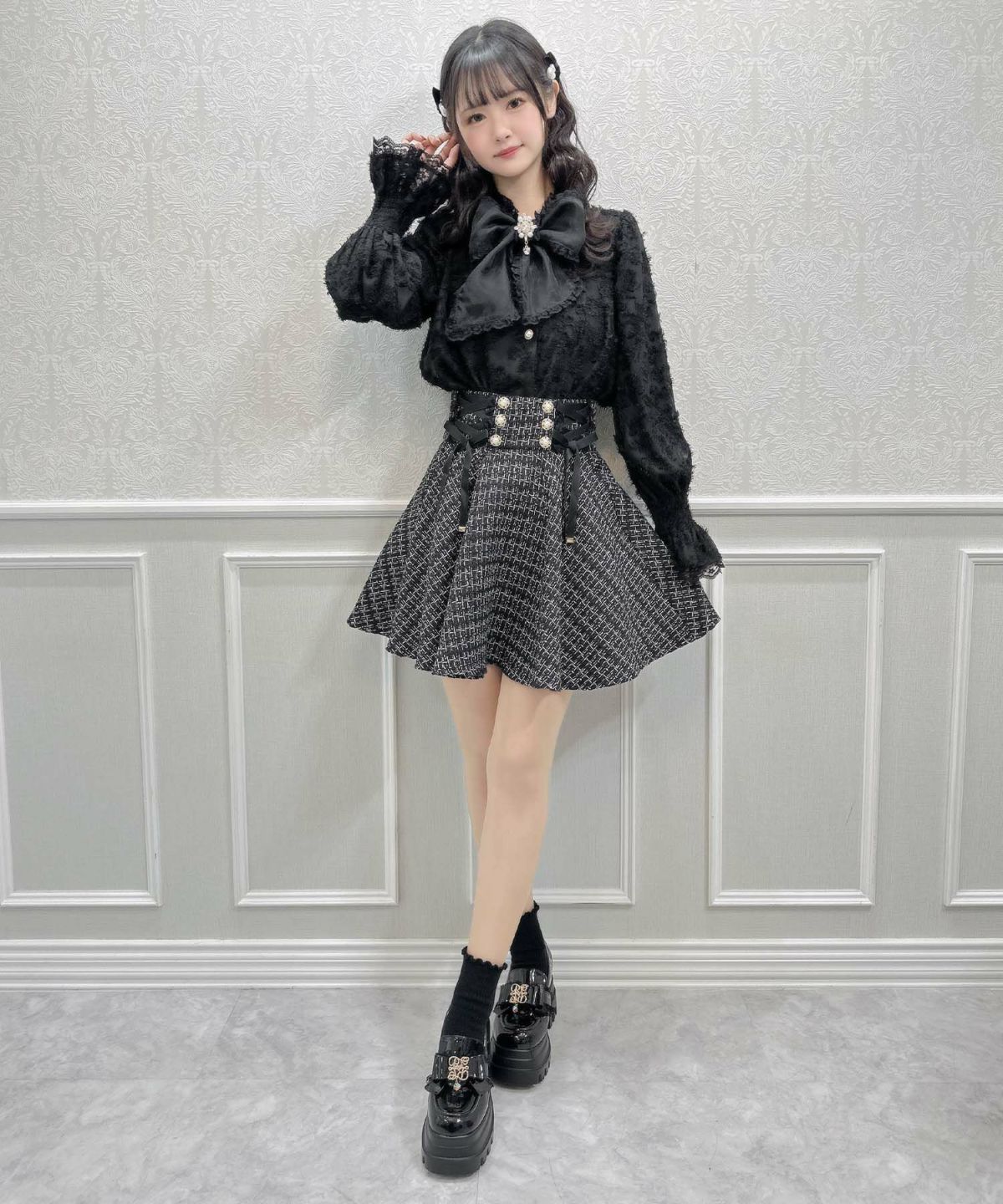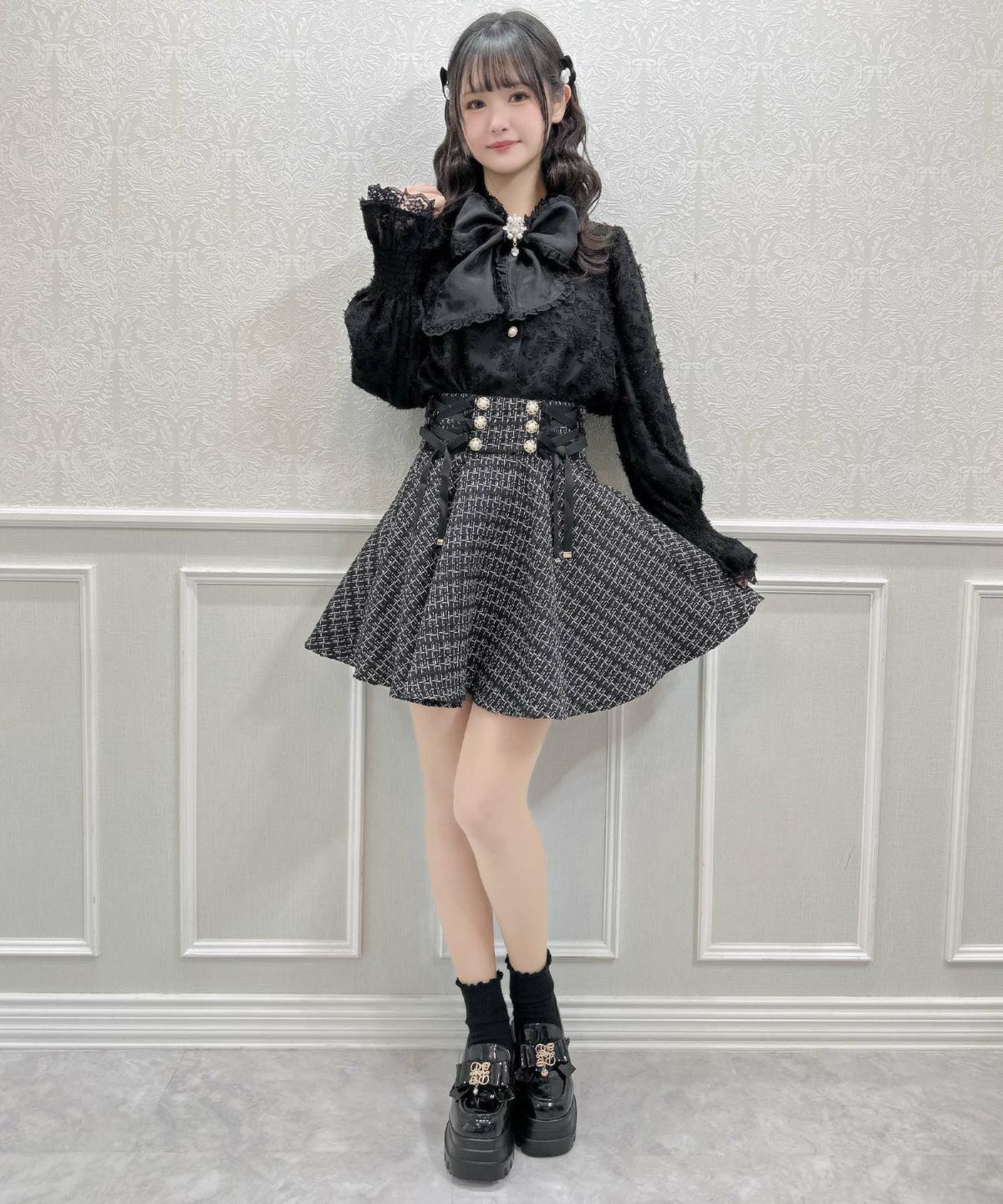 【50%off】 サイドリボン付きツイードマーメイドスカート