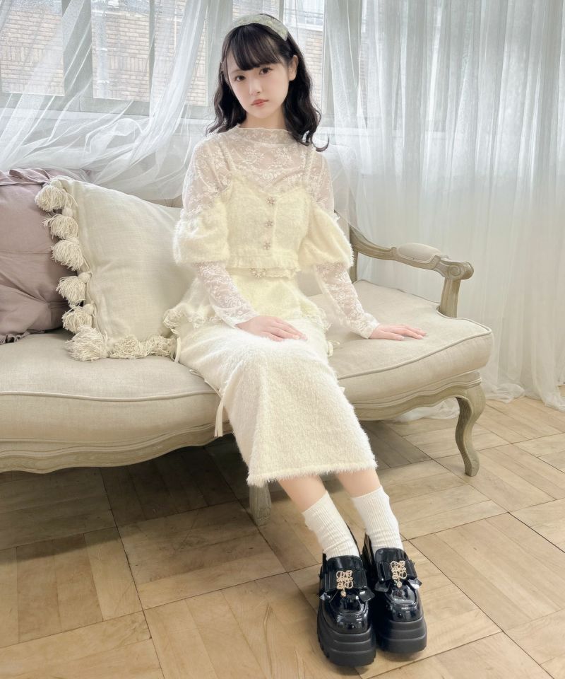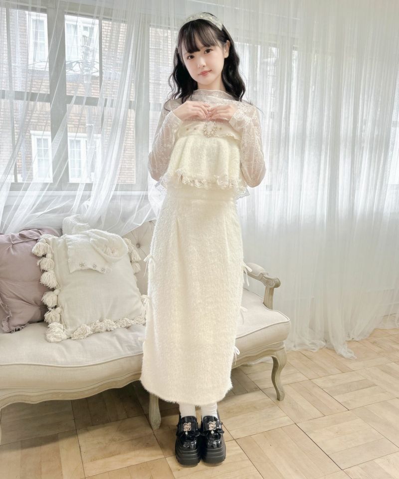 スカートのペプラムベルトはベアトップ風にもアレンジ可能♡ラメ入りのフェザーがシーズンらしさにラグジュアリーな要素をプラスしれくれます。横につけた同色のリボンで360°可愛いルックスに◎ペプラムがヒップラインを隠してくれるのでシルエットに自信がない方にも優しいアイテムです。 ※照明の関係で実際のお色味と若干異なる場合がございます。 ※表示のサイズ感と実物は若干異なる場合がございますので、予めご了承ください。 モデル身長:160cm