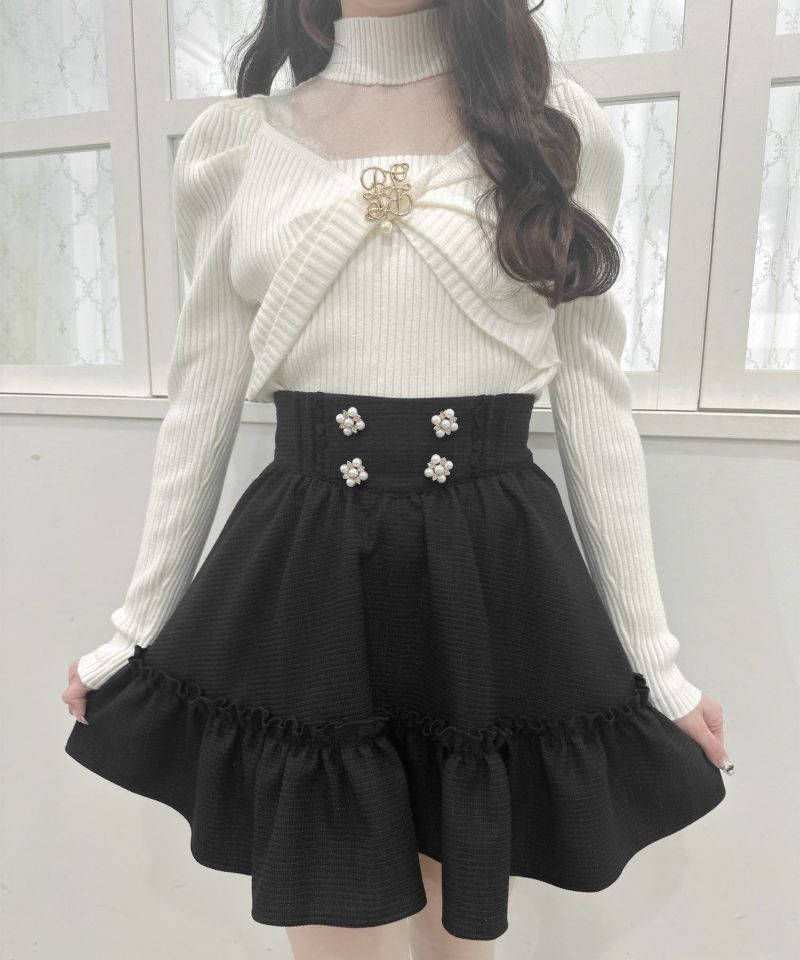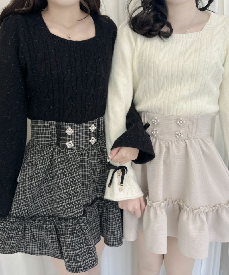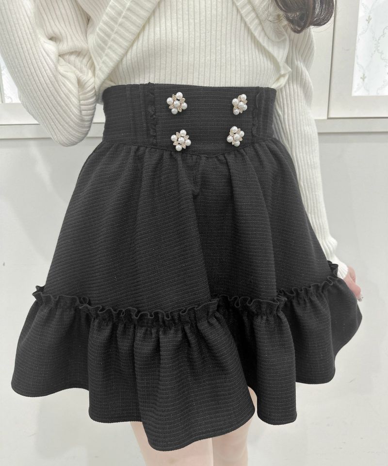 【30%off】 裾ボリュームフラワー釦スカート