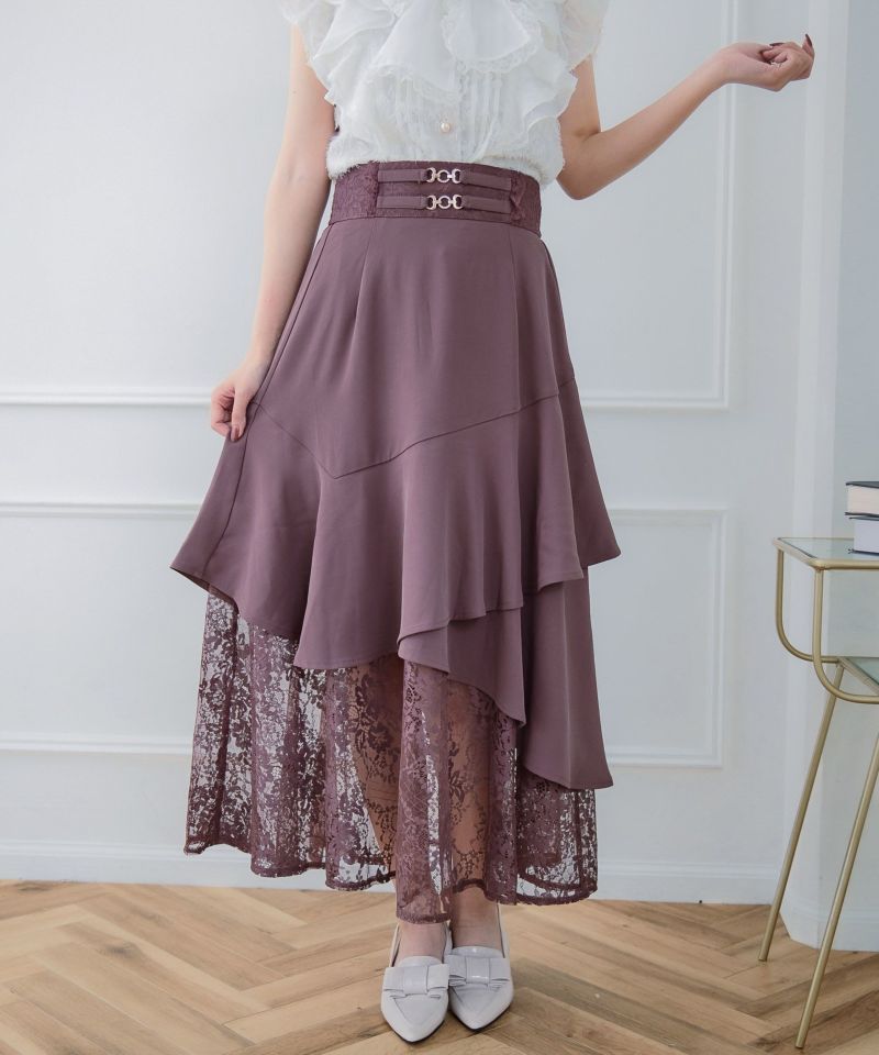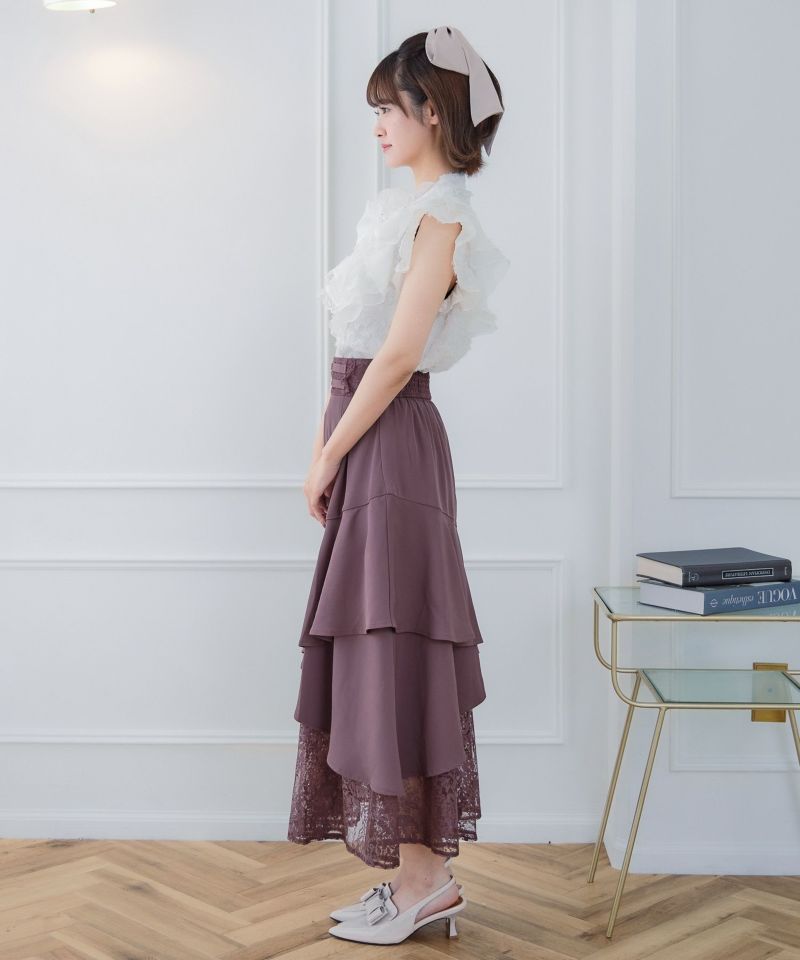モードなアシンメトリーデザインがトレンドライクなロングスカート。ティアードでボリュームのあるシルエットを作り上げ、綺麗なドレープの落ち感が品のある印象を与えます。ウエストマークでメリハリをON◎ ※照明の関係で実際のお色味と若干異なる場合がございます。 ※表示のサイズ感と実物は若干異なる場合がございますので、予めご了承ください。 モデル身長:160cm
