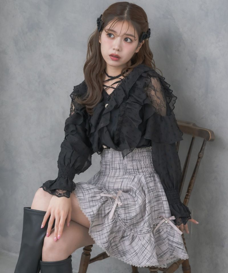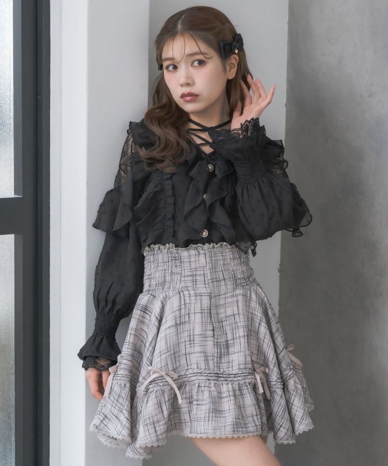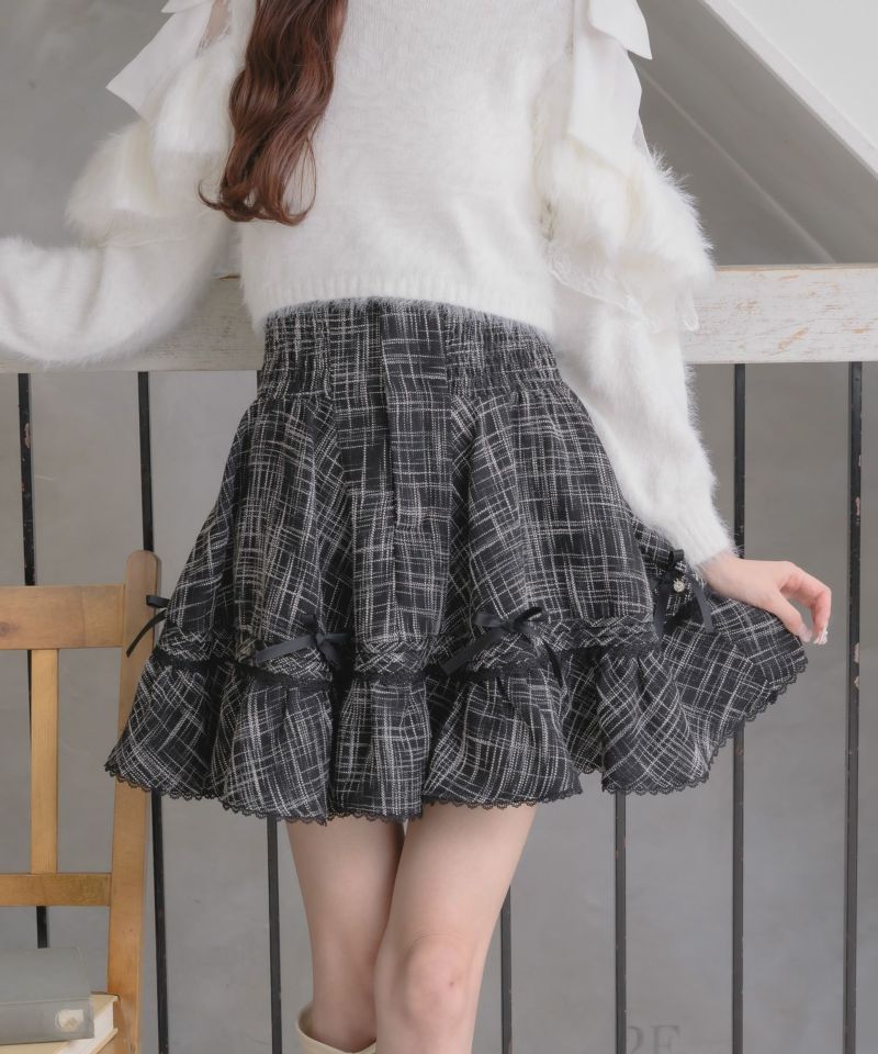 ウエストにたっぷりと施された太めのシャーリングが、しっかりフィットしてくれる安心感と細見え効果を両立。フロントのリボンは、ちょこんと甘く、視線を惹きつけるアクセントに◎裾にかけてふんわり広がるフレアラインが、動くたびに揺れて女の子らしさを最大限に引き立てます。 ※照明の関係で実際のお色味と若干異なる場合がございます。 ※表示のサイズ感と実物は若干異なる場合がございますので、予めご了承ください。 モデル身長ベージュ161cm/ブラック・チェック165cm