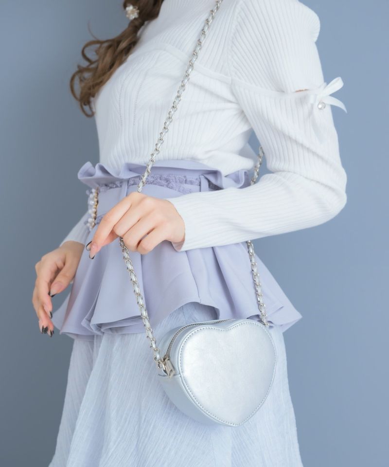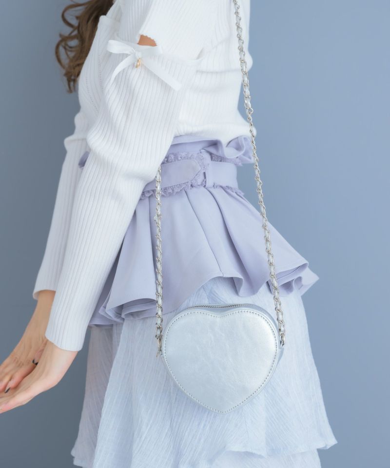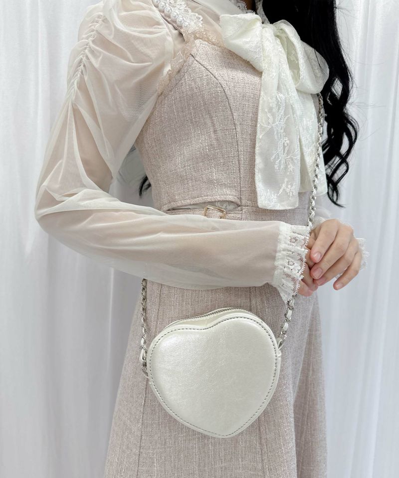 メタリックハートがとびきりキュートなショルダーバッグ♡アクセサリー感覚で使えるコンパクトサイズ、マチがあるので自立してくれます♪リップスティックやミラー等を入れたり、メインバッグにプラスワンで取り入れてもOK。