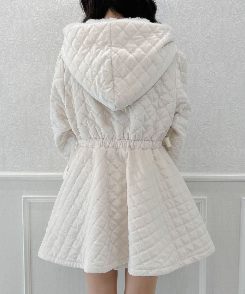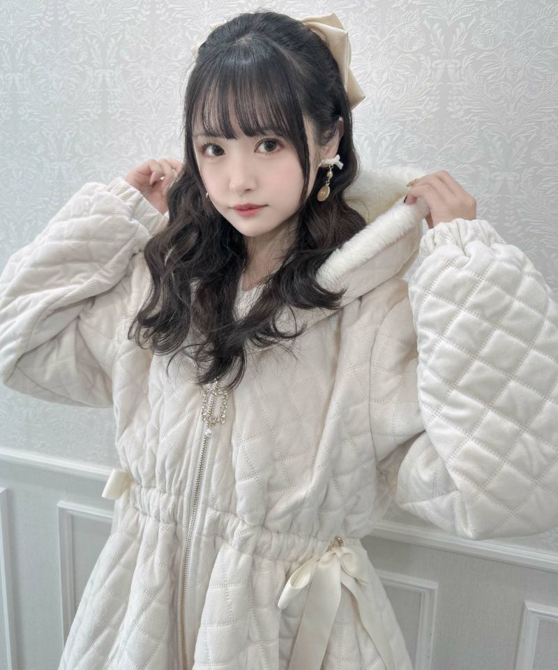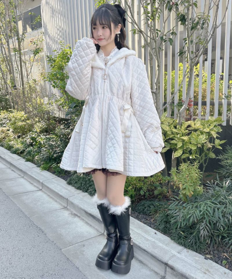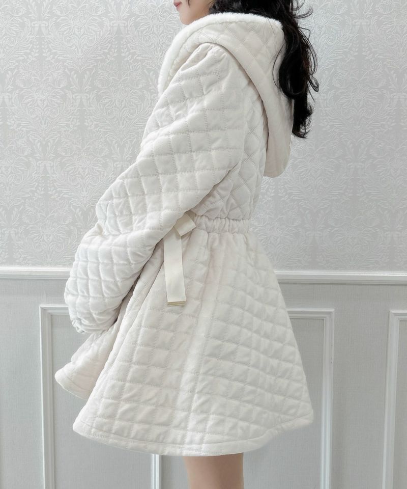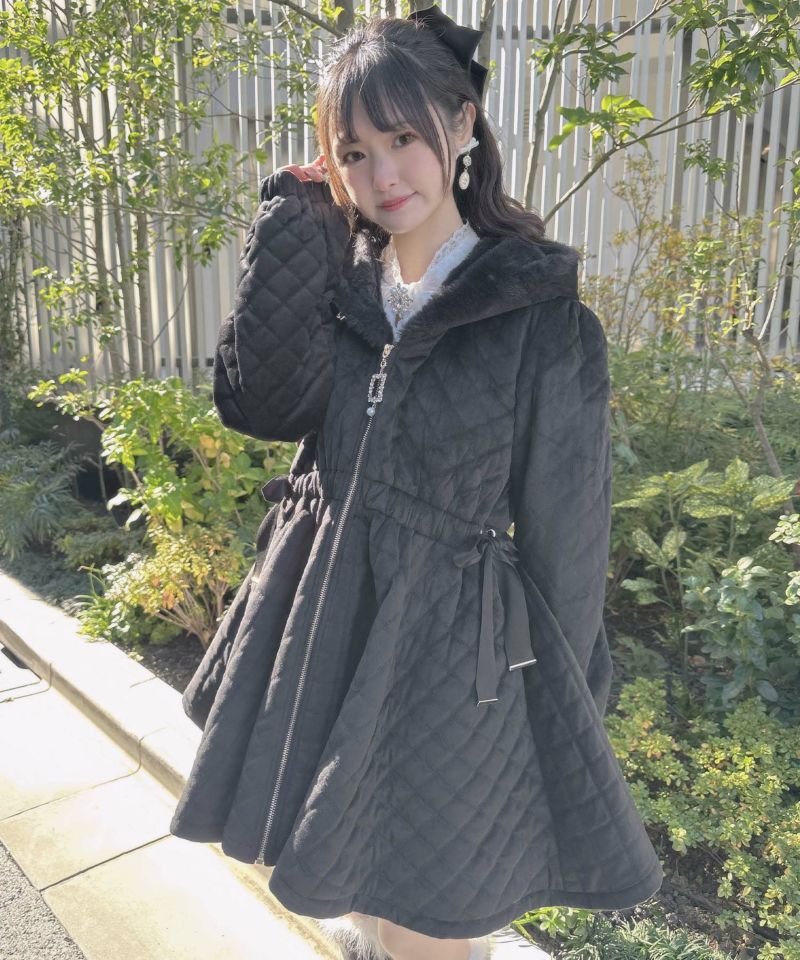 キルティング生地のフィットアンドフレアなシルエットが可愛い♡ウエストはバンディングデザインになっていて、サイドのリボンも可愛く映えてくれます。ボリュームのあるミニ丈のスカートやワンピースの上に着用いただくのがおすすめ♪