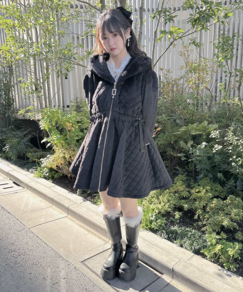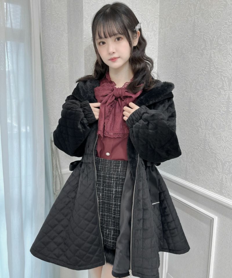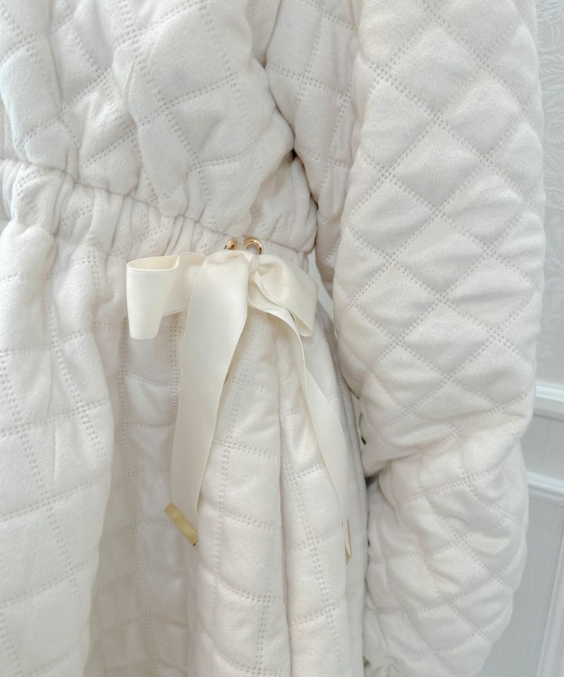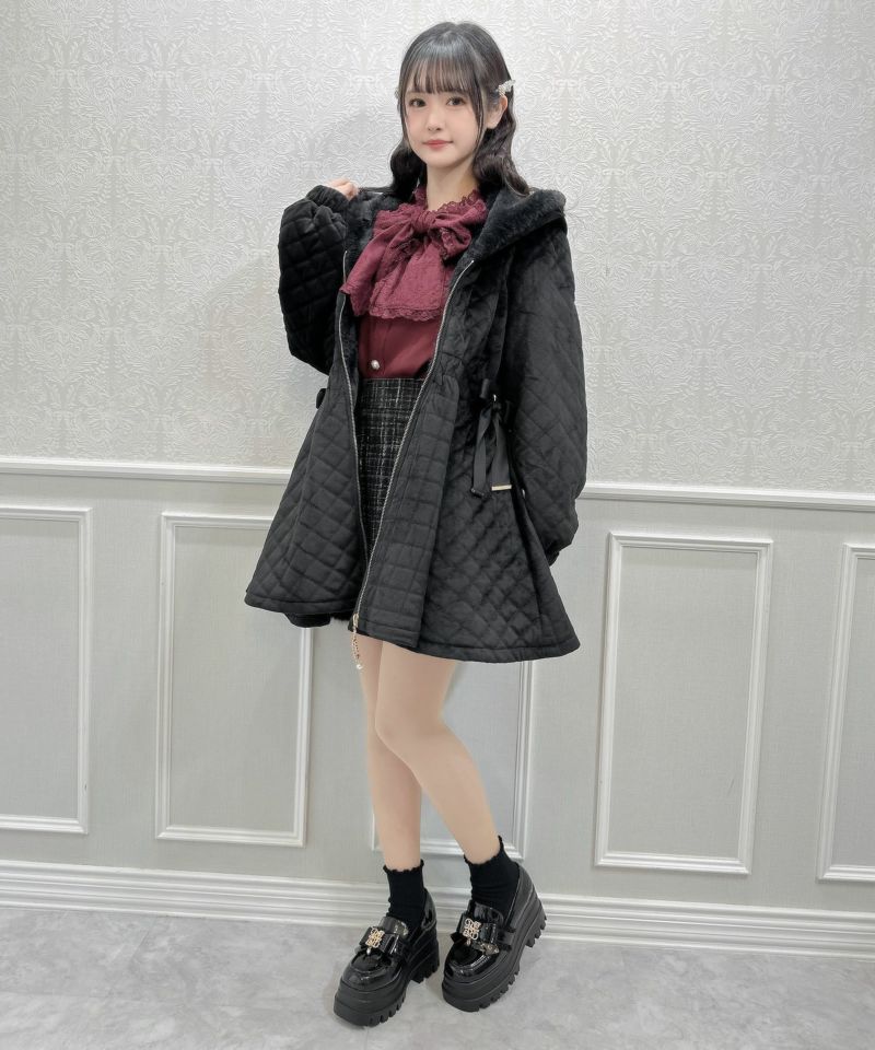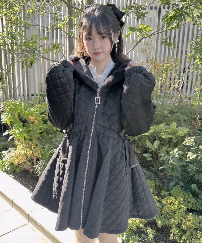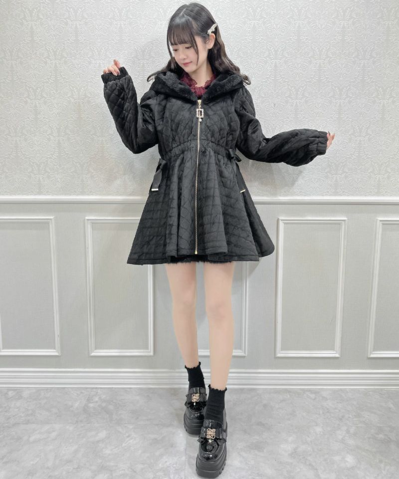 キルティング生地のフィットアンドフレアなシルエットが可愛い♡ウエストはバンディングデザインになっていて、サイドのリボンも可愛く映えてくれます。ボリュームのあるミニ丈のスカートやワンピースの上に着用いただくのがおすすめ♪