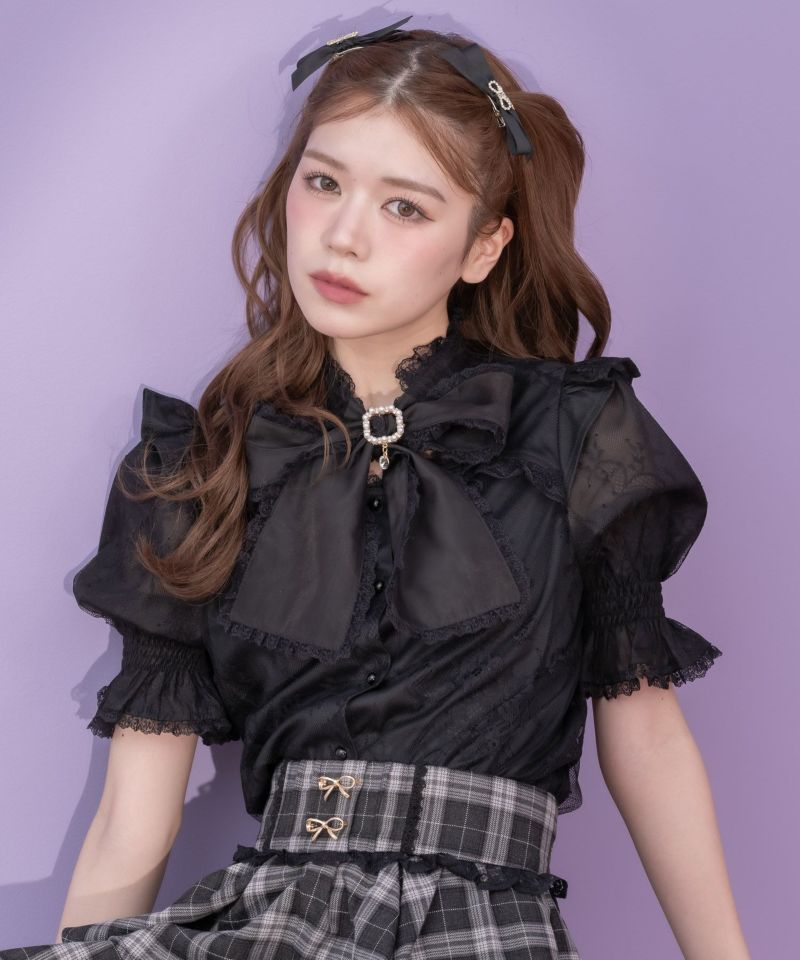 レース+シアー重ねの鮮度感抜群なボウタイブラウス。身頃は裏地付きで安心、配色レースが女性らしい華やかさを演出してくれます。シルエットに丸みを持たせるパフスリーブも上品可愛く、きちんと感も兼ね揃えた一押しアイテムです。 ※照明の関係で実際のお色味と若干異なる場合がございます。 ※表示のサイズ感と実物は若干異なる場合がございますので、予めご了承ください。 モデル身長パープル・ホワイト160cm/ブラック161cm