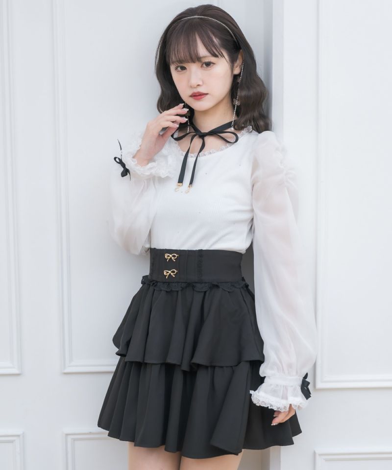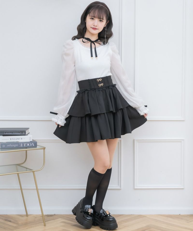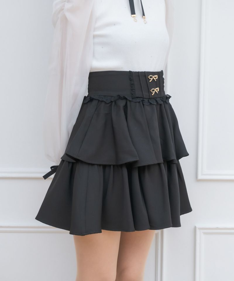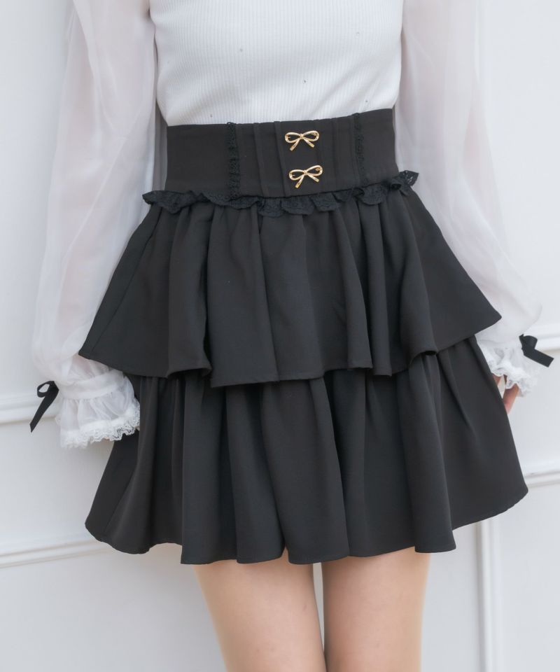 【20%off】 ゴールドリボン飾り付き2段フレアスカート