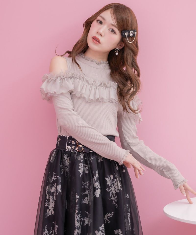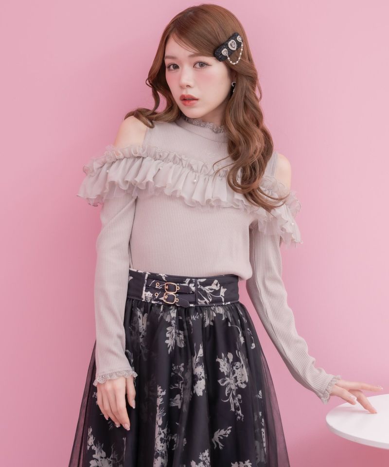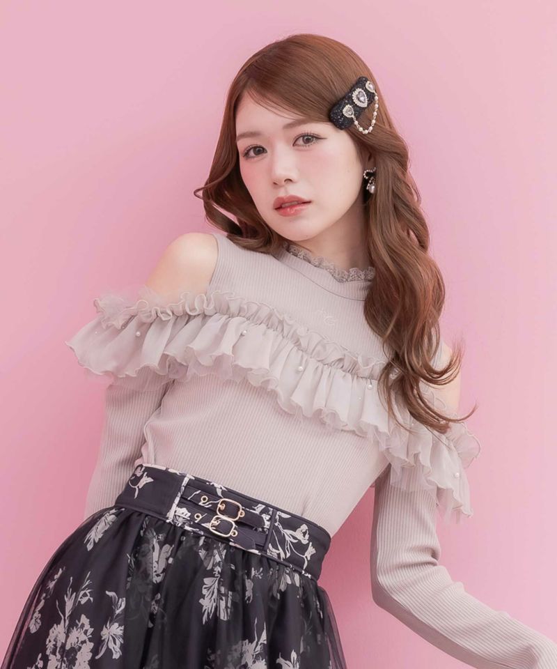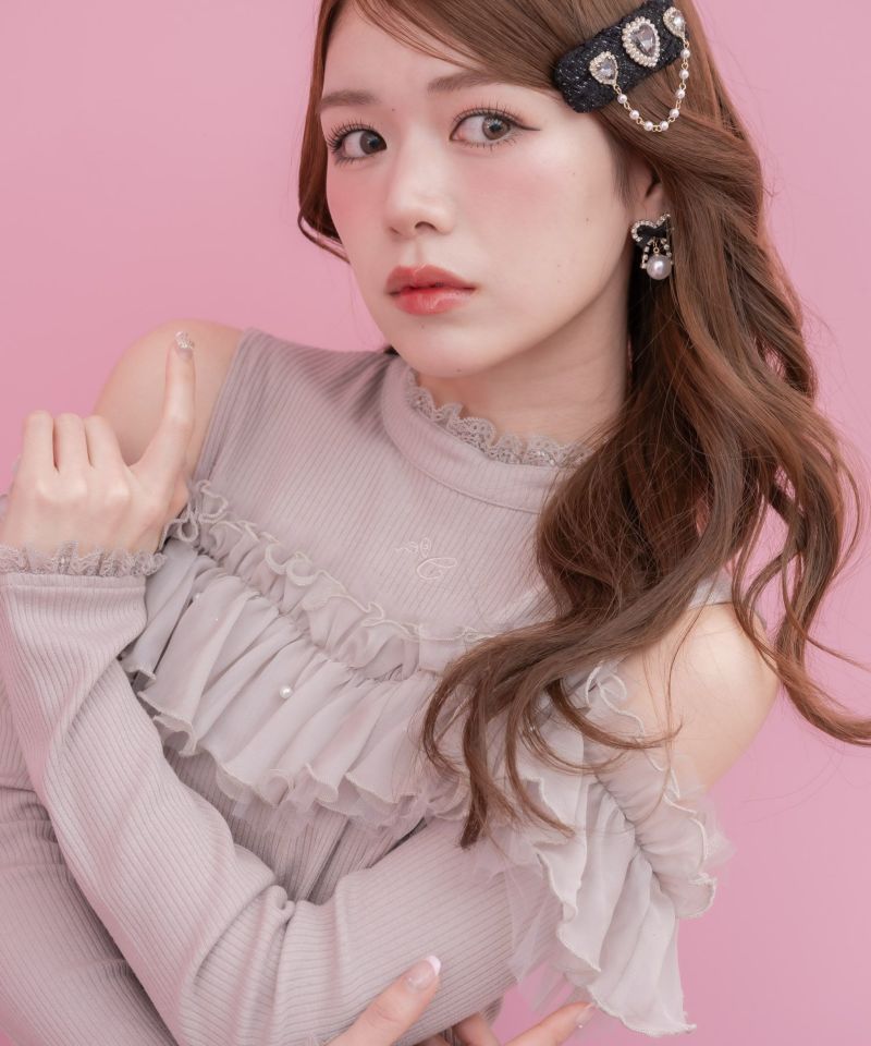 チュール+シアーのラッフルにパールをデコレーションした上品可愛いトップスがお目見えです。タイトな着心地ながらラッフルが体型カバーをしてくれるので挑戦しやすい♡肩開きデザインが大人っぽさを演出し、シーズンの先取りにもお似合いのアイテムです♪ ※照明の関係で実際のお色味と若干異なる場合がございます。 ※表示のサイズ感と実物は若干異なる場合がございますので、予めご了承ください。 モデル身長ブラック・ホワイト160cm/ピンクベージュ161cm