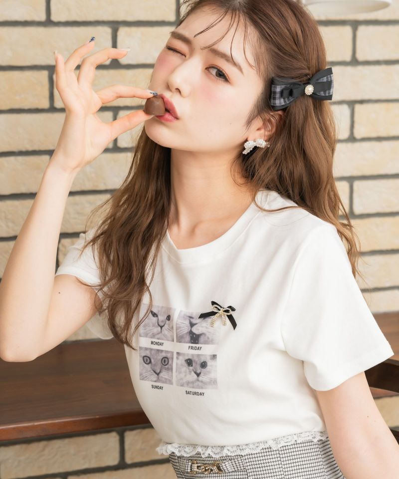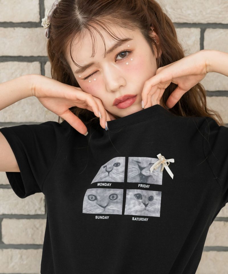 日替わりのCATプリントがチャーミングな愛嬌を振り撒くアイテム。ミニTなのでアウトスタイルでもバランス良く着用できる一枚。ラフな感じだけど可愛いさも忘れない、オススメのアイテムです。ネコちゃんを主役に、いろんなコーデに取り入れてみて下さい♪ ※照明の関係で実際のお色味と若干異なる場合がございます。 ※表示のサイズ感と実物は若干異なる場合がございますので、予めご了承ください。 モデル身長:161cm