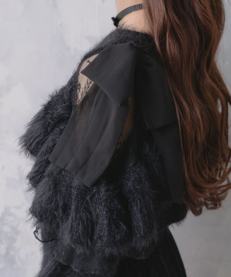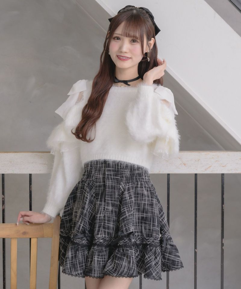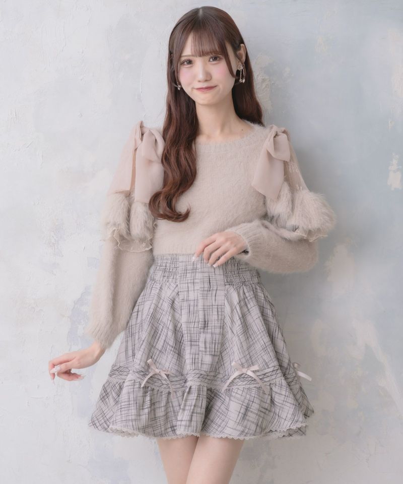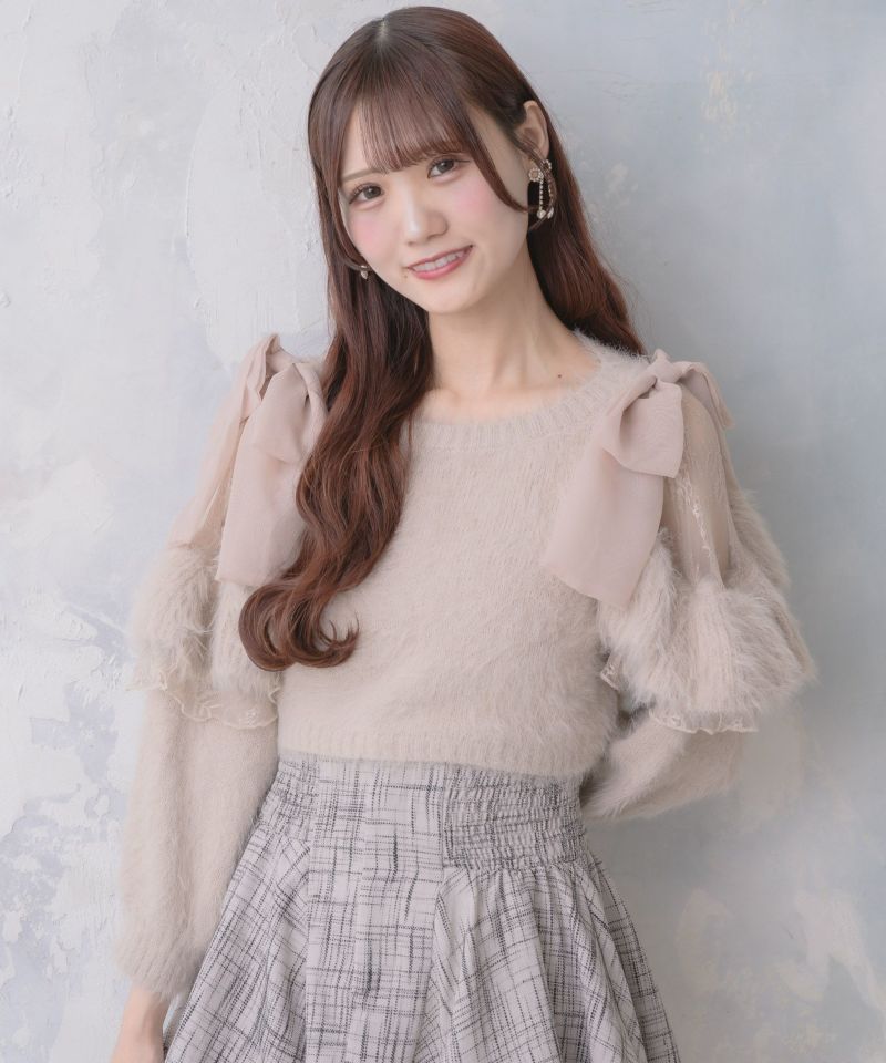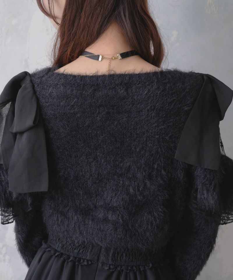 ふわっと柔らかなシャギー素材で、纏うだけで女の子らしさを引き立ててくれるフェミニンニット。肌感をほんのり覗かせる肩開きデザインが、大人っぽさをさりげなくプラス。さらに、ショルダーに添えたリボンディテールが視線を引きつけて、“愛されガーリー”な印象を叶えます♡ショート丈なので、トップスINしなくてもバランス良く決まり、ハイウエストボトムとも自然にマッチ。