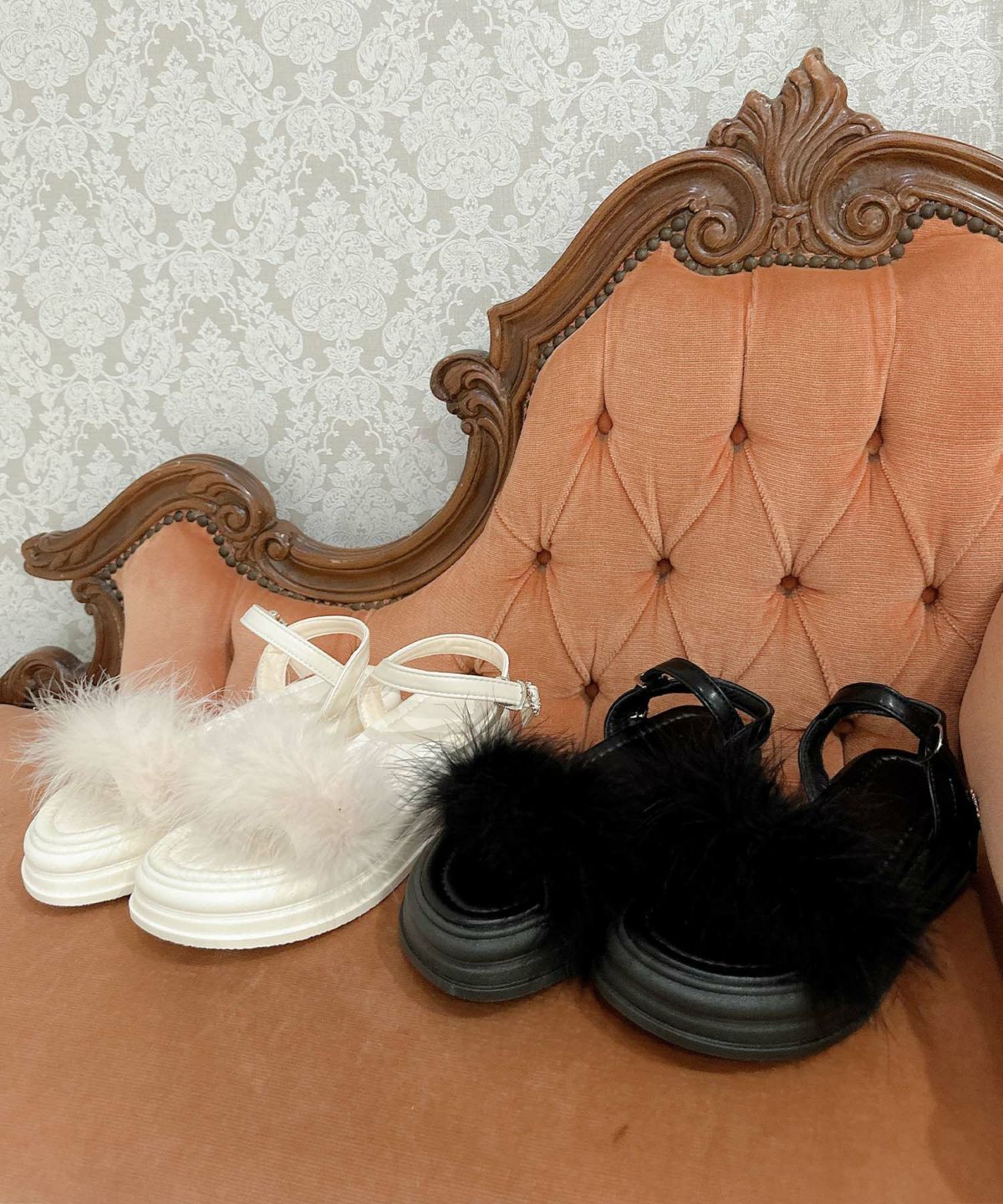 ハートバックルファーサンダル