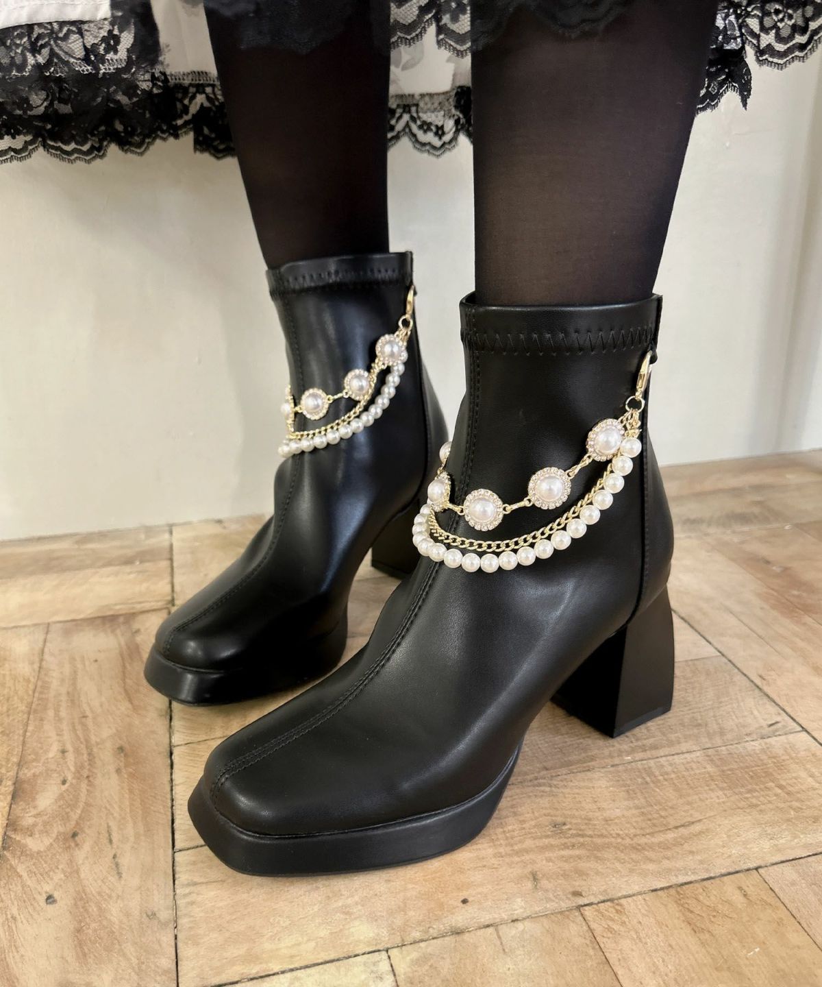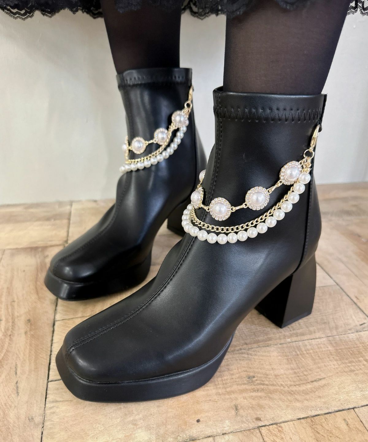 ビジューチェーン付きショートブーツ
