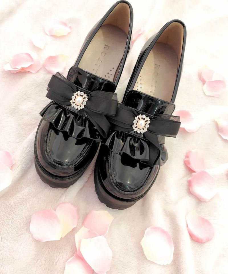 リボンのパールビジューが目を惹くローファー。リボンにはシアーを重ねてお淑やかな印象♡ストームも高さがあるので、見た目以上にヒールとの高低差が少なく歩きやすいです。高めヒールがお好きな方や低身長さんにオススメのアイテム。