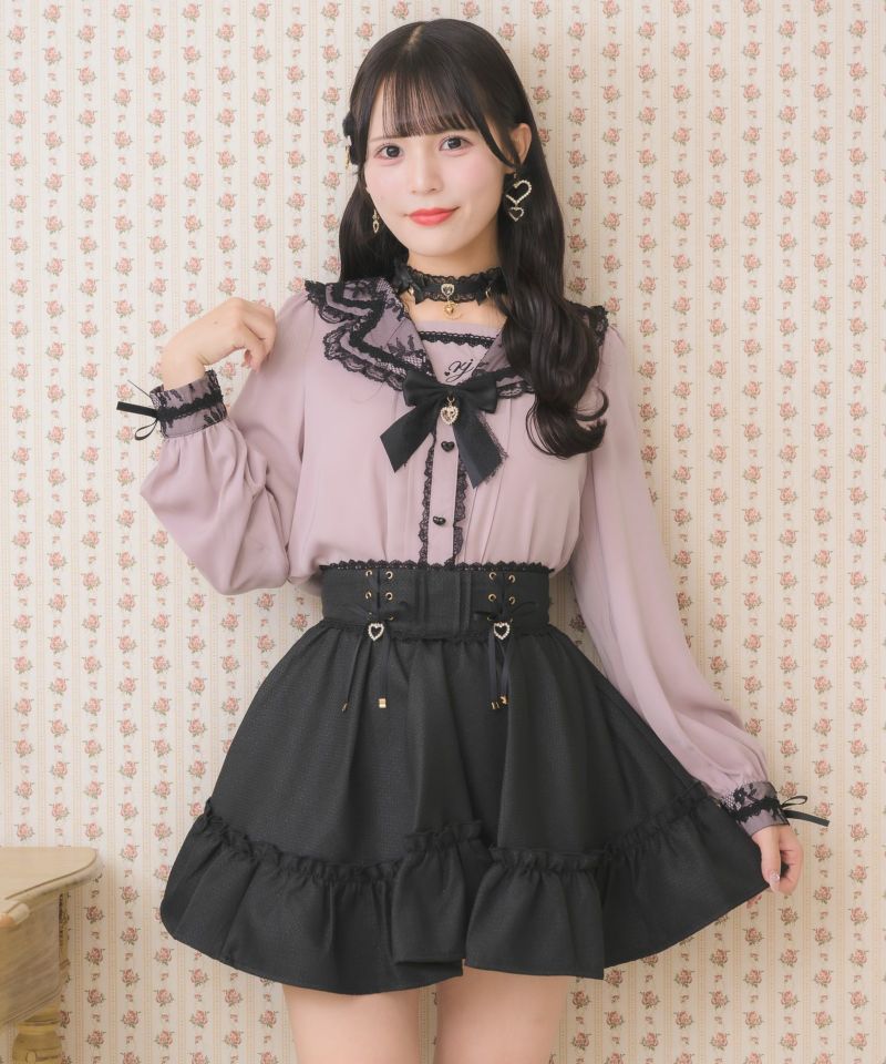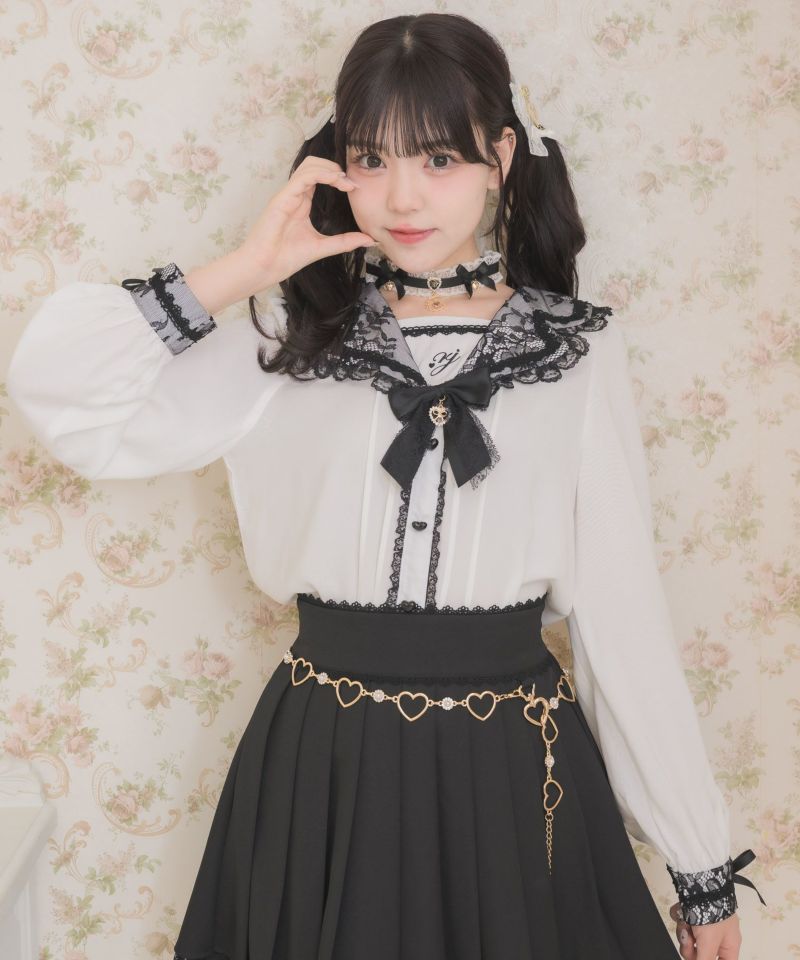 School likeなセーラーカラー♡レース配色でさらにお顔周り&手元を上品可愛くアップデート。胸あて部分にはポイント刺繍が施され、ガーリー度をグッと高めてくれます♪清楚な雰囲気をONするとともに、甘いディテールがたっぷりとつまって、どこから見てもキュートに映える逸品です。