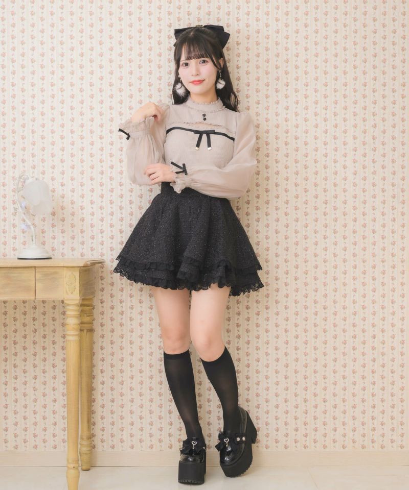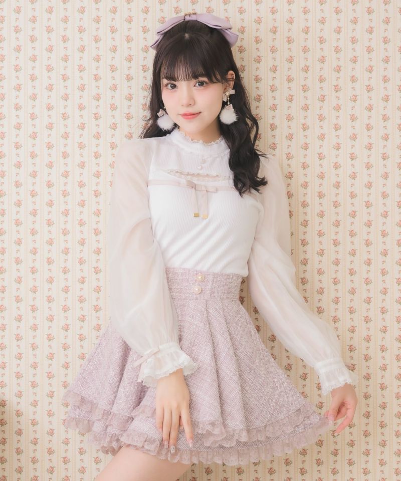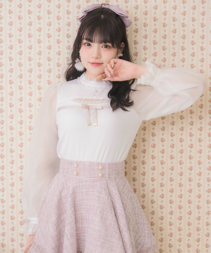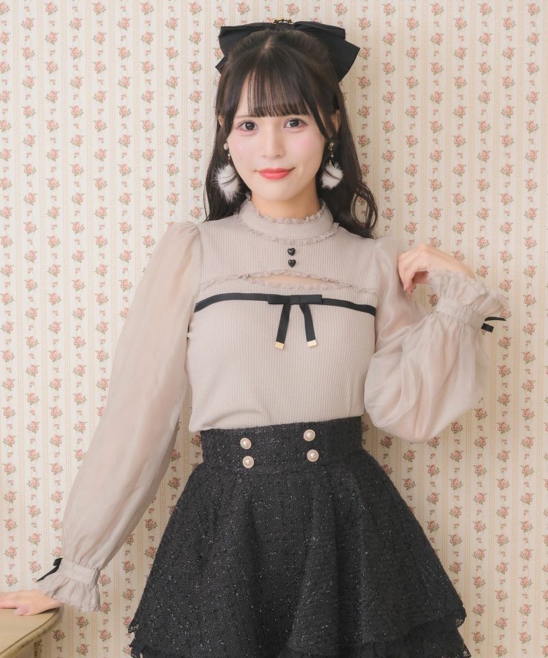 季節の変わり目&インナーとしても合わせやすい薄手のトップス♡控えめな肌見せとシアーの透け感がマッチしておしゃれ上級者に磨きをかけます。テープリボンがアクセントになり、バランスよくメリハリをプラス◎コロンとしたハート釦で甘いニュアンスを加速させます。 モデル身長ブラック・ホワイト163cm/ピンク162cm