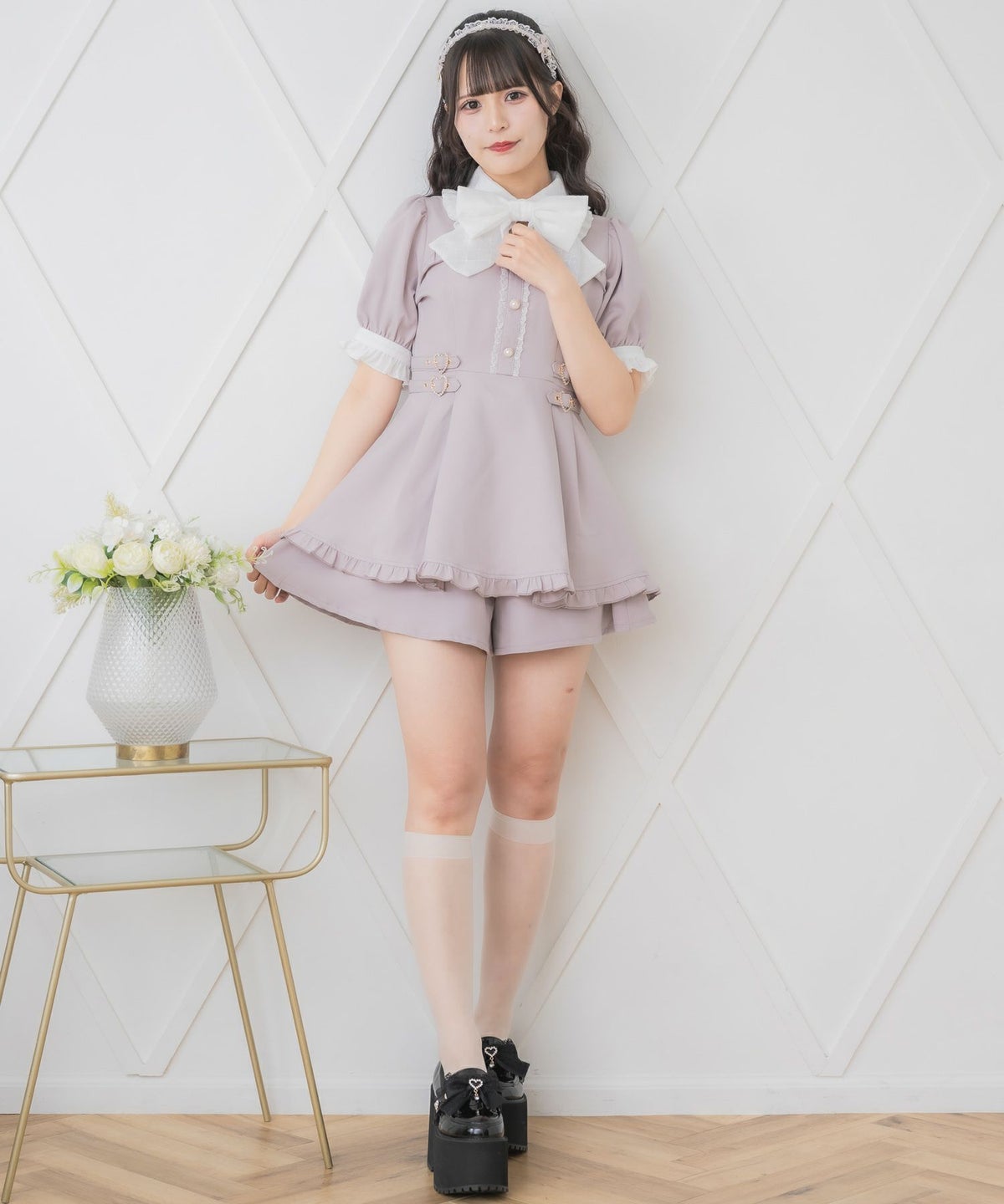 ハートビジューリボン厚底シューズ